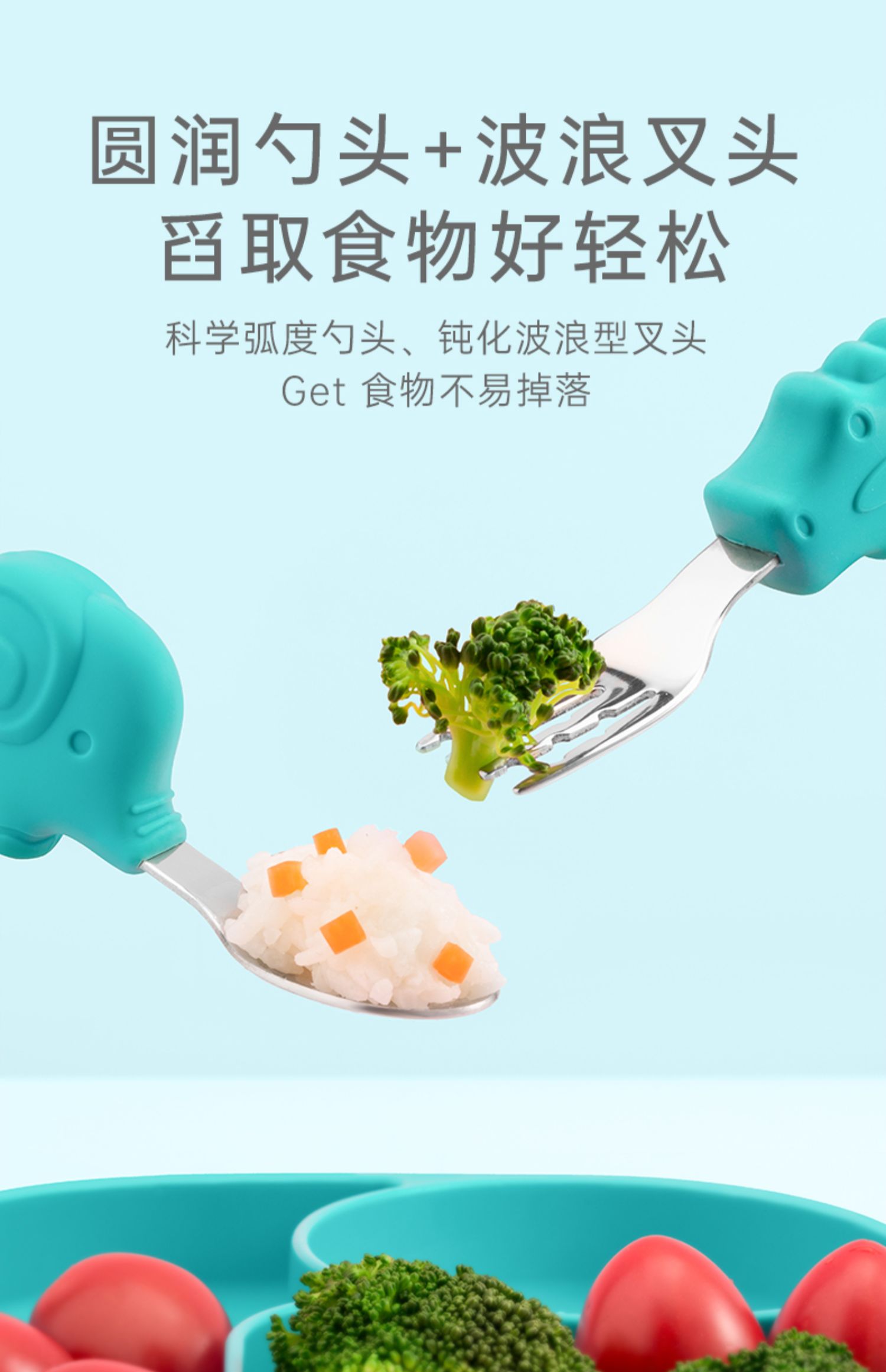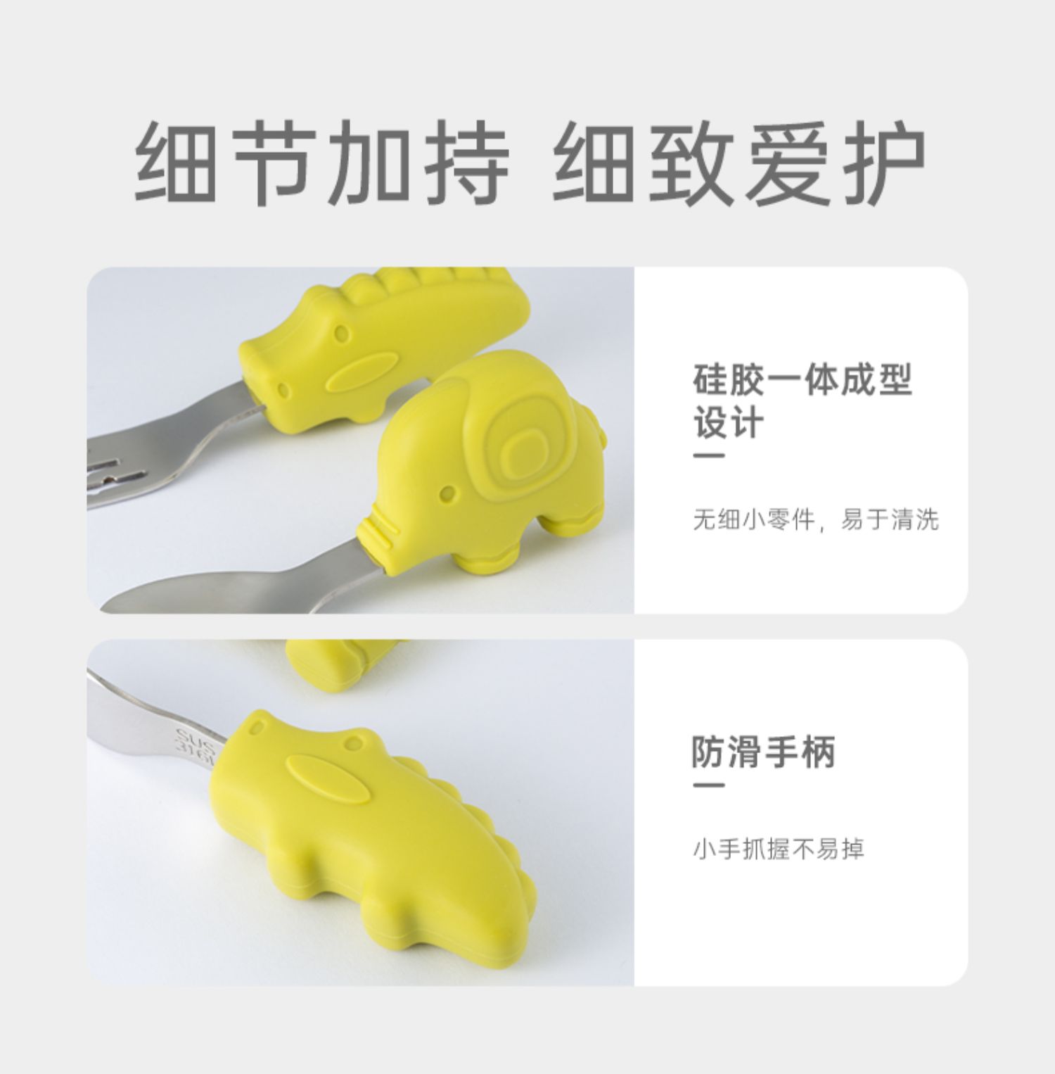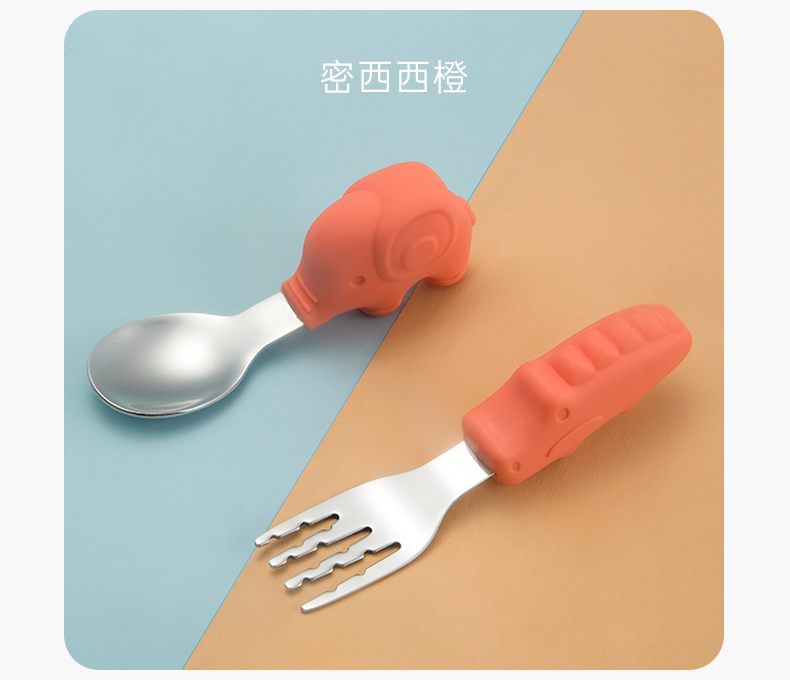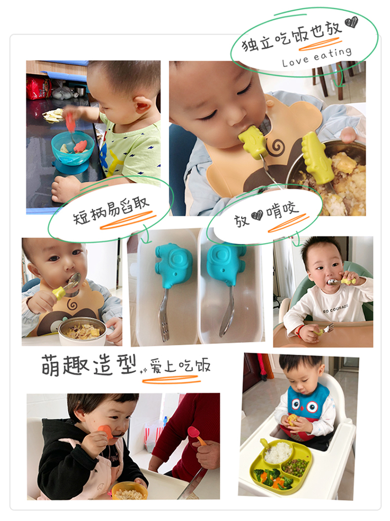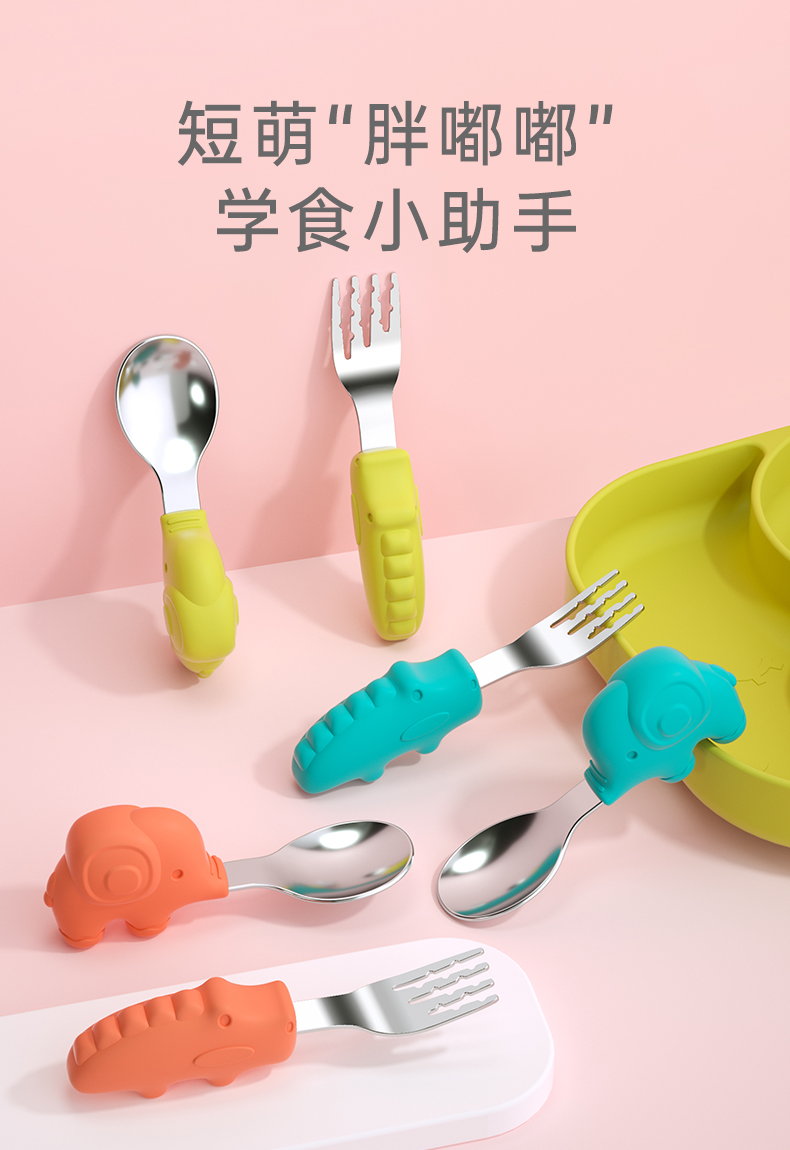 贝恩施宝宝餐具短柄勺子叉子婴儿辅食勺儿童训练学吃饭叉勺不锈钢