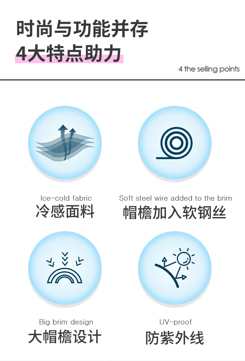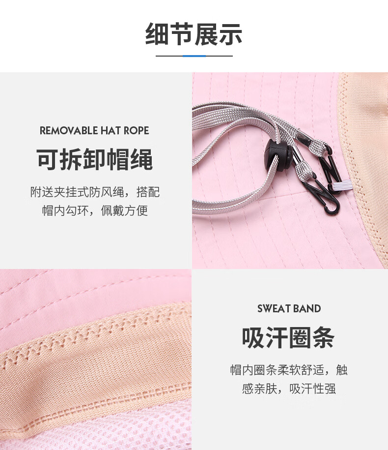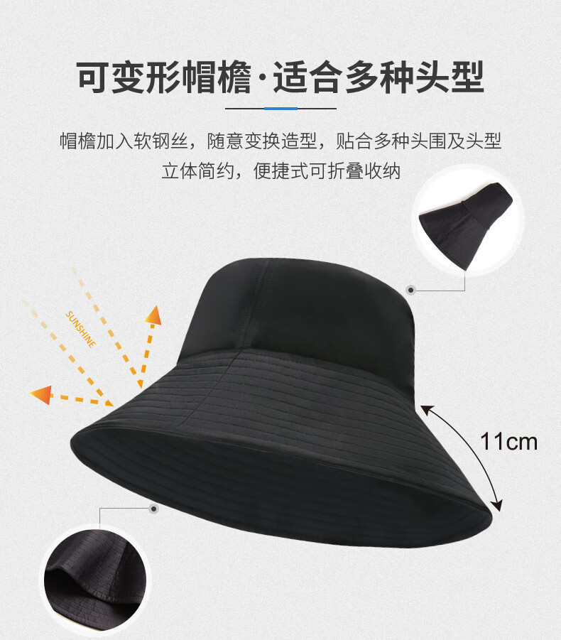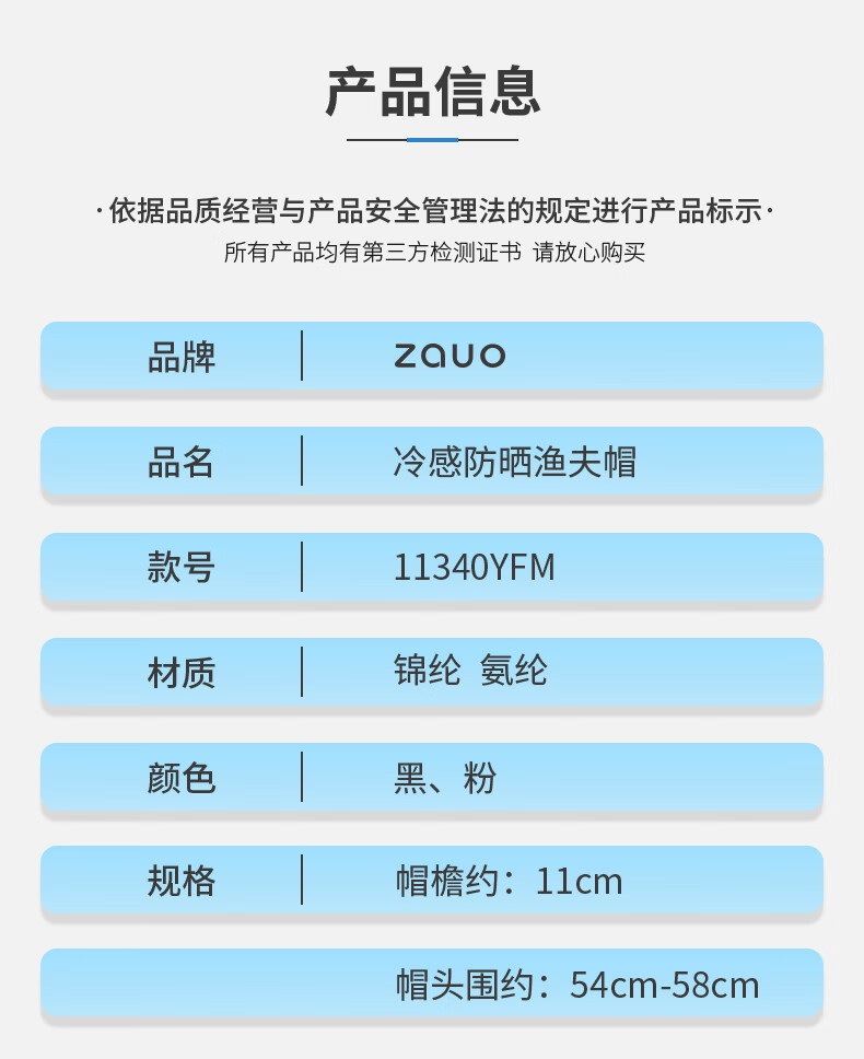 【分仓直发包邮】zauo冷感防晒渔夫帽(黑色/粉色)ZA.MZ.01.20.X2