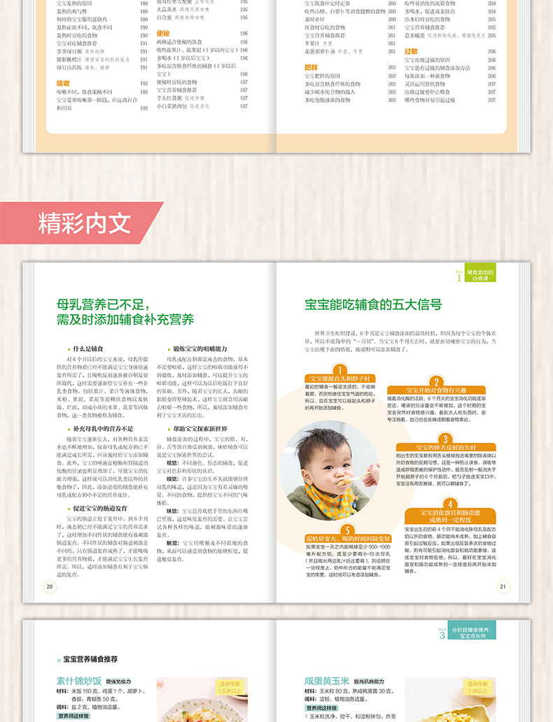 营养师妈妈分享了近200道好吃又营养的辅食,隔着纸张都能闻到饭香!从食材选择、色彩搭配、烹调方式等方面,给妈妈们提供借鉴,轻松搞定孩子的视觉、味觉和触觉。