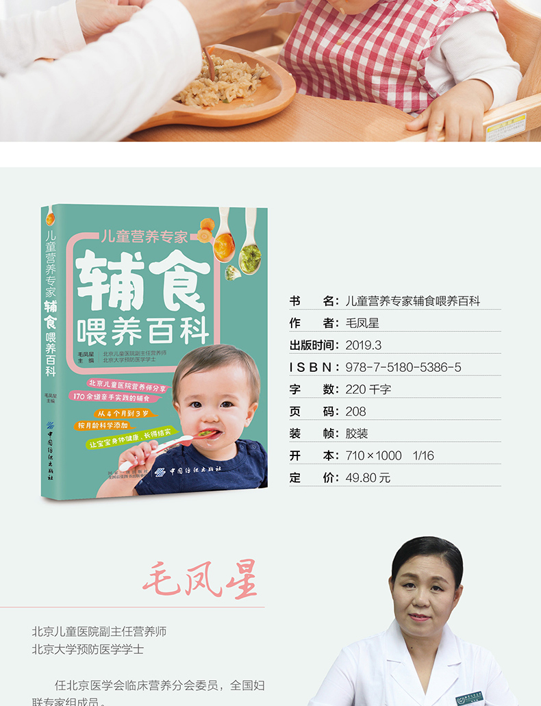 毛凤星:北京大学预防医学学士。任首都医科大学附属北京儿童医院副主任营养师。从事儿童临床营养研究二十余年,擅长婴幼儿喂养和儿童肥胖、儿童糖尿病、儿童肾衰及儿童期代谢病的营养治疗。