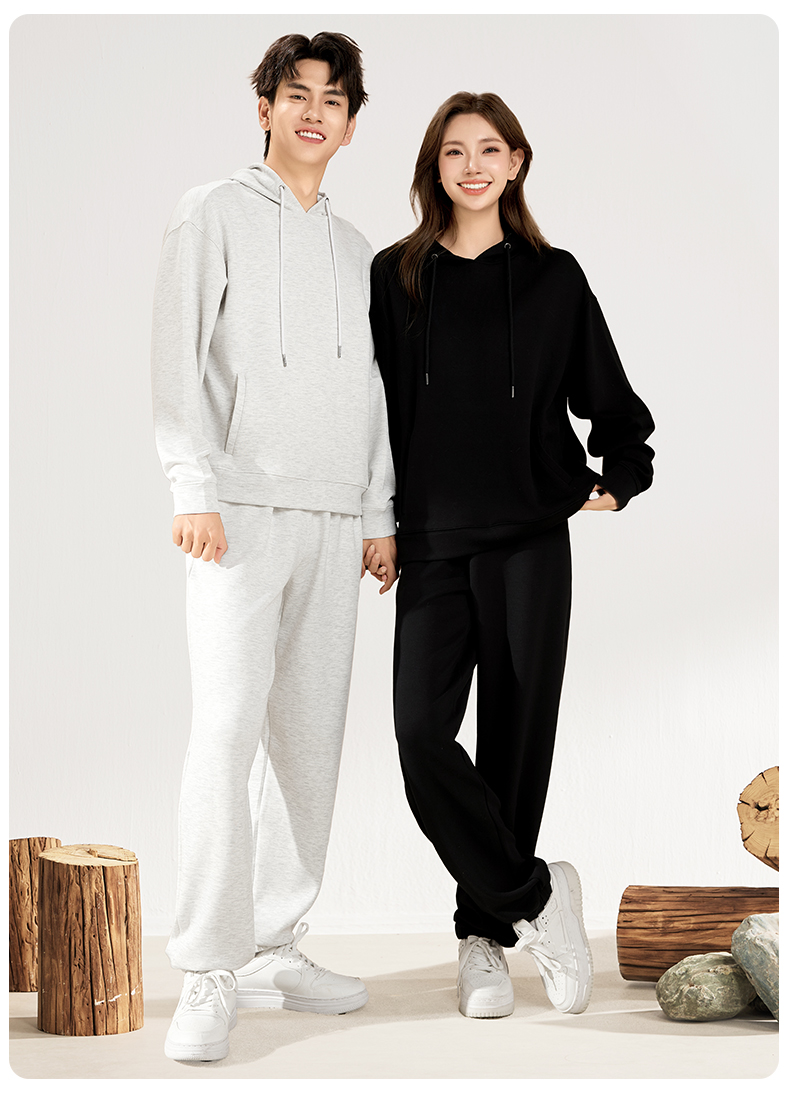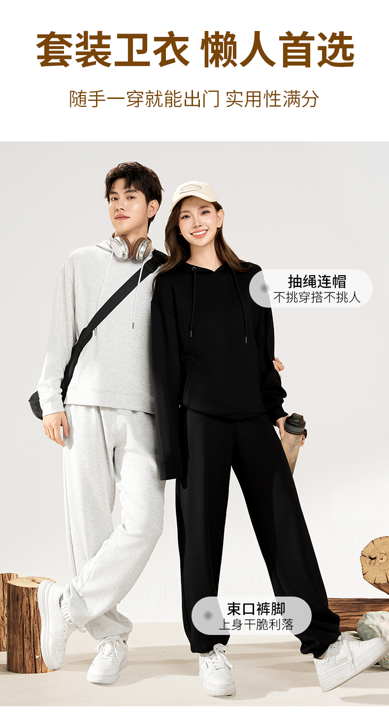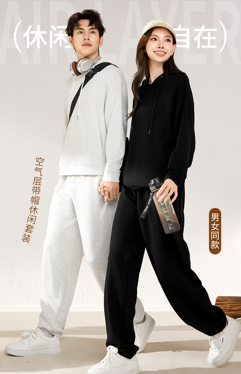 爱帝春款休闲卫衣套装男女同款空气层连帽运动服套装