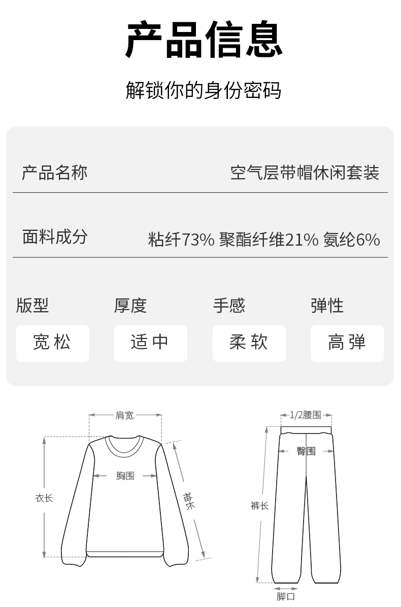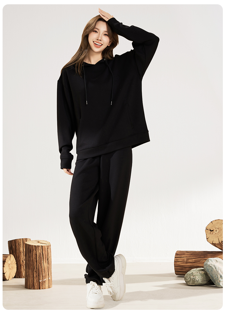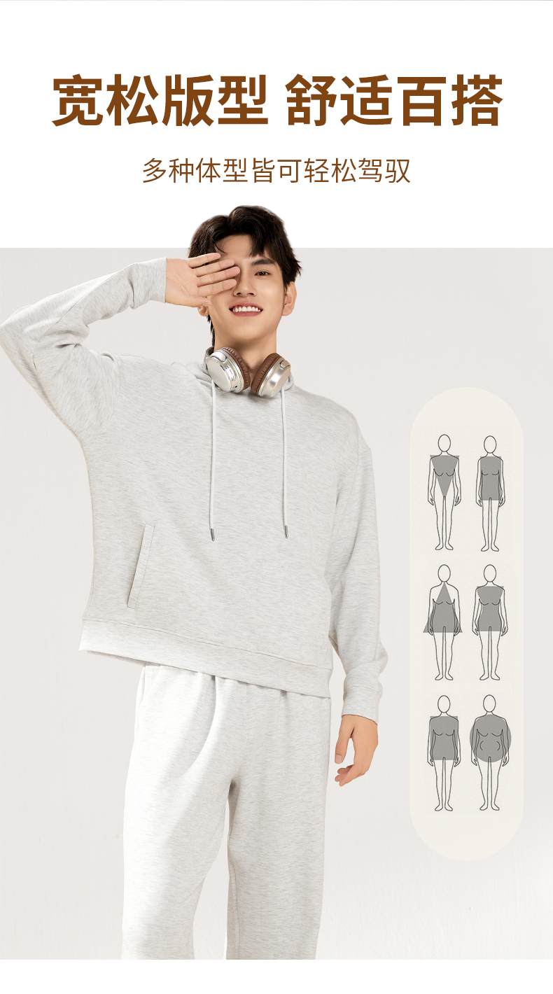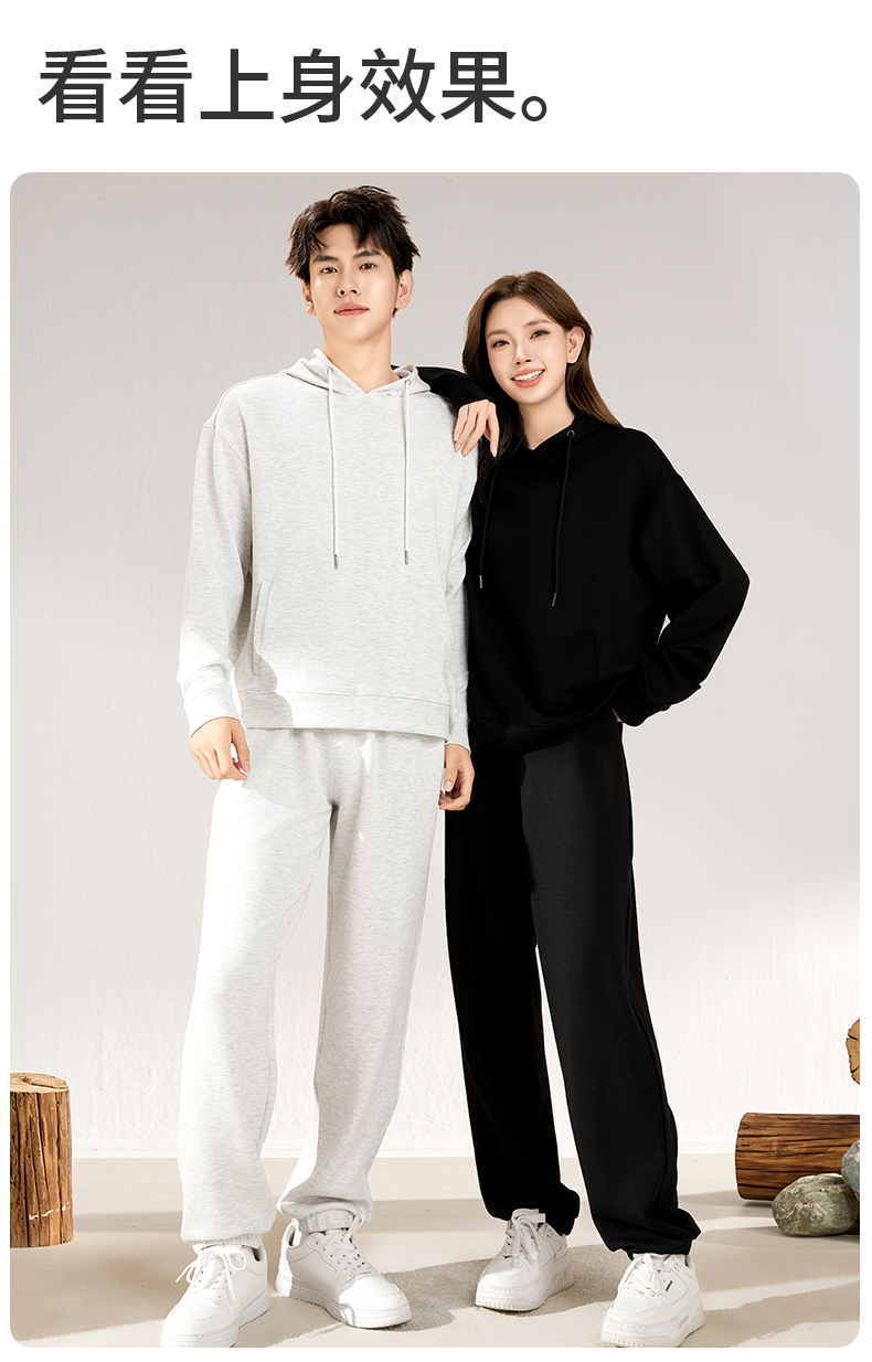 爱帝春款休闲卫衣套装男女同款空气层连帽运动服套装