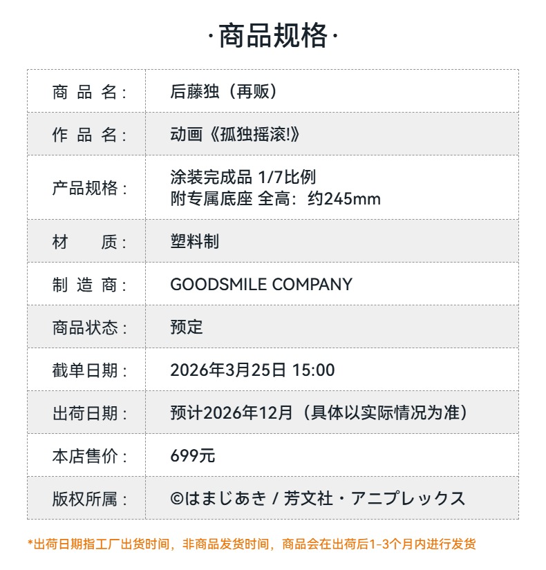 【GSC预售定金】1/7标准比例 后藤独 动画《孤独摇滚!》 手办模玩