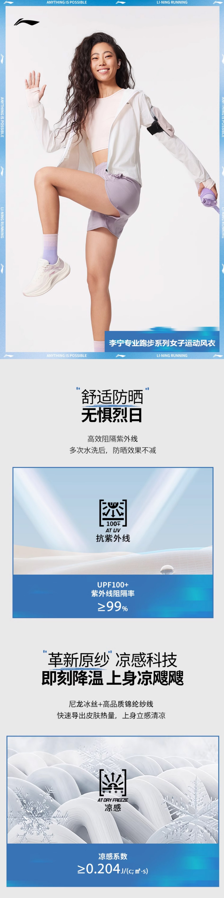 李宁镜面女士夏季防晒服新款原纱冰丝透气运动服AFDV252
