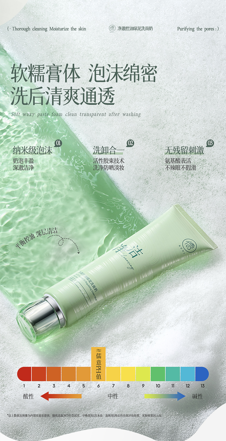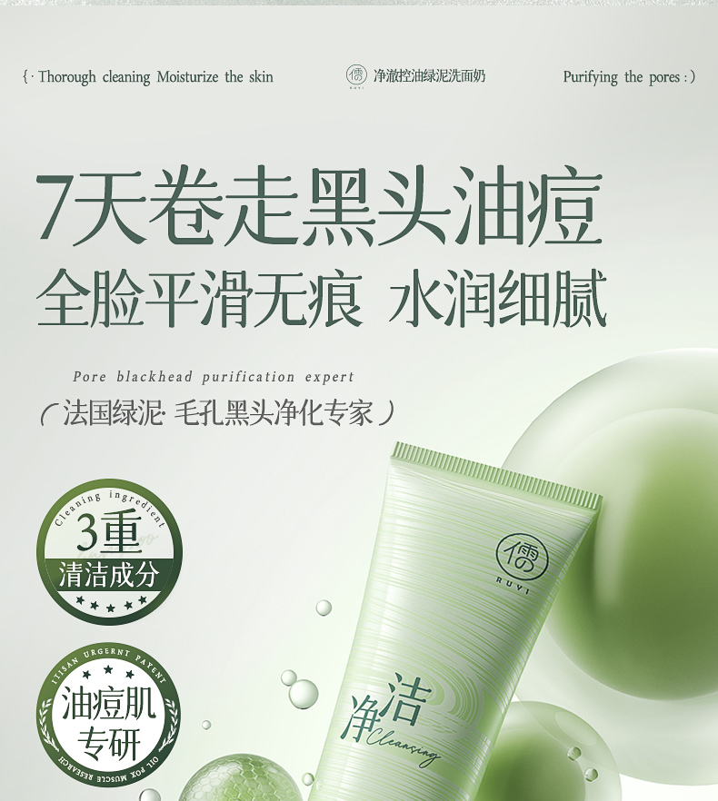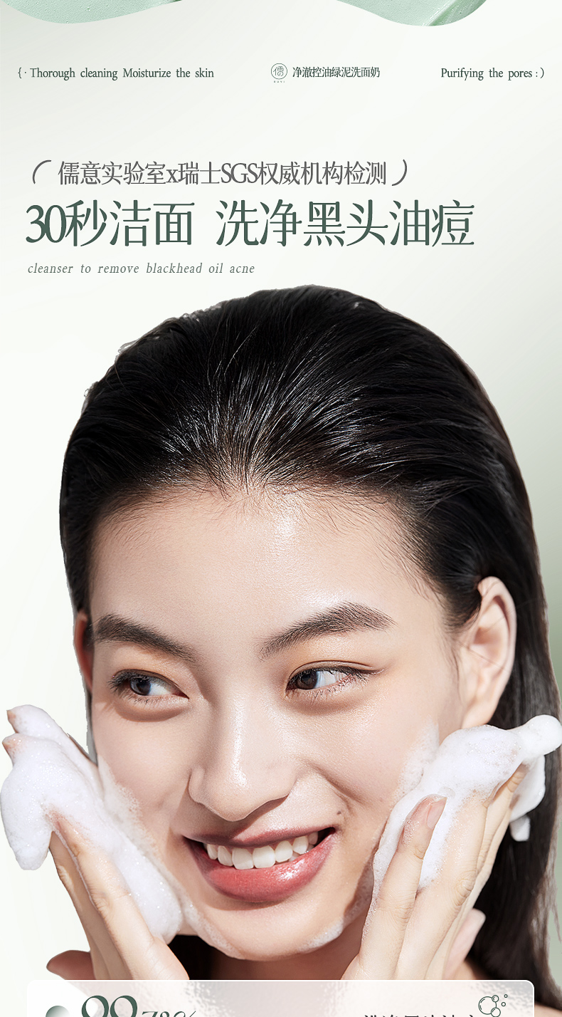 儒意净澈控油绿泥洗面奶150g 氨基酸洗面奶绿泥水杨酸洁面乳控油祛痘去黑头脸深层清洁收缩毛孔|儒意官方商城