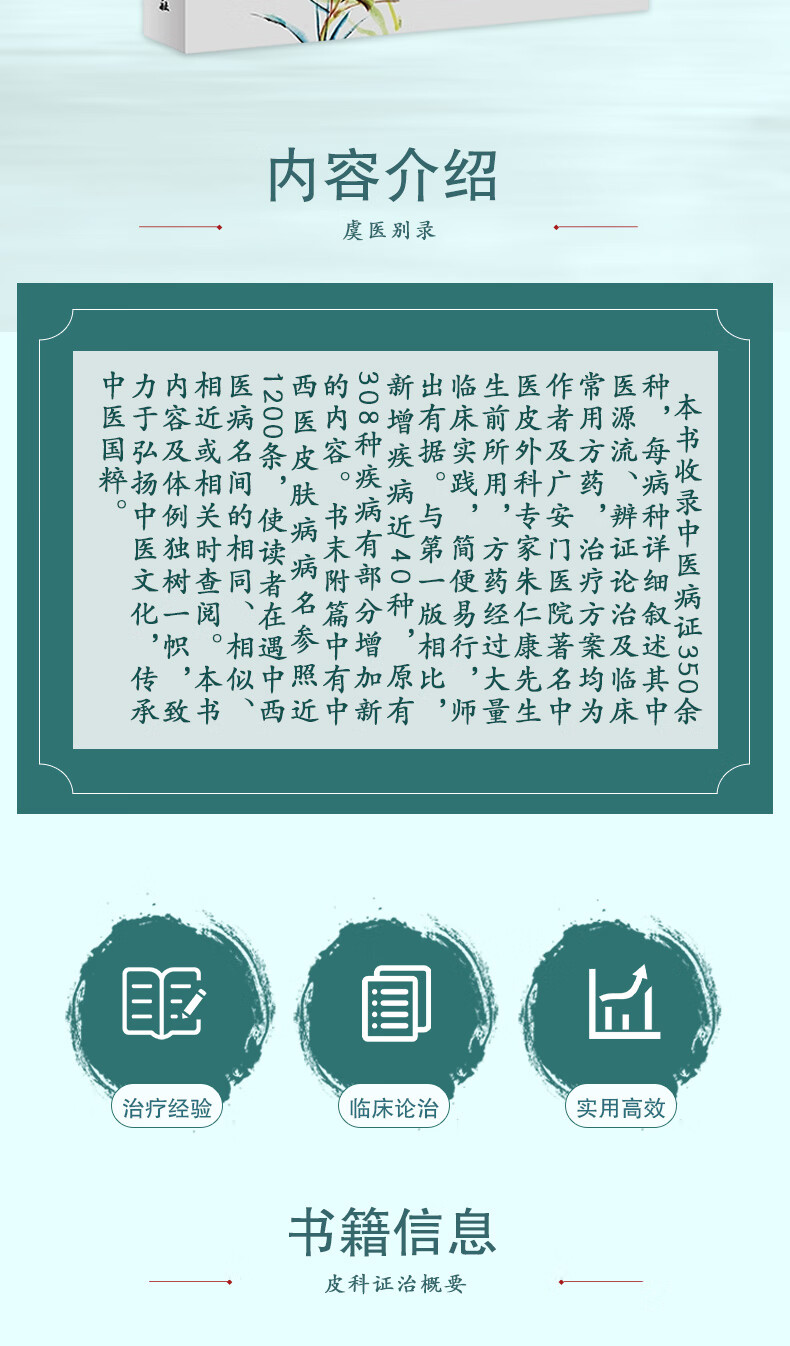 本书收录中医病证350余种,每病种详细叙述其中医源流、辨证论治及临床常用方药,治疗方案均为作者及广安门医院著名中医皮外科专家朱仁康先生生前所用,方药经过大量临床实践,简便易行,师出有据。与第一版相比,新增疾病近40种,原有308种疾病有部分增加新的内容。书末附篇中有中西医皮肤病病名参照近1200条,使读者在遇中西医病名间的相同、相似、相近或相关时查阅。本书内容及体例独树一帜,致力于弘扬中医文化,传承中医国粹。