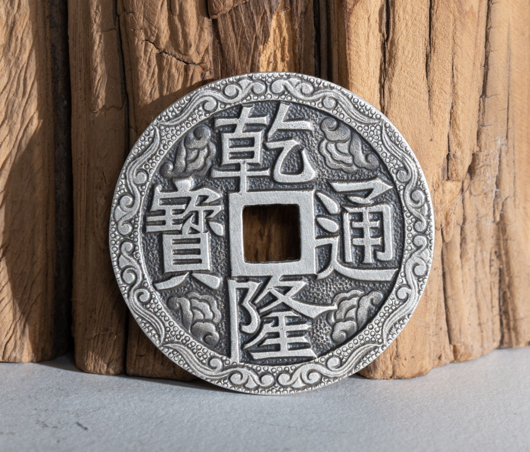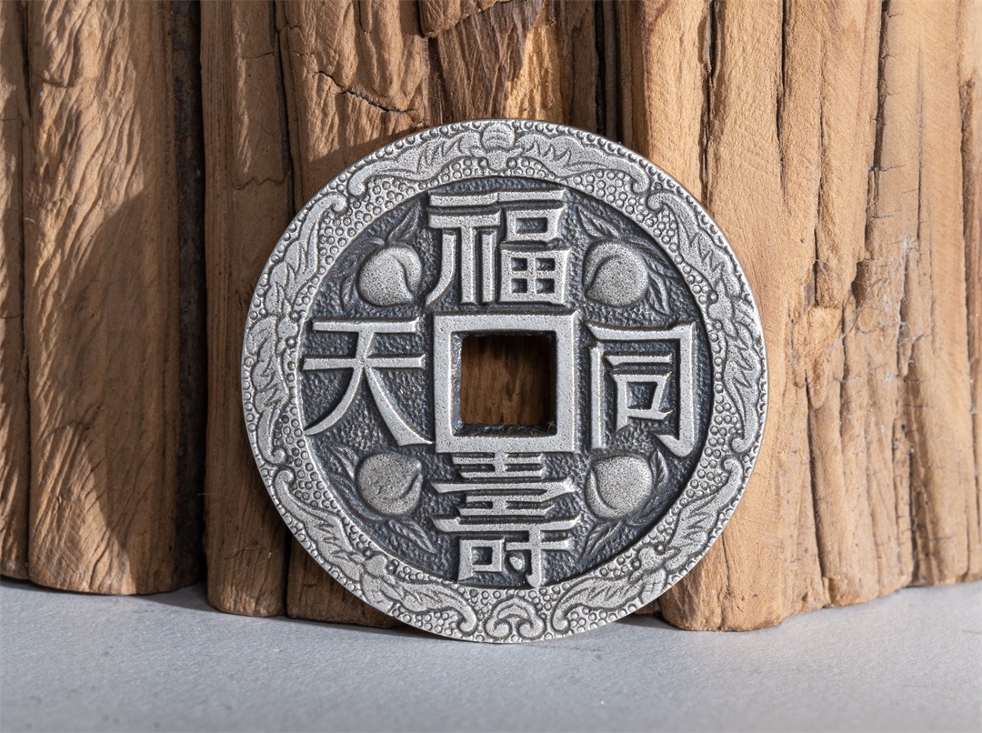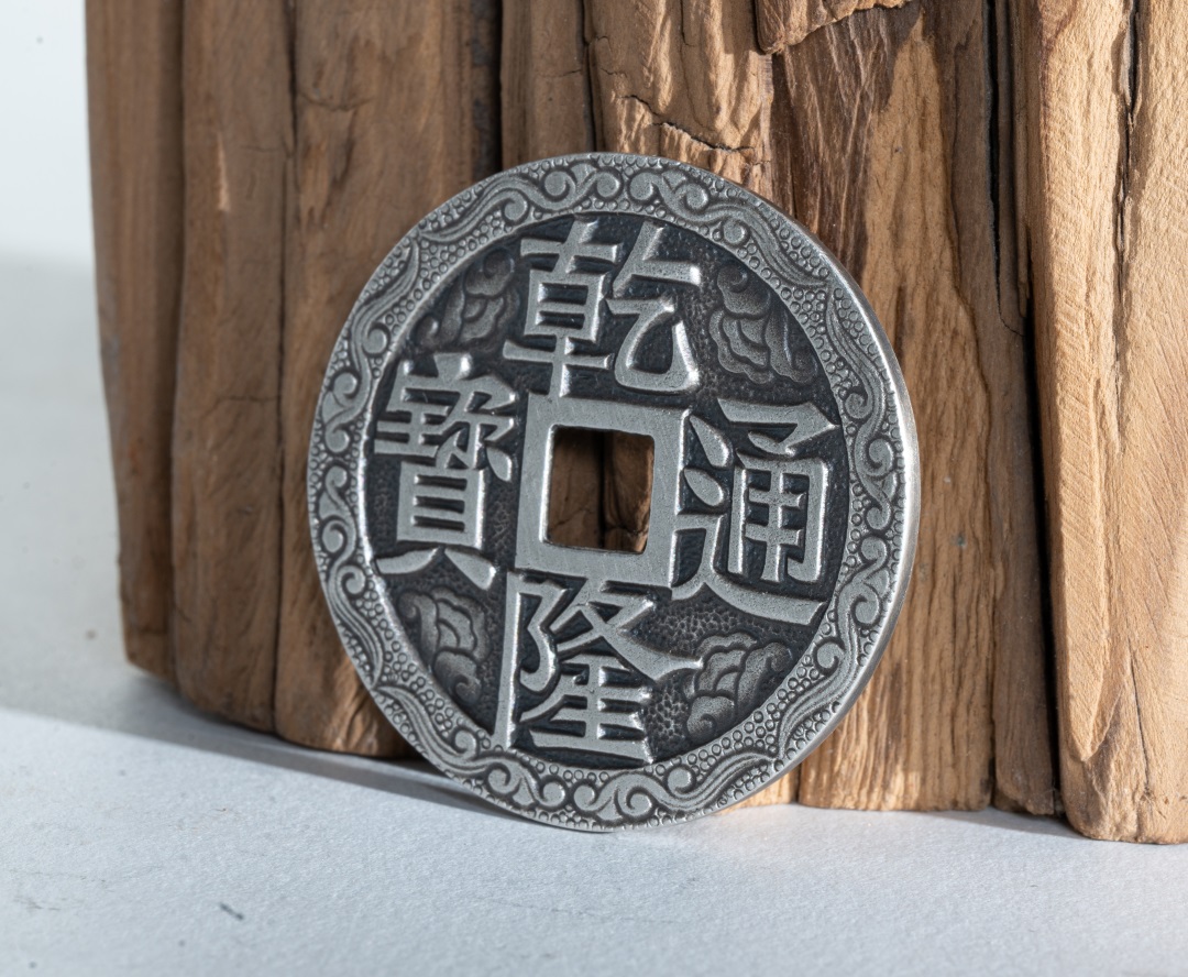 矩德泉坊 纯银手作 乾隆通宝福寿同天刻花(3.6厘米版)gq220600550