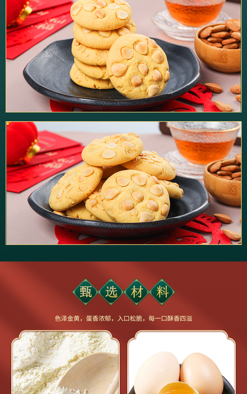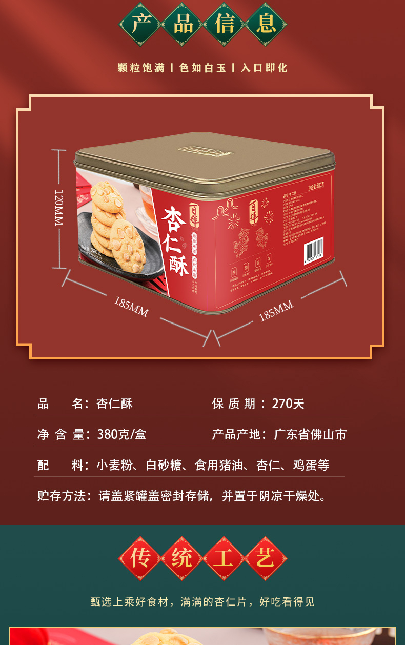 杏仁酥380g 甄选上乘好食材 满满的杏仁粒 色泽金黄 蛋香浓郁 入口松脆