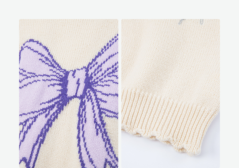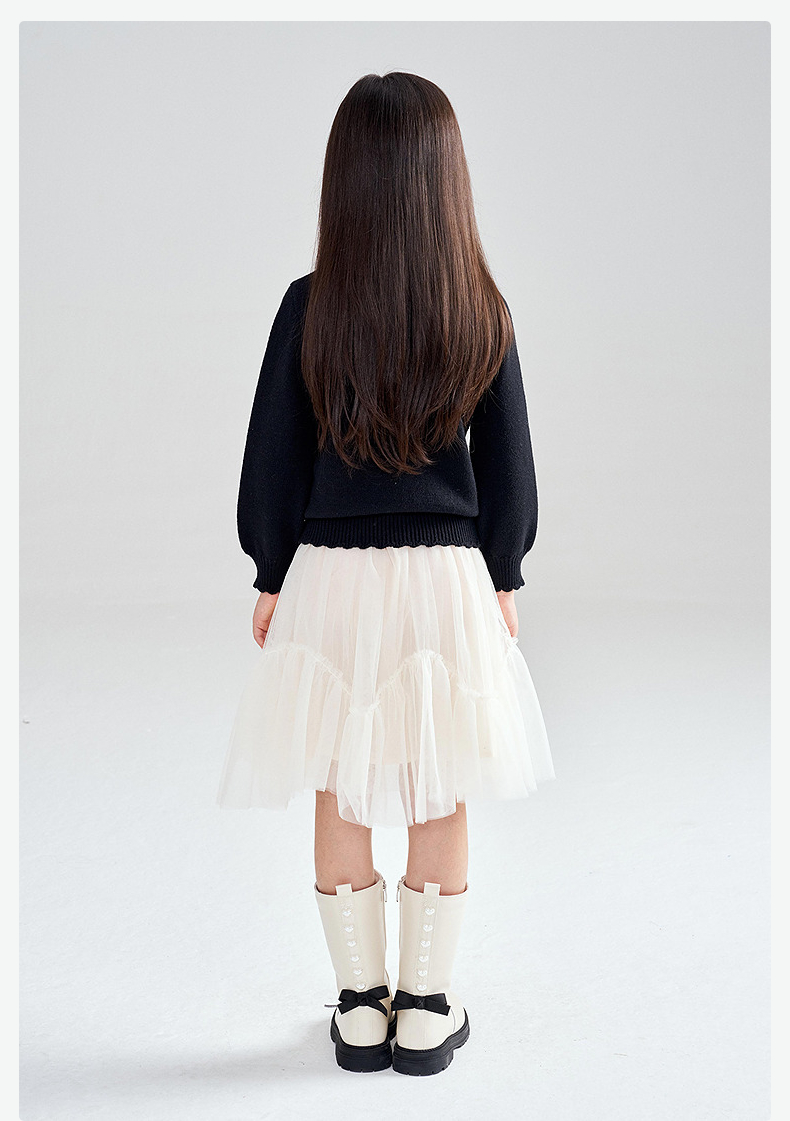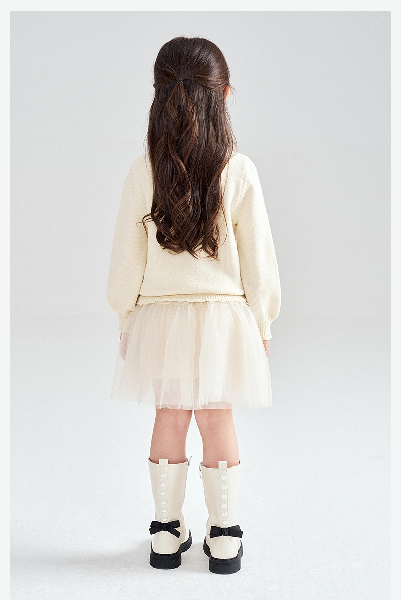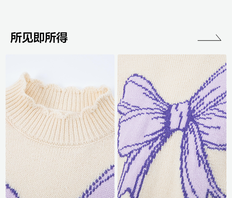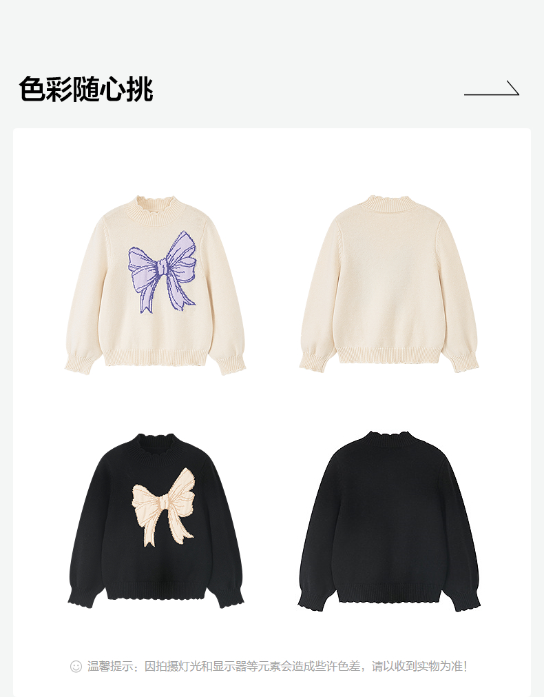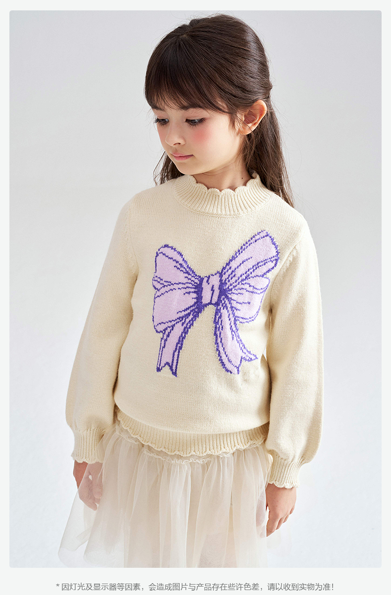 笛莎Deesha 2025冬季新款女童甜美蝴蝶结提花半高领套头针织衫