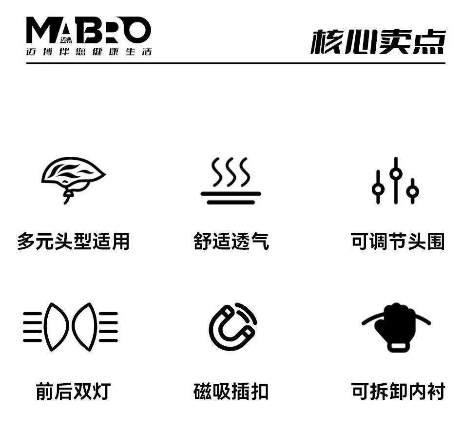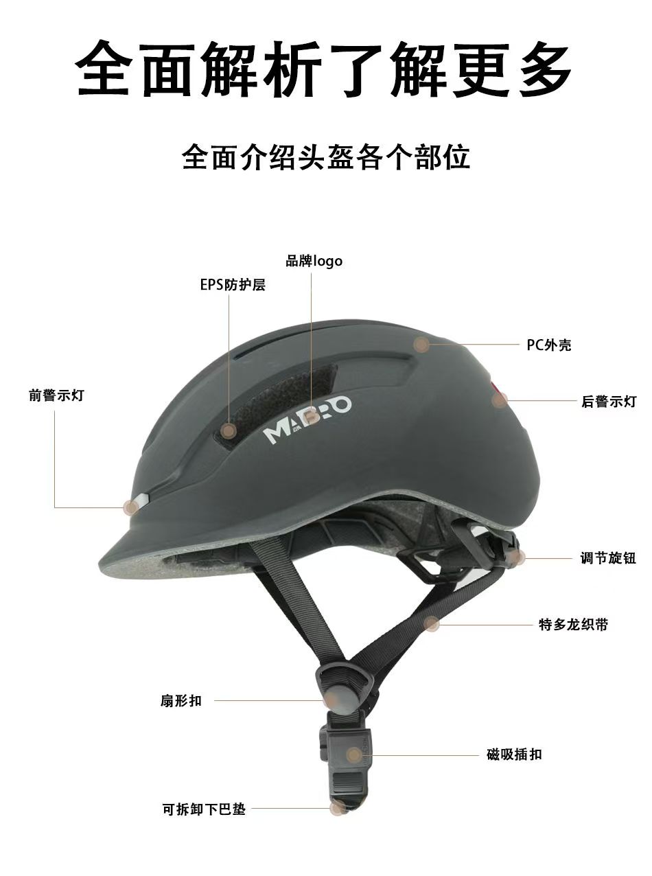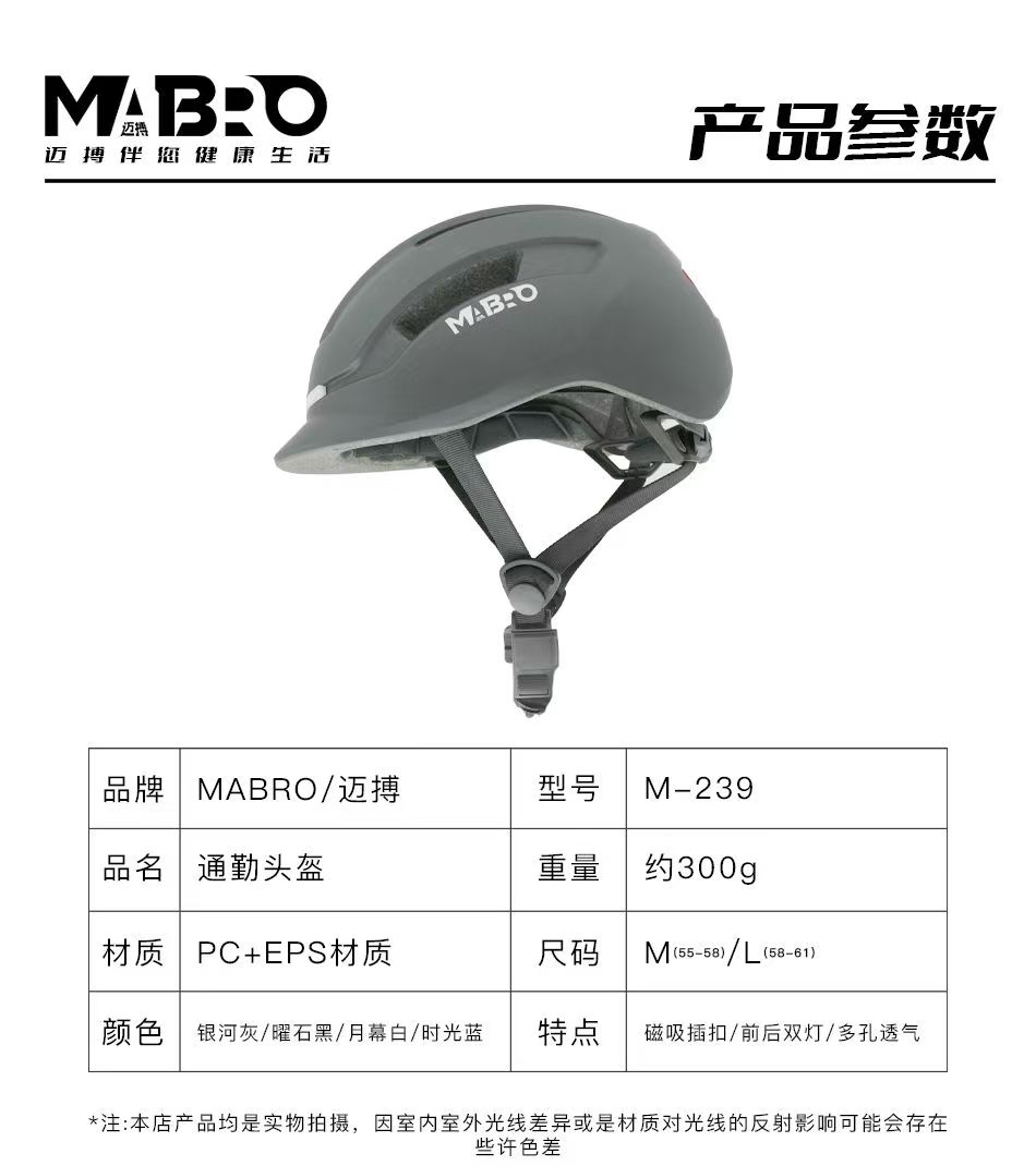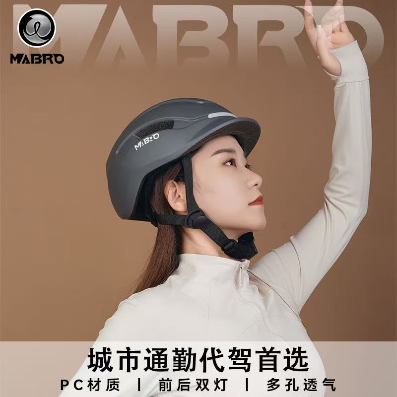 【磁吸便捷】MABRO迈搏骑行头盔前后灯自行车通勤代驾头盔城市男女机车安全帽