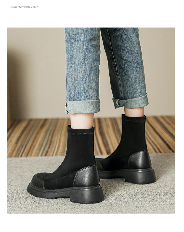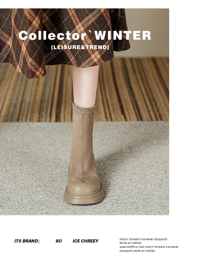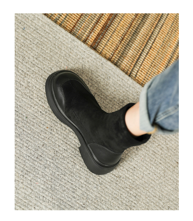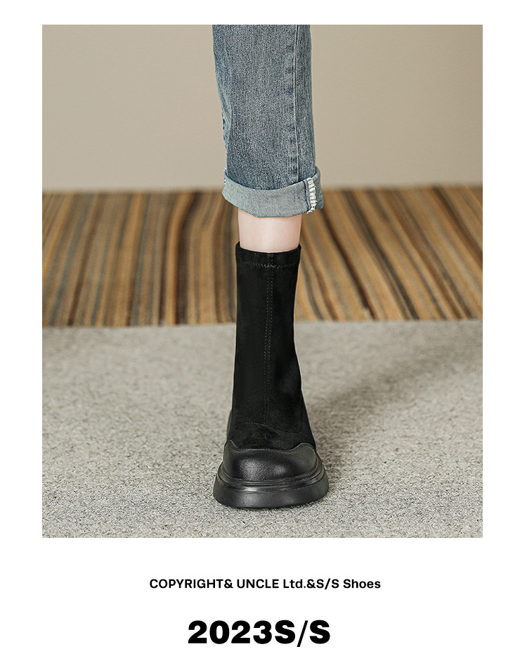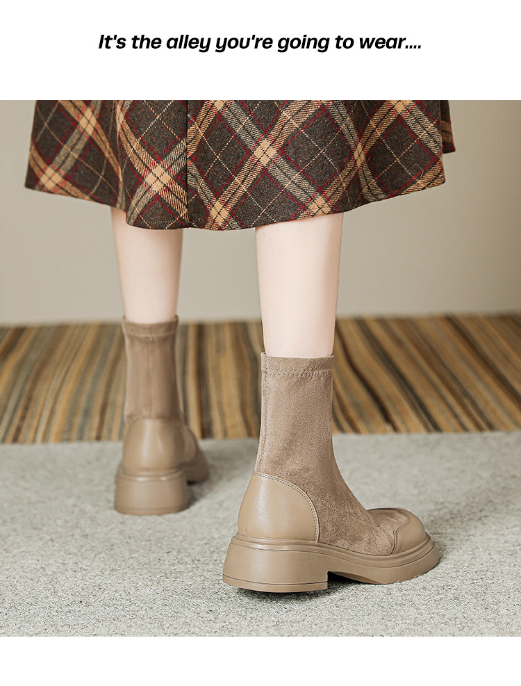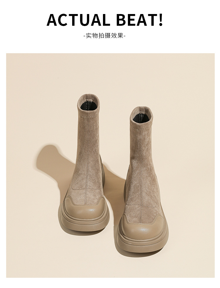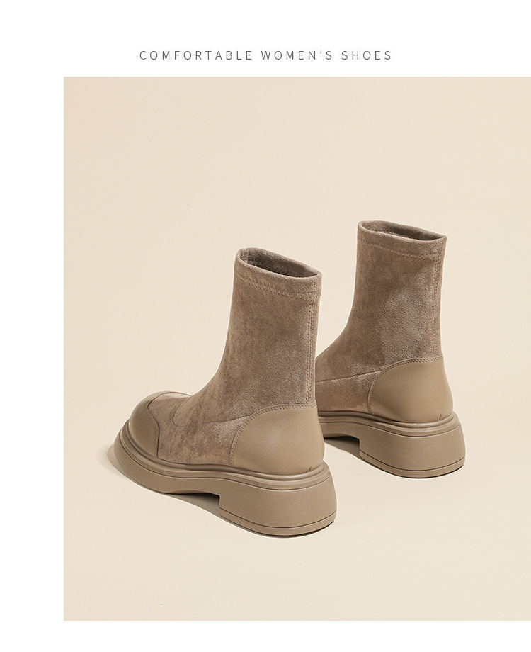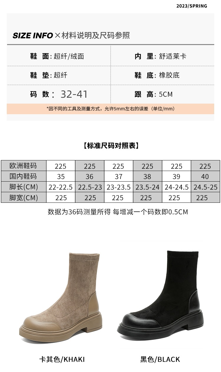丝滑质感绒面短靴女2023新款复古英伦风圆头弹力短筒靴子女瘦瘦靴