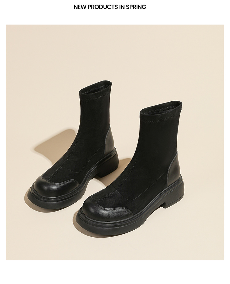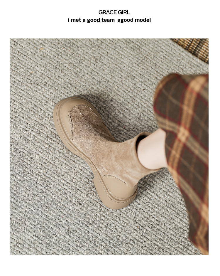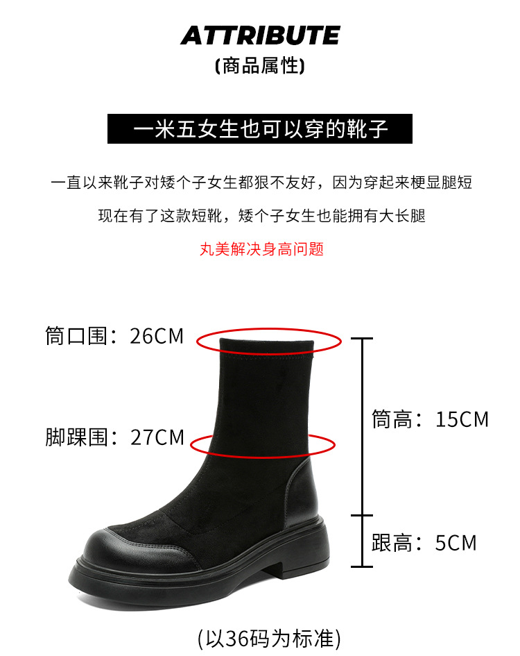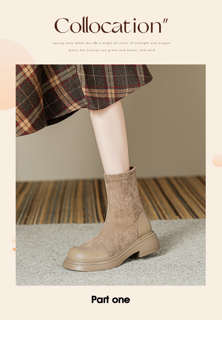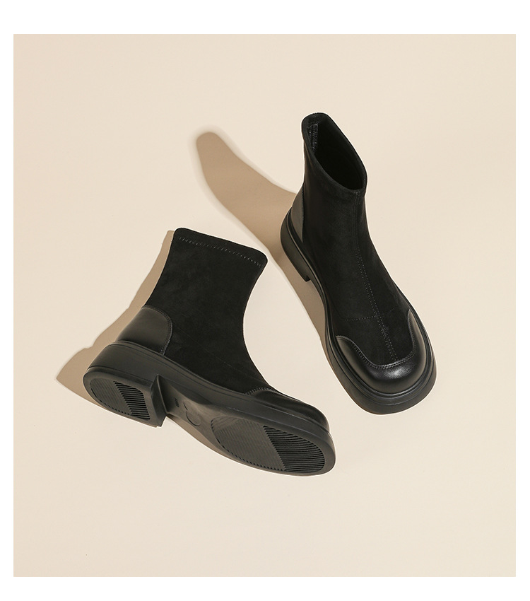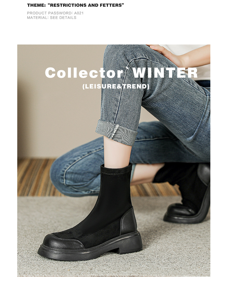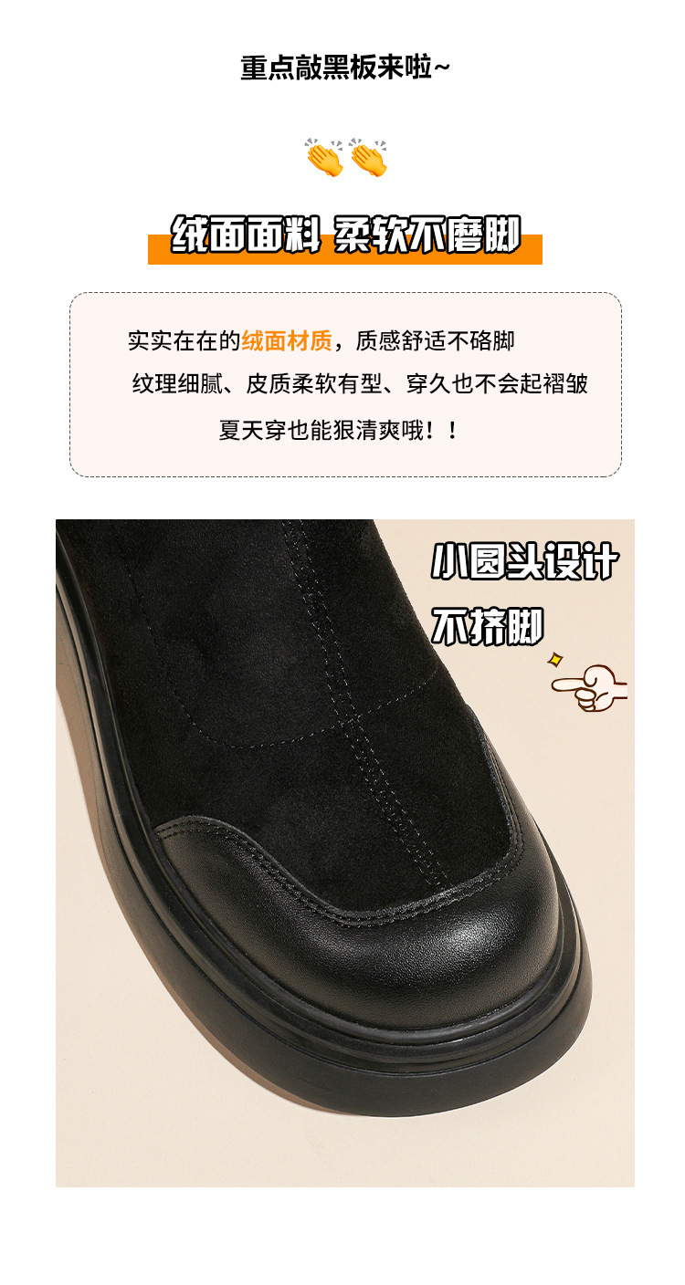 丝滑质感绒面短靴女2023新款复古英伦风圆头弹力短筒靴子女瘦瘦靴