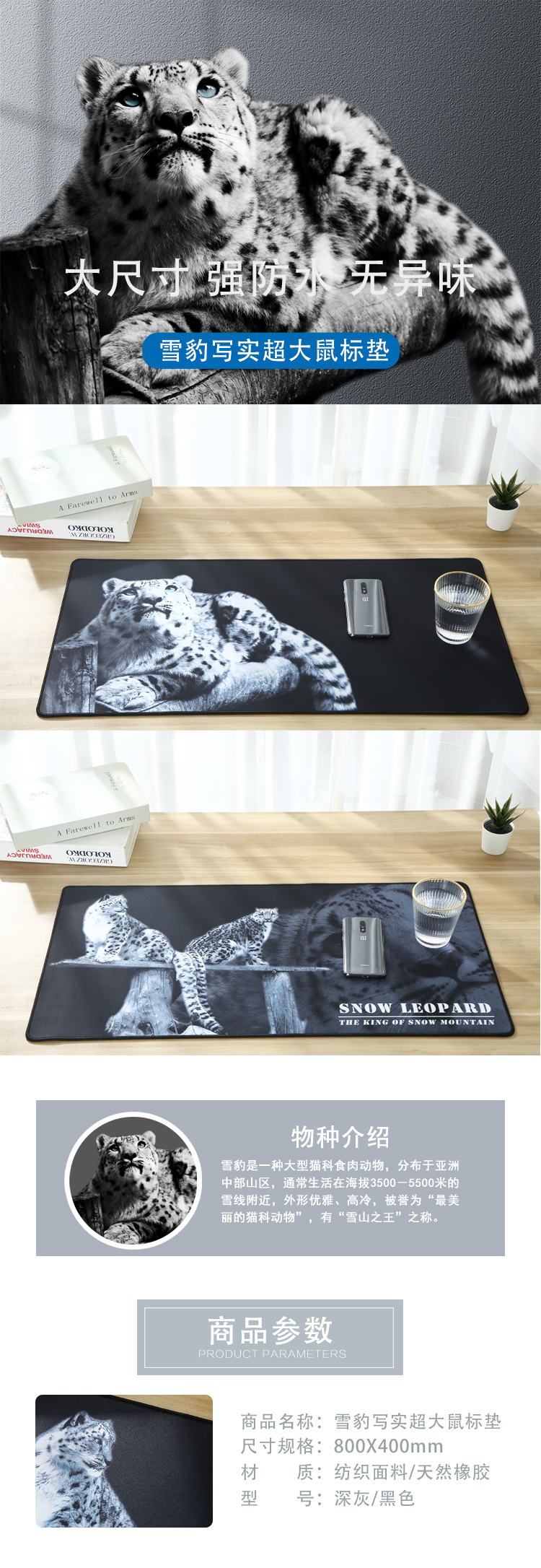 雪豹写真大号天然橡胶办公学习游戏桌垫防水鼠标垫