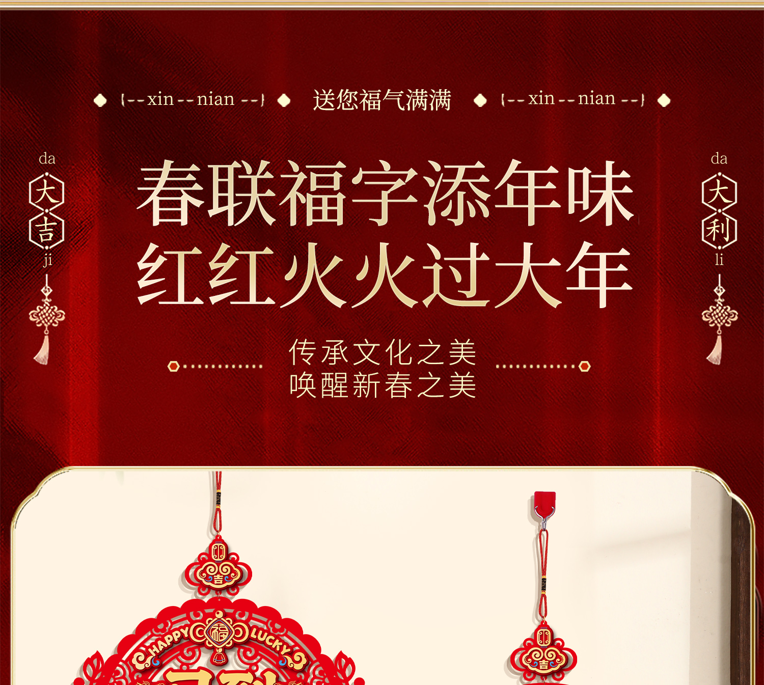 心选丨【9.9包邮】2026年马年新款福字挂件春节入户门背景墙装饰过年挂饰氛围布置用品