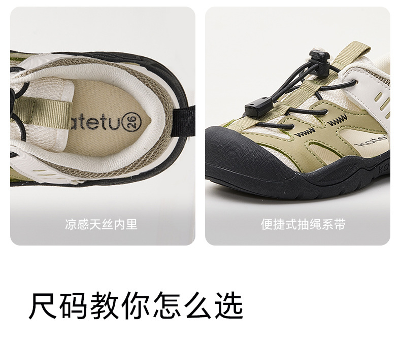【包头皮凉鞋】卡特兔女童凉鞋夏季皮凉鞋2024年童皮鞋男儿童鞋包头鞋软底松紧X4BF012