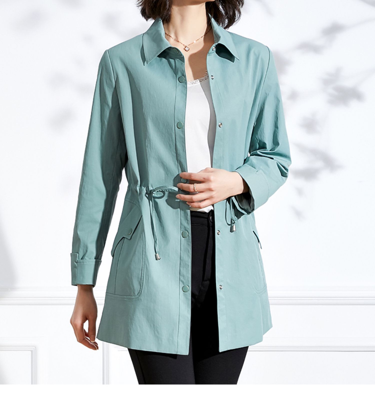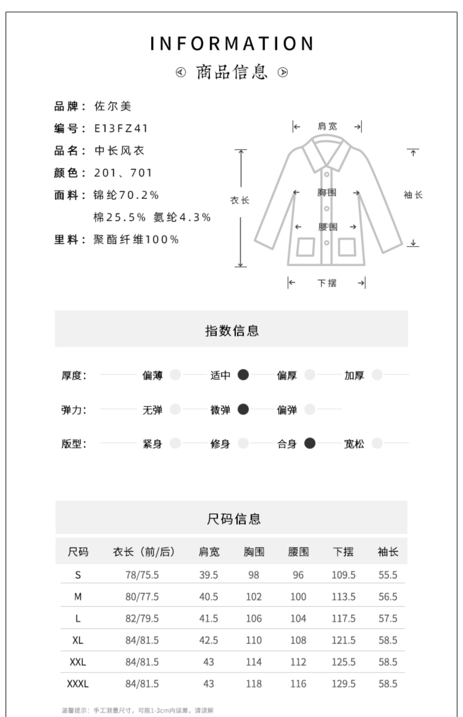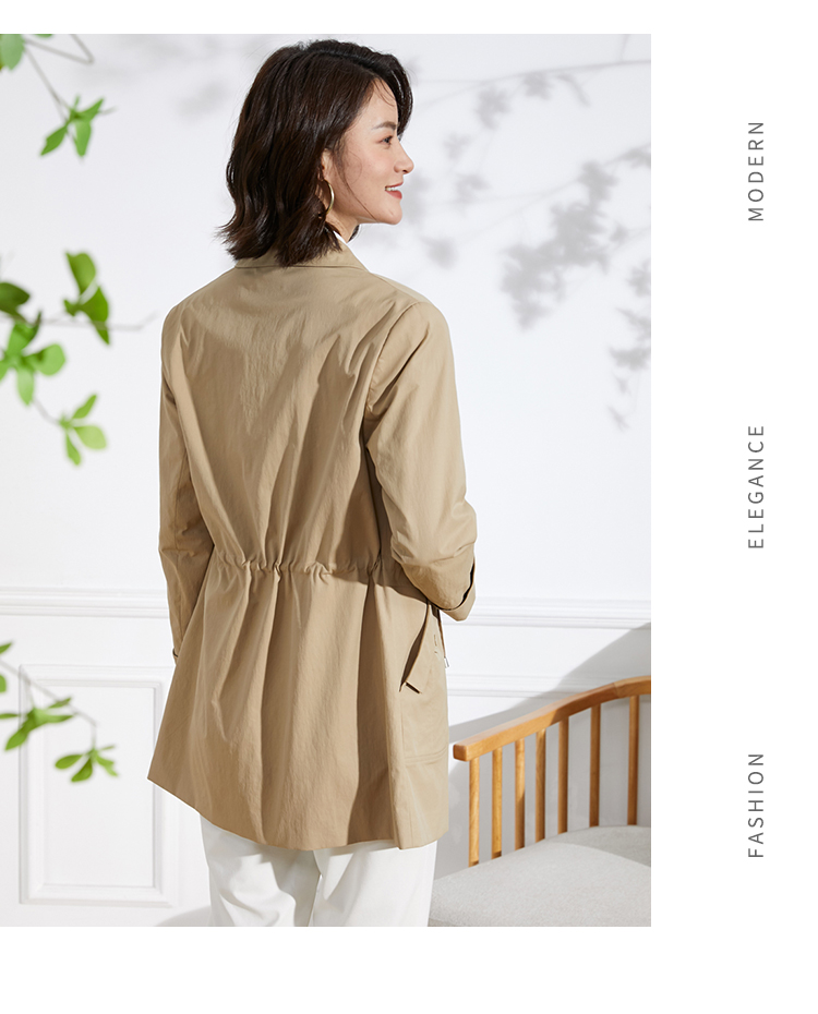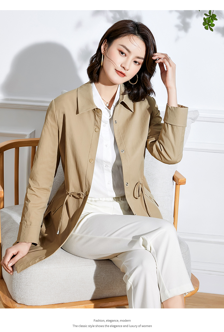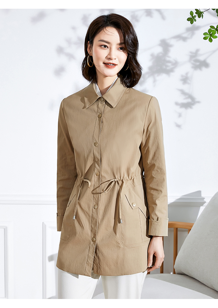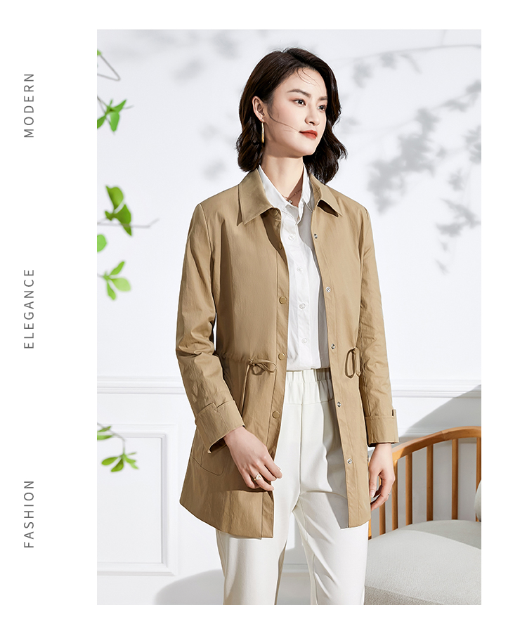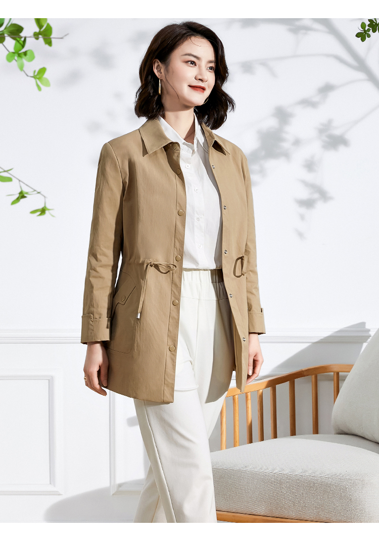 佐尔美新品春秋季新款纯色简约百搭修身中老年女士风衣E73FZ02