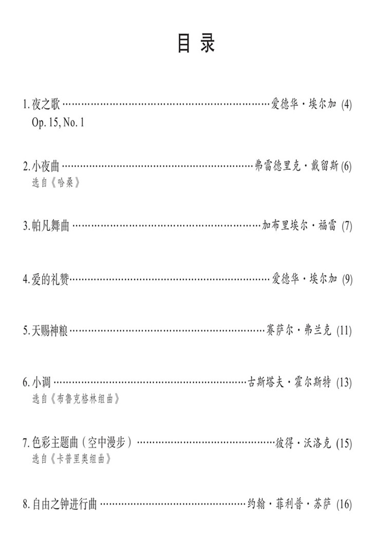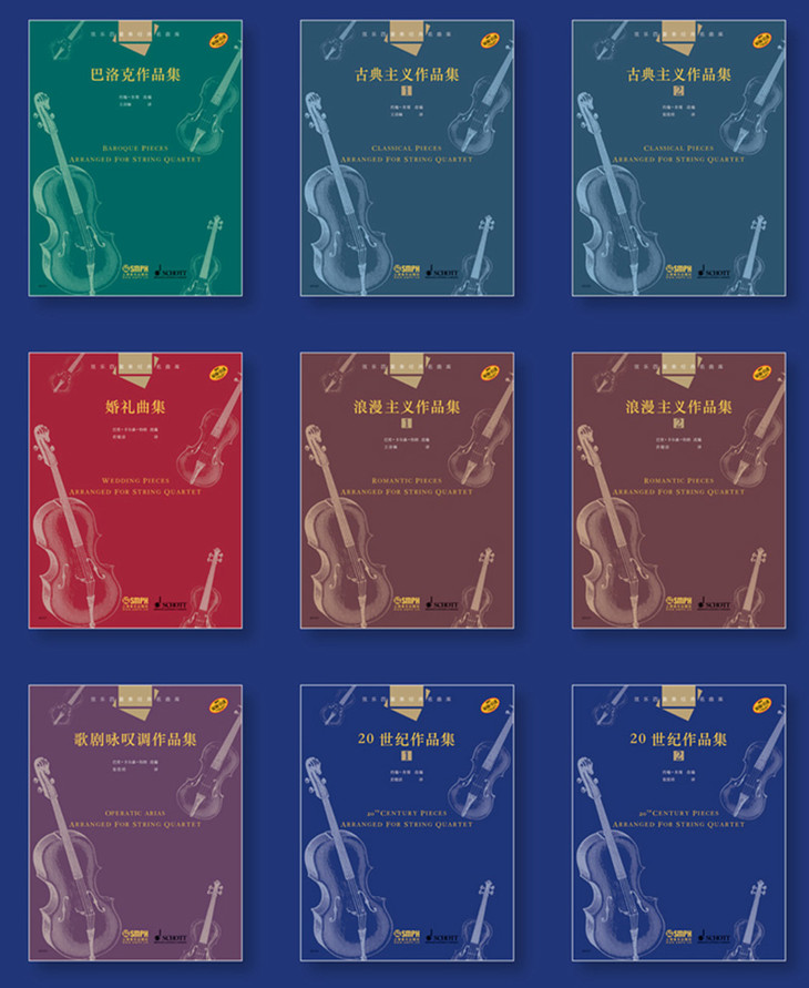 本系列曲库作者为已经出版了诸多畅销改编乐谱的作曲家约翰·肯布尔与巴里·卡森·特纳。两位作曲家本次为弦乐四重奏精选60首极具代表性的曲目,以6个鲜明的主题呈现,每册均含总谱与4份分谱。所选作品来自巴洛克、古典主义、浪漫主义、现代4个时期,且皆多是受大众喜爱、耳熟能详的曲目。改编力求贴近原曲的风格与初衷,制谱准确精美。易上手且实用性强。