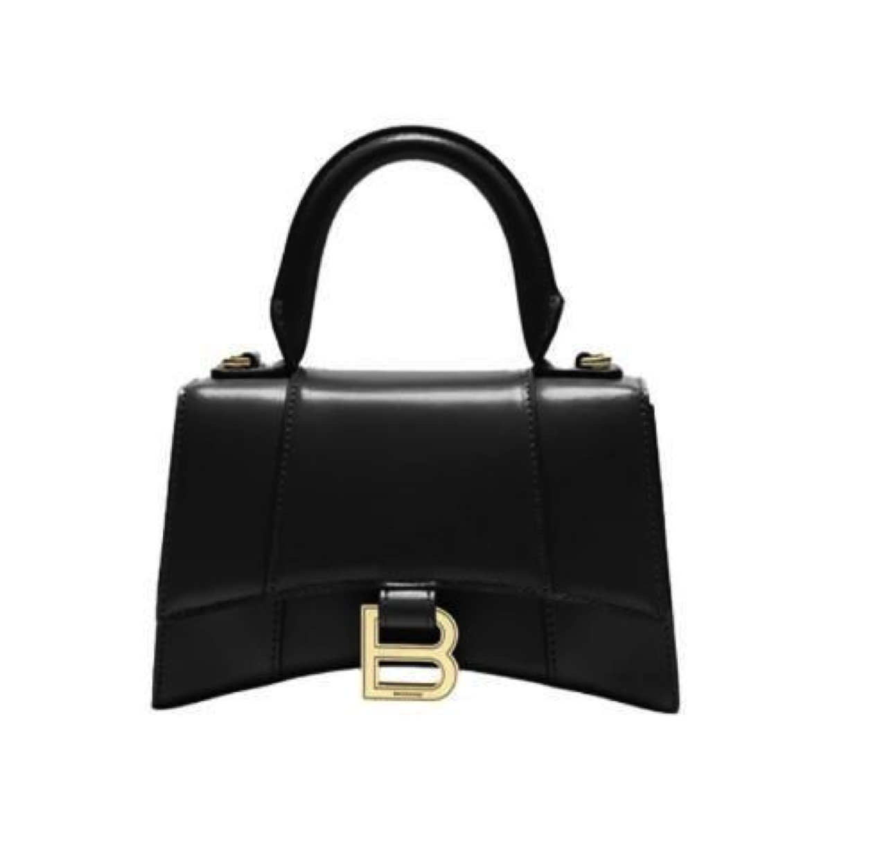 Balenciaga巴黎世家 hourglass 金扣光面 牛皮 沙漏包手提包 超小号 女款 黑色