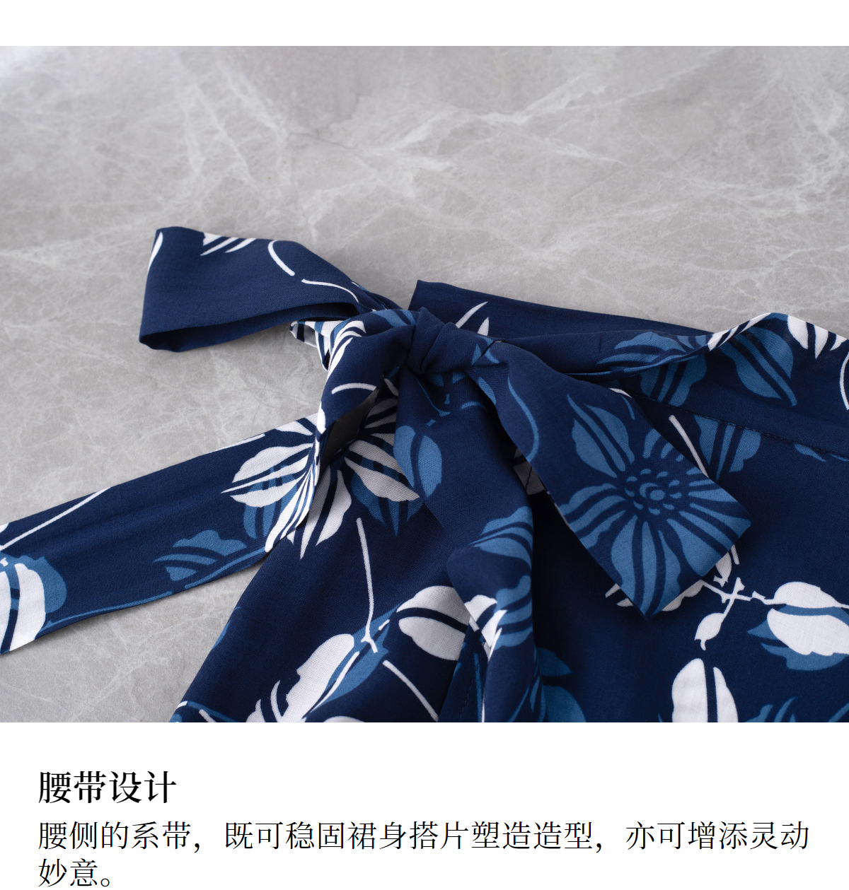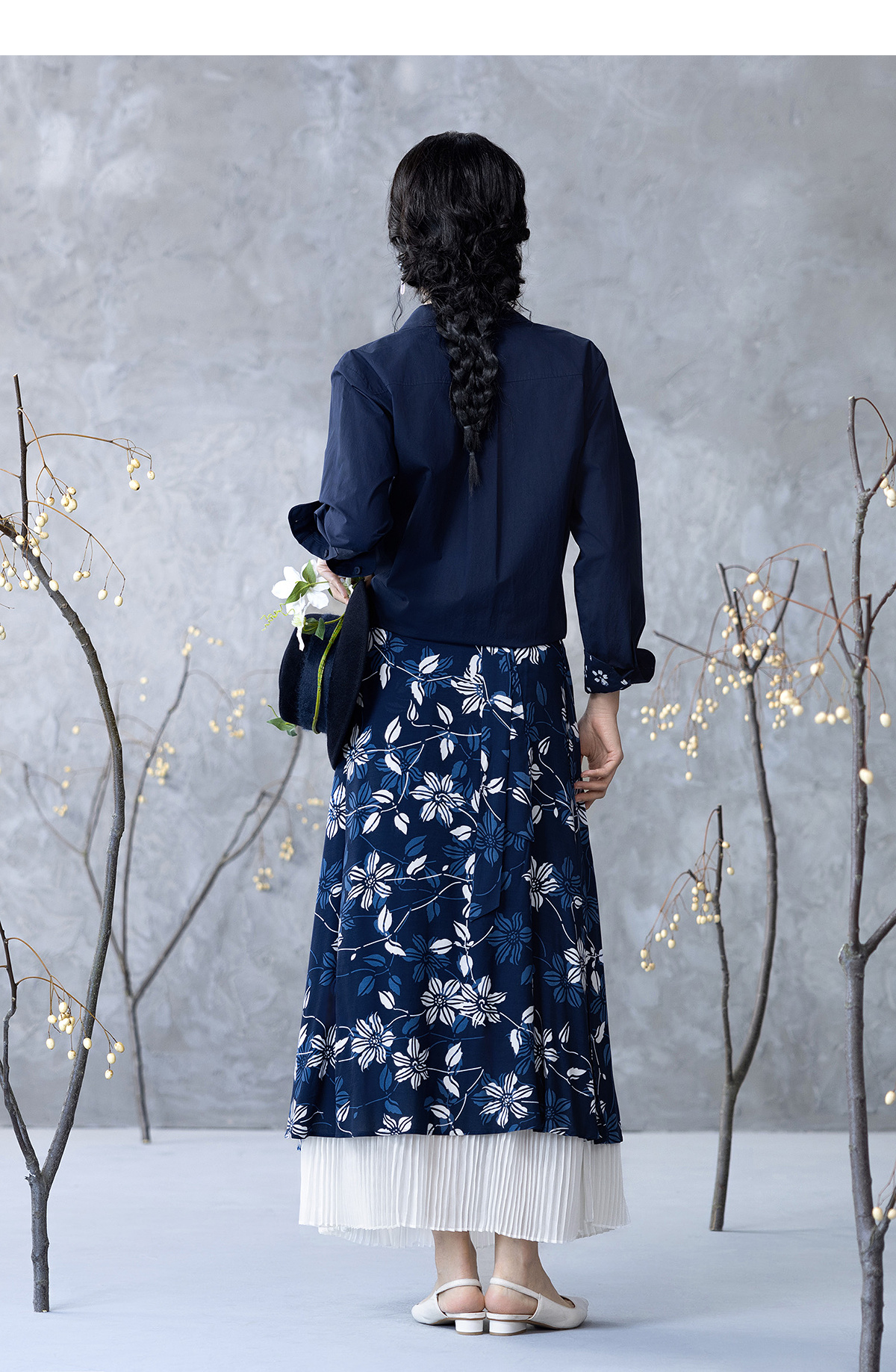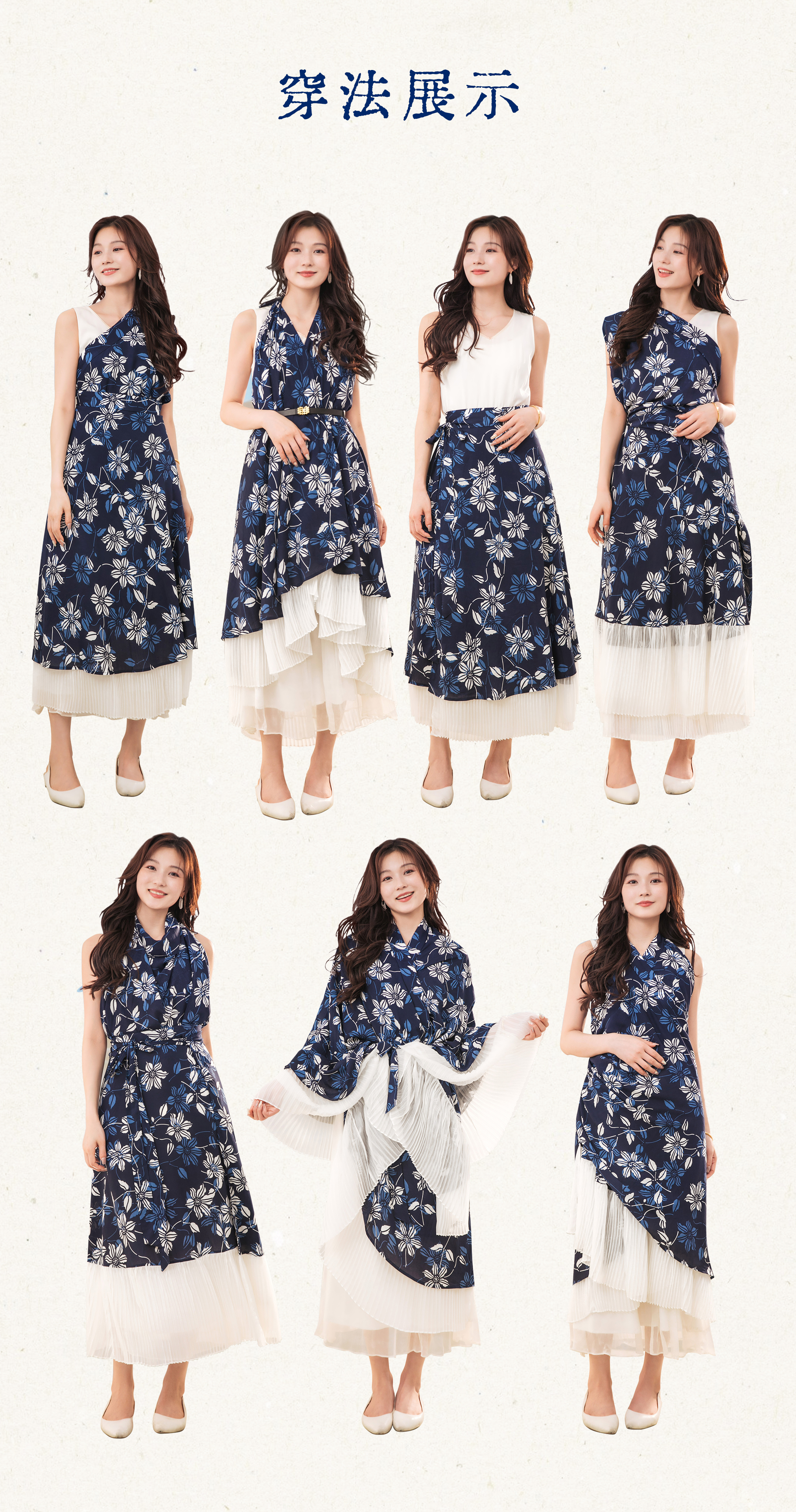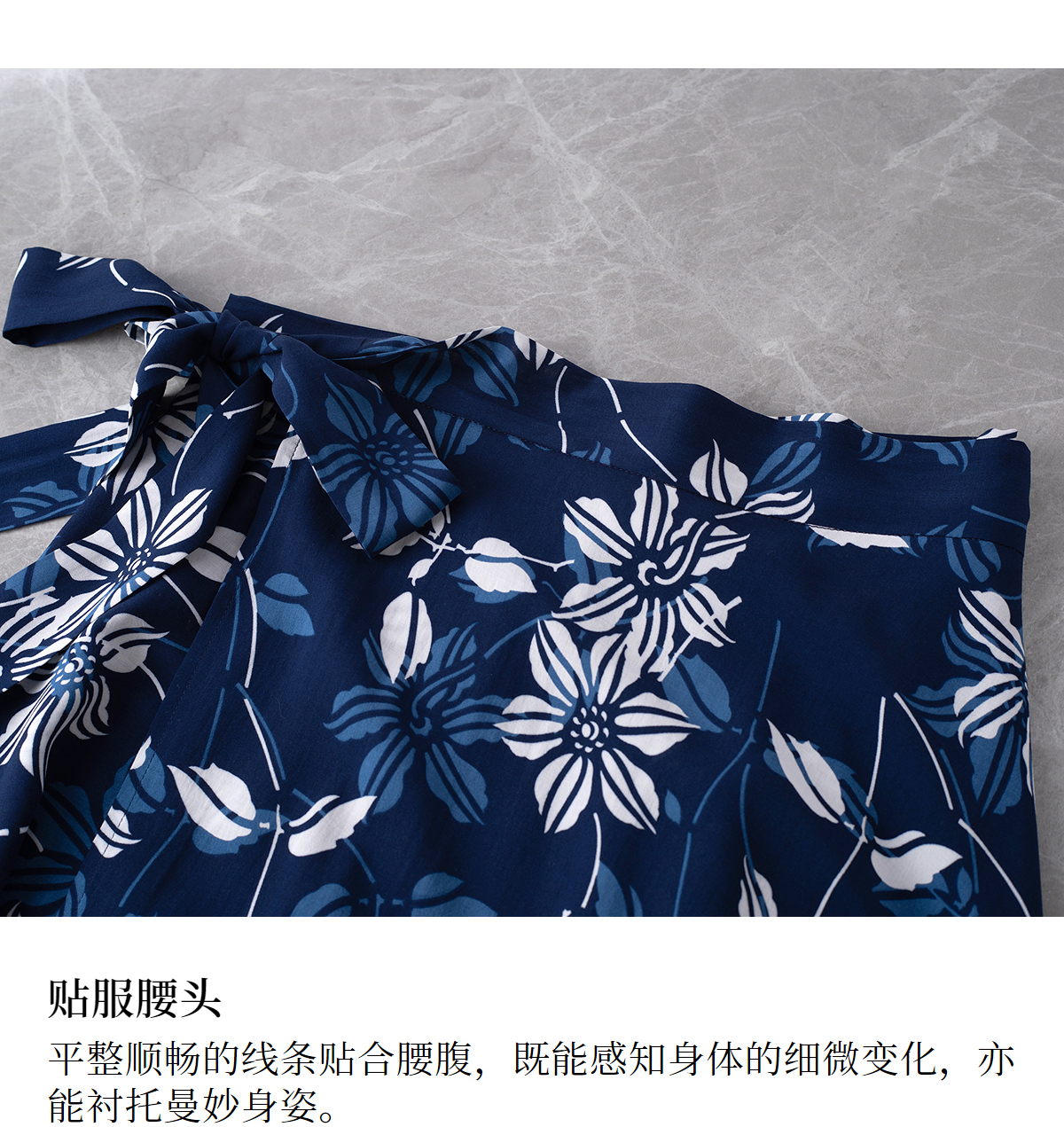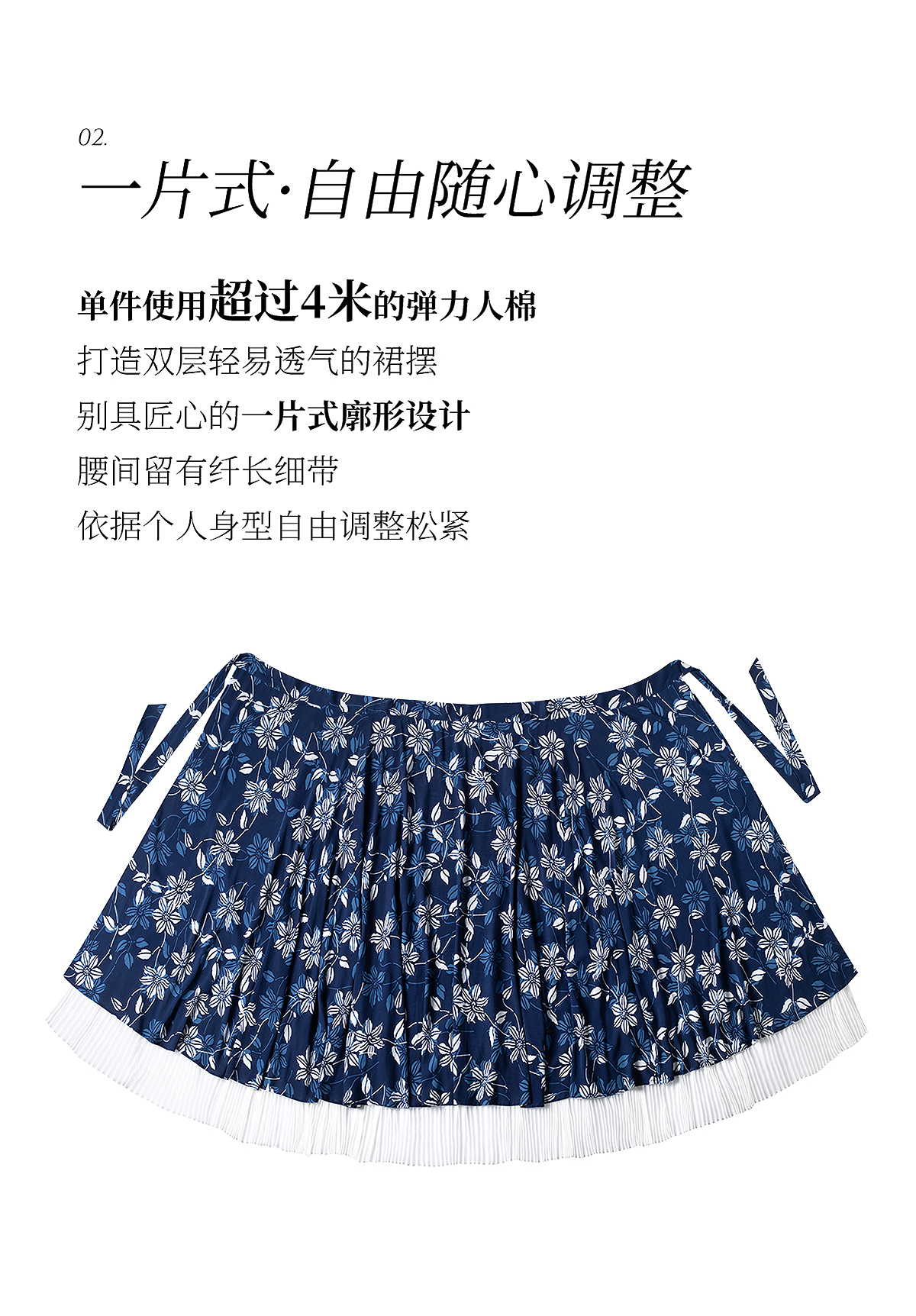 【林栖设计小店】【多种穿法】(部分尺码现货)传统蓝印花铁线莲花纹半身裙一片式系带宽松层次感2025夏季新品裙子女1952130