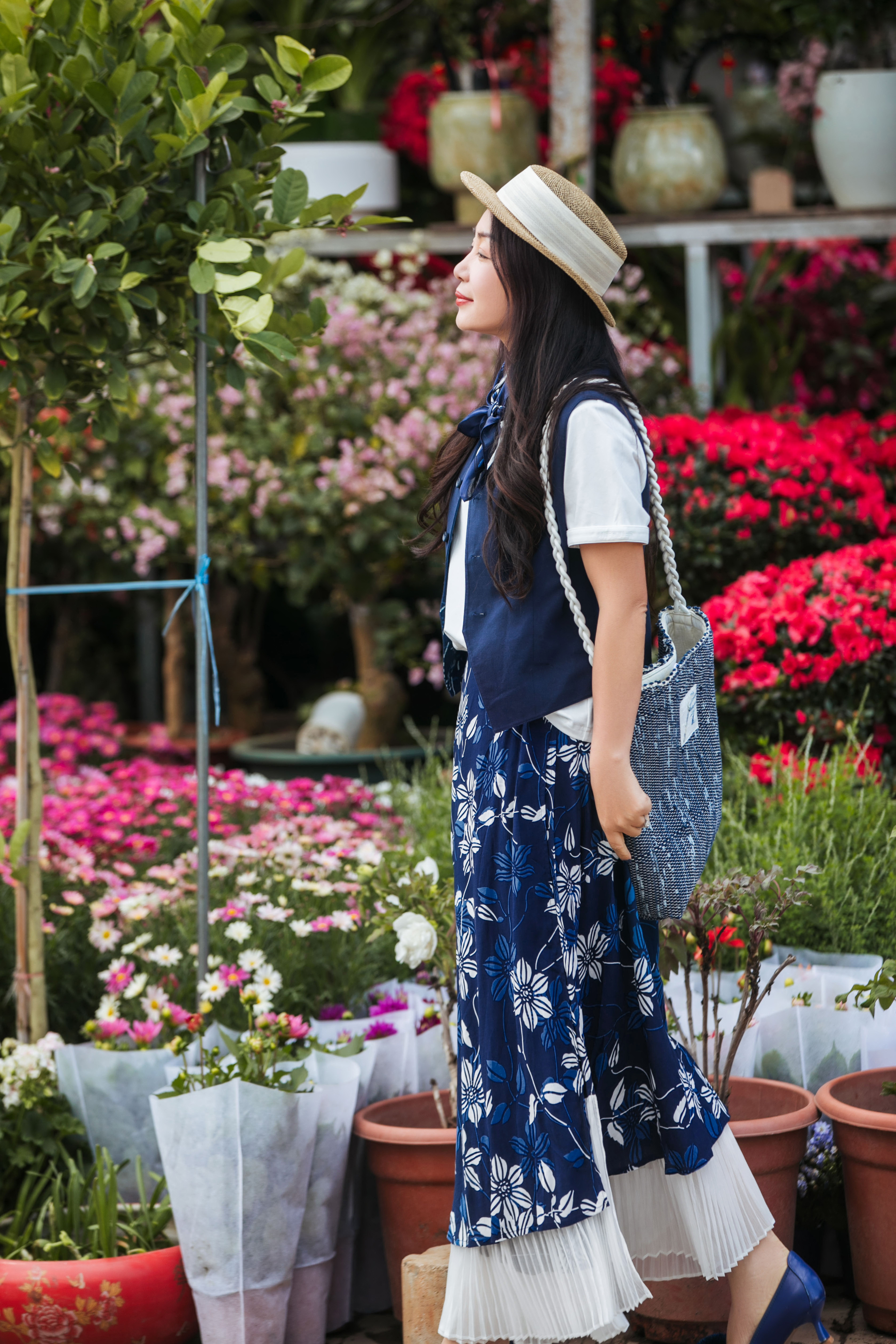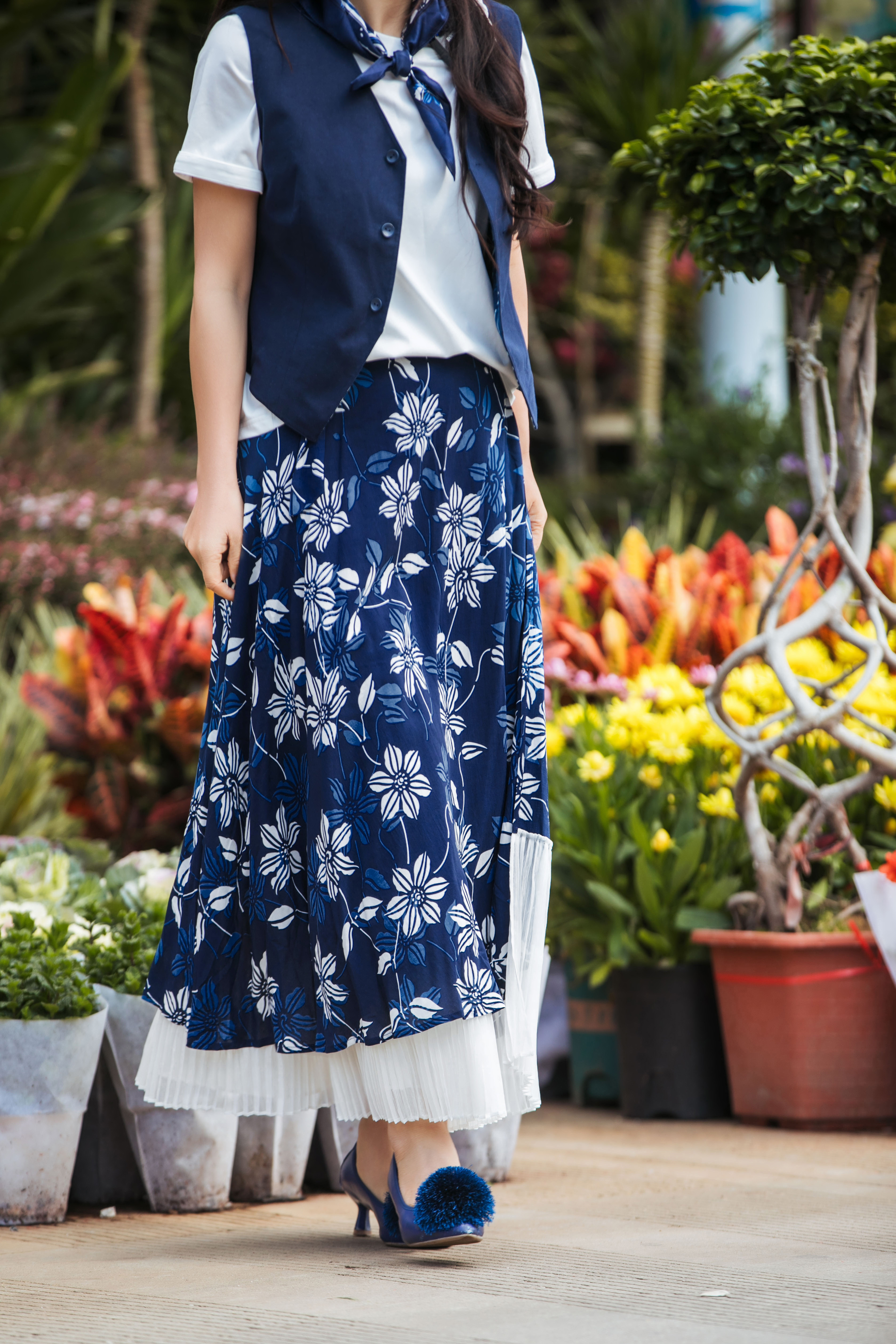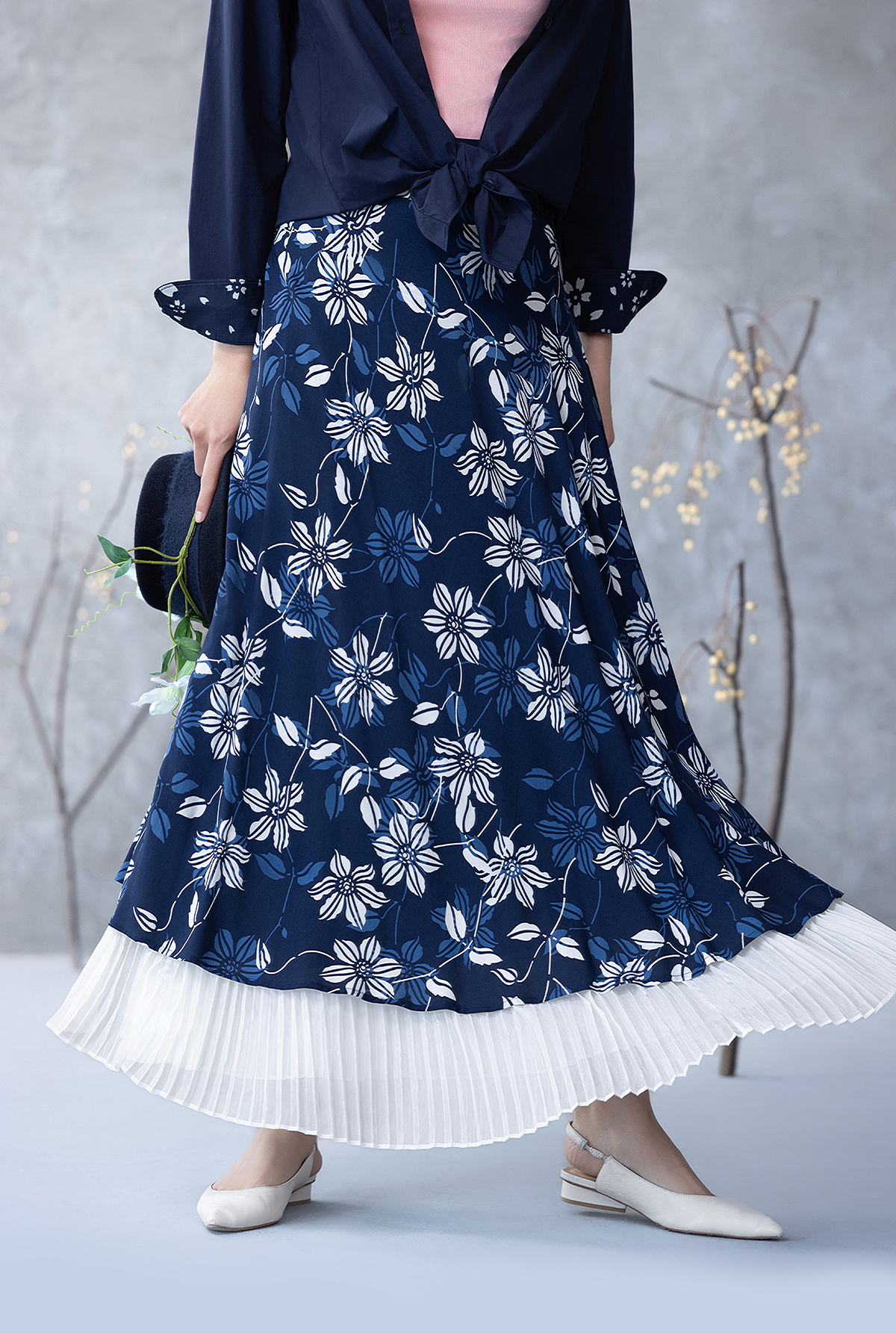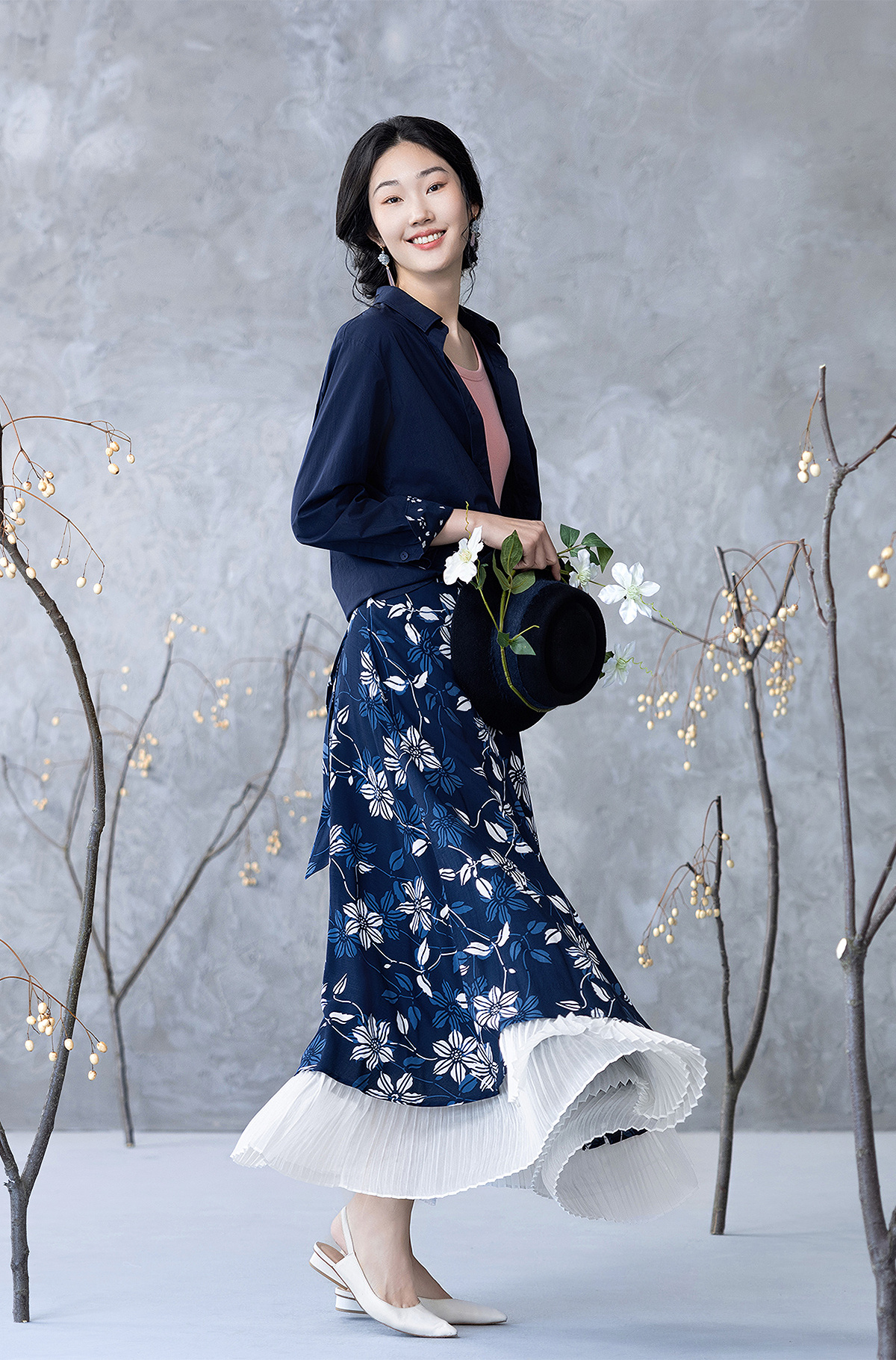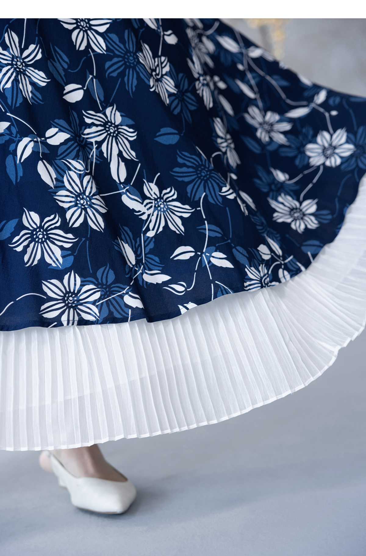 【林栖设计小店】【多种穿法】(部分尺码现货)传统蓝印花铁线莲花纹半身裙一片式系带宽松层次感2025夏季新品裙子女1952130