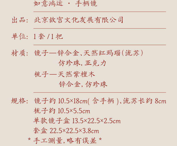 【故宫家居】如意鸿运镜子梳子礼盒文创生日新婚结婚订婚礼物送新人