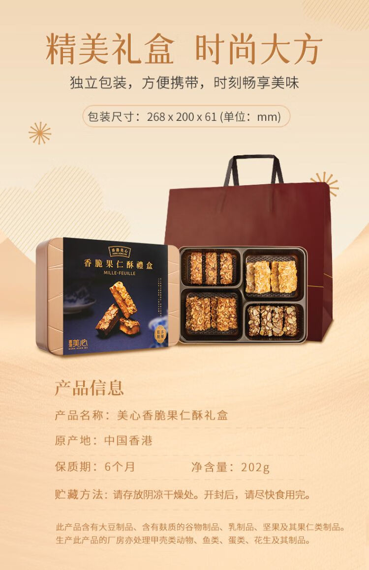 美心礼盒装香脆果仁酥礼盒 202g/盒