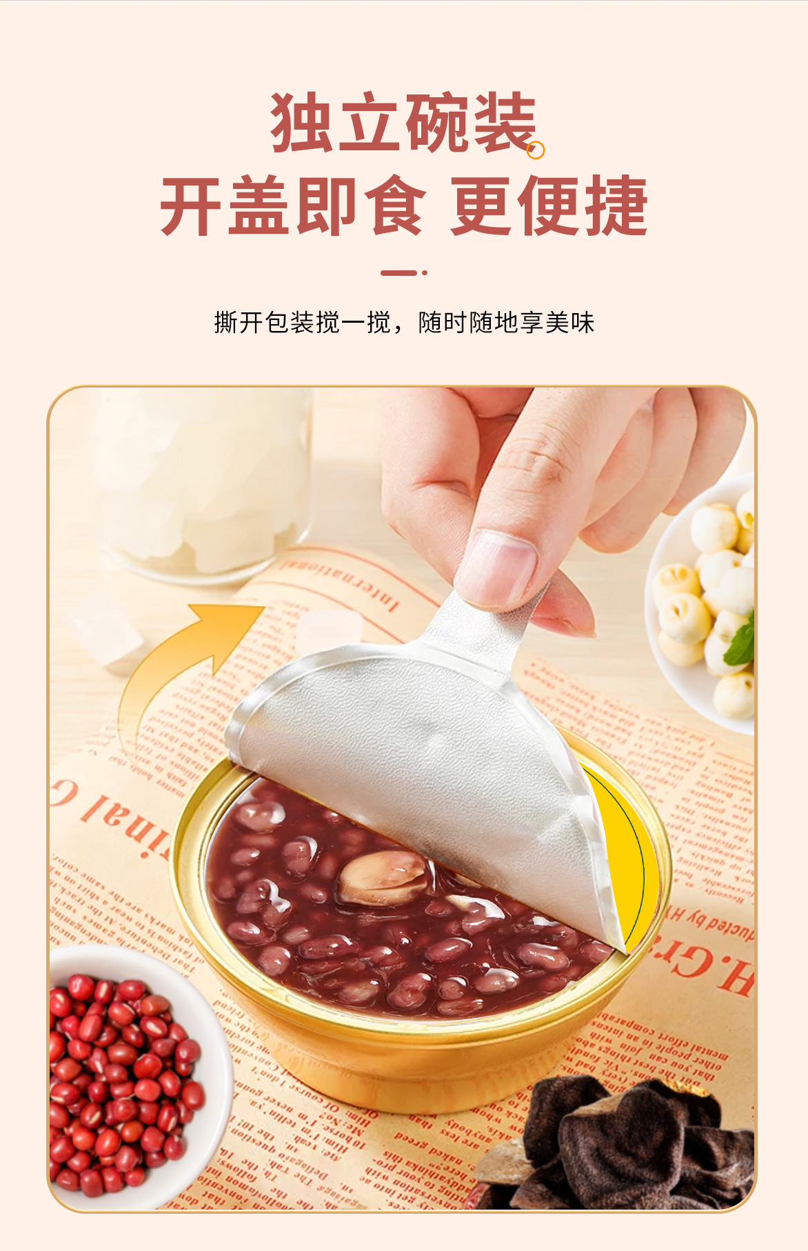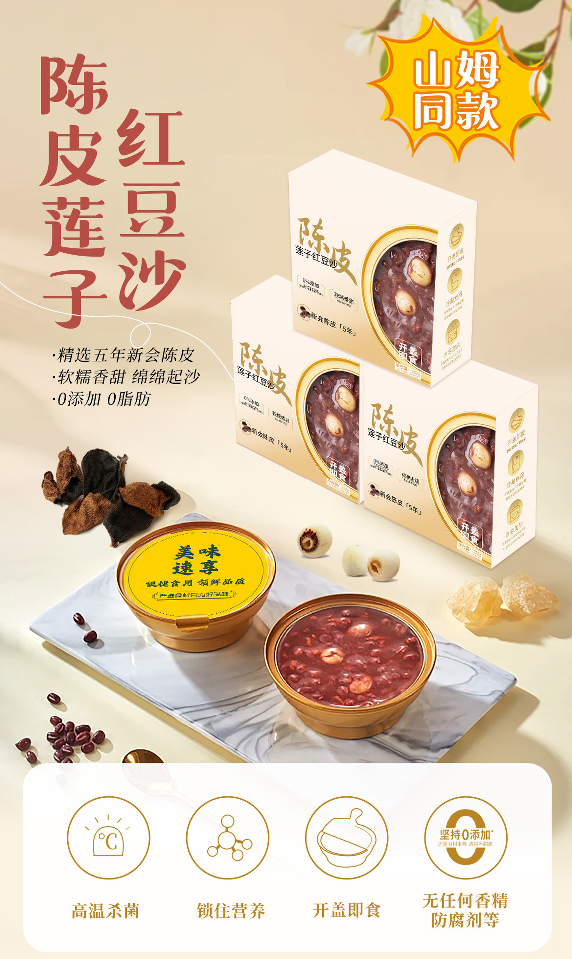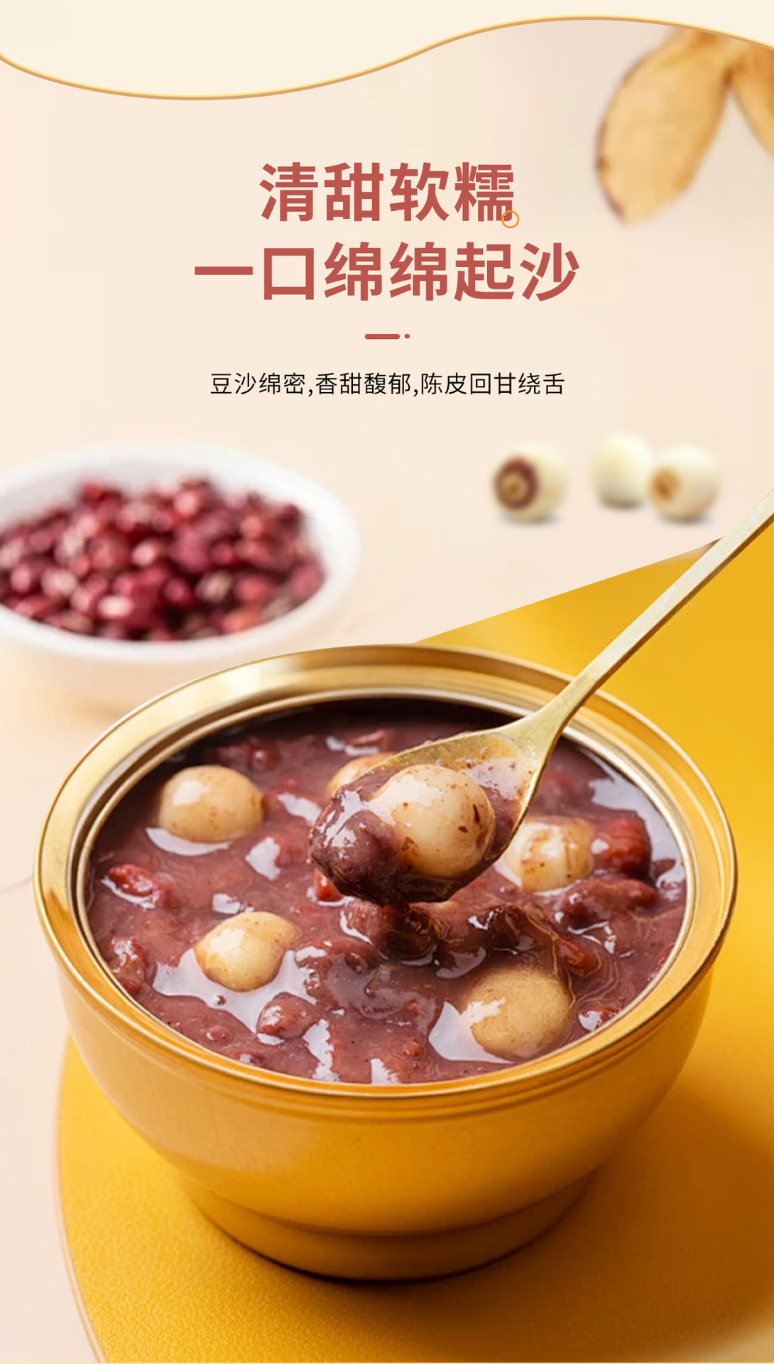 【山姆同款❗️陈皮莲子红豆沙】 精选五年新会陈皮,软糯香甜,绵绵起沙「0添加 0脂肪」文火慢炖多个小时,食材相融美味交织,尽情演绎别样风味, 网红爆款金碗盒装,超市同款即食方便粥L