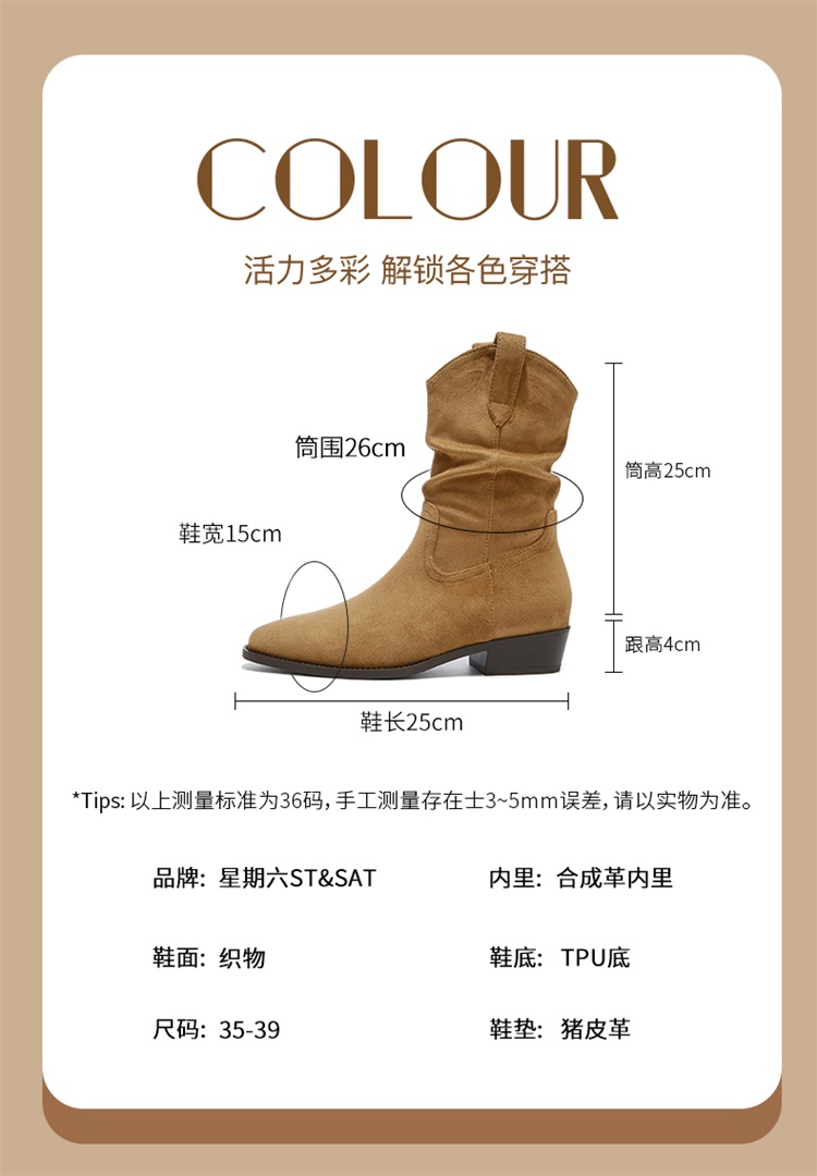 星期六英伦复古中筒时装靴SSD4116T2N