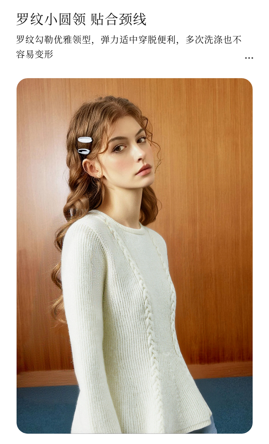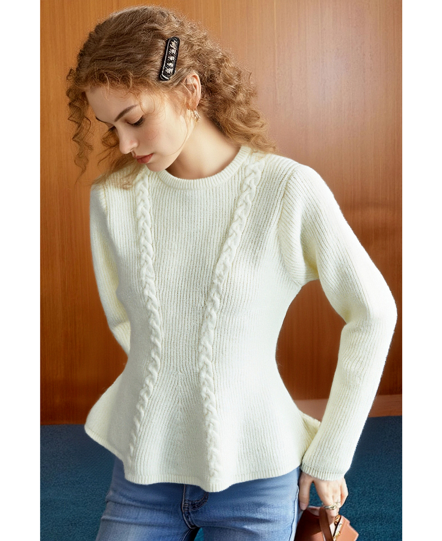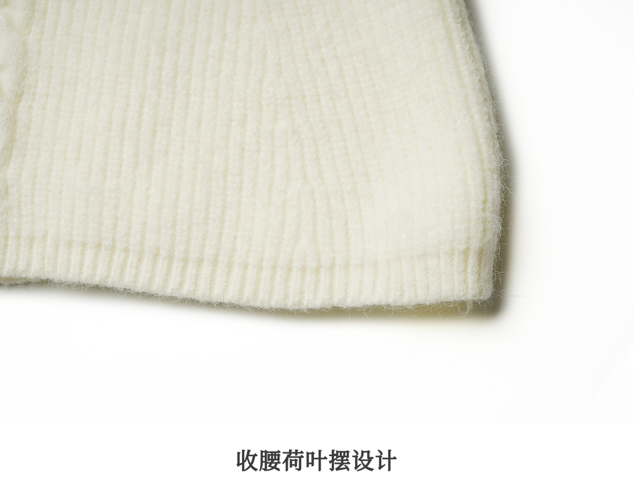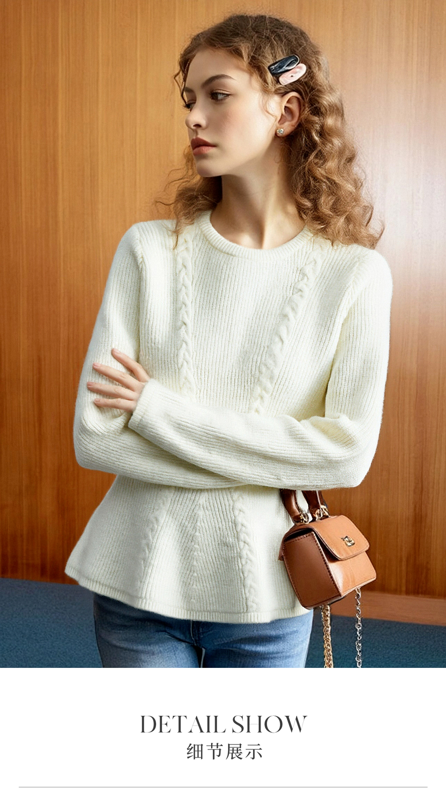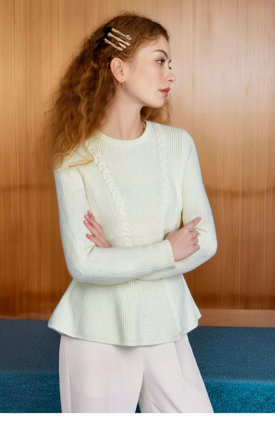 简约磨毛圆领收腰叶边针织打底衫女冬季法式纯色显瘦休闲套头毛衣