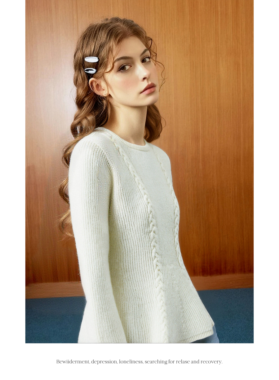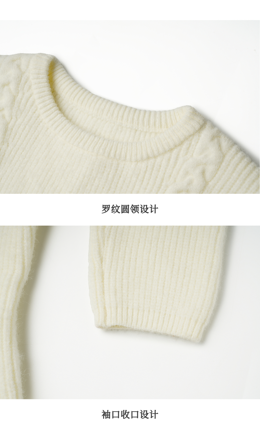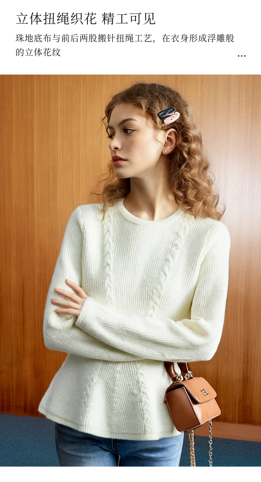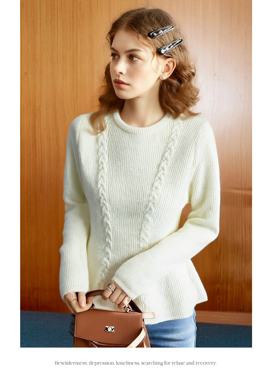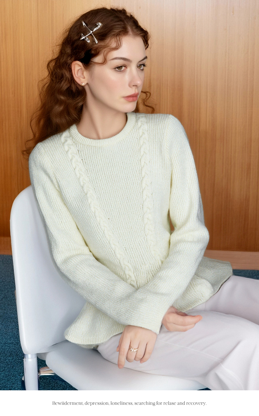 简约磨毛圆领收腰叶边针织打底衫女冬季法式纯色显瘦休闲套头毛衣