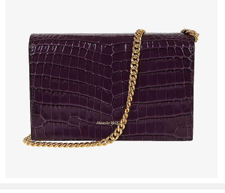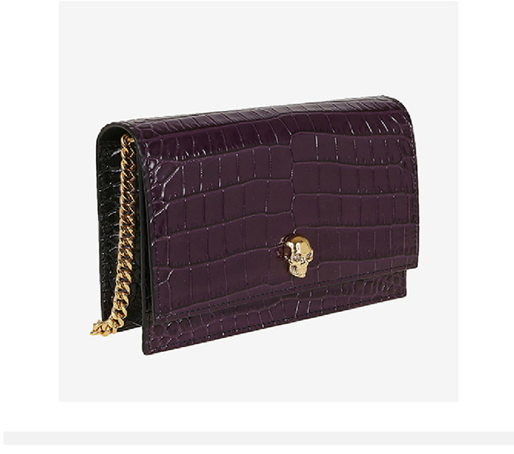 Alexander McQueen 麦昆 女士单肩链条包 紫色 鳄鱼皮压纹 613088 1HBBG 5150