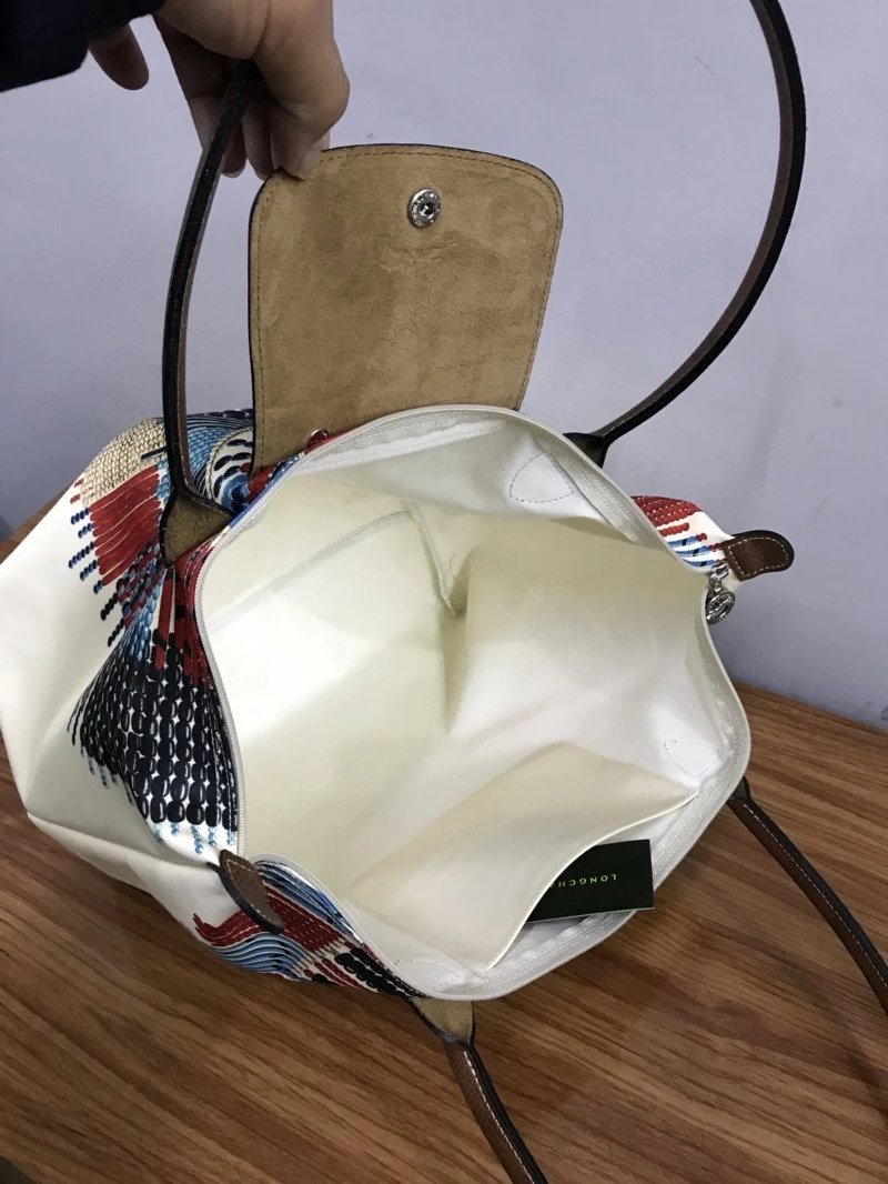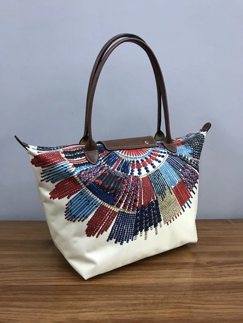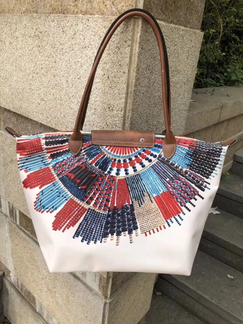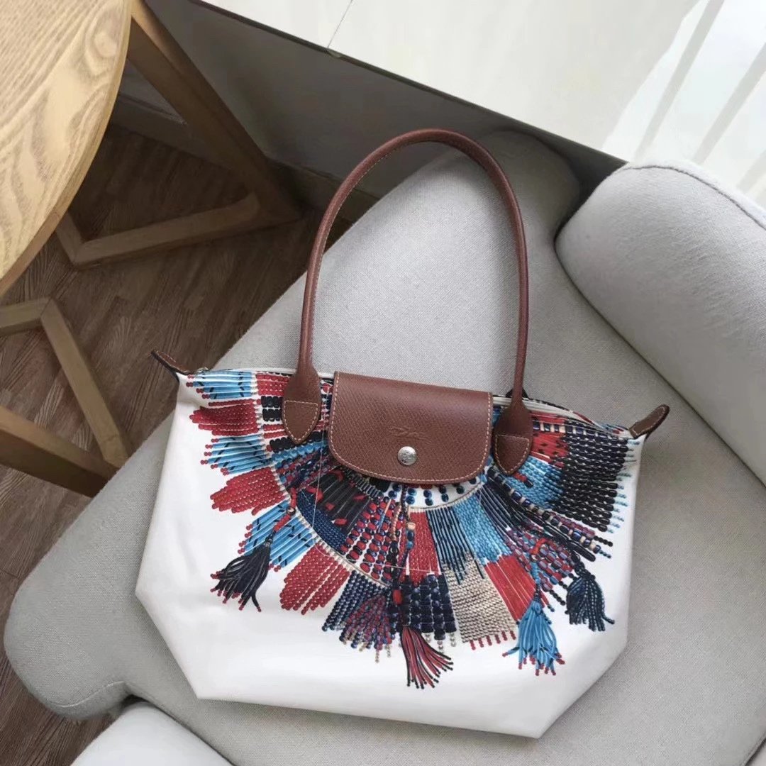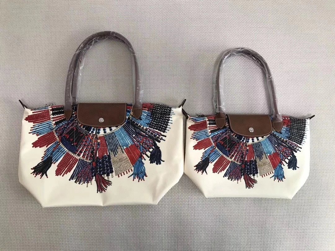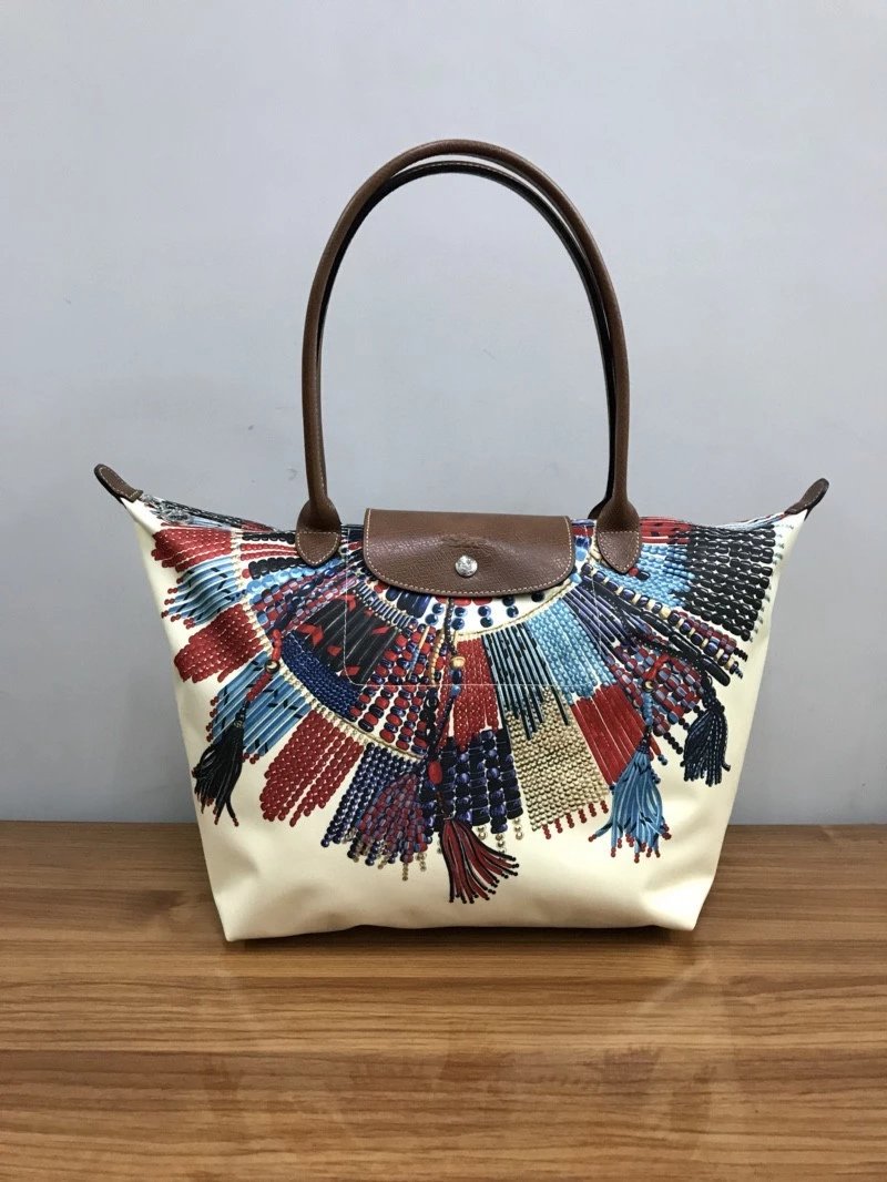 龙*骧longchamp 马赛系列饺子包 款式时尚百搭的手提包 不仅内在容量巨大 首先引入眼帘的便是它缤纷色彩花纹图案 采用原厂高级别喷绘技术 把生动彩绘图案完美印刻在帆布之上 这种工艺除了原厂正品之外 真的没有谁了 只配外logo胶袋!大号尺寸:46x31x30x19cm中号尺寸:36x25x25x14cm