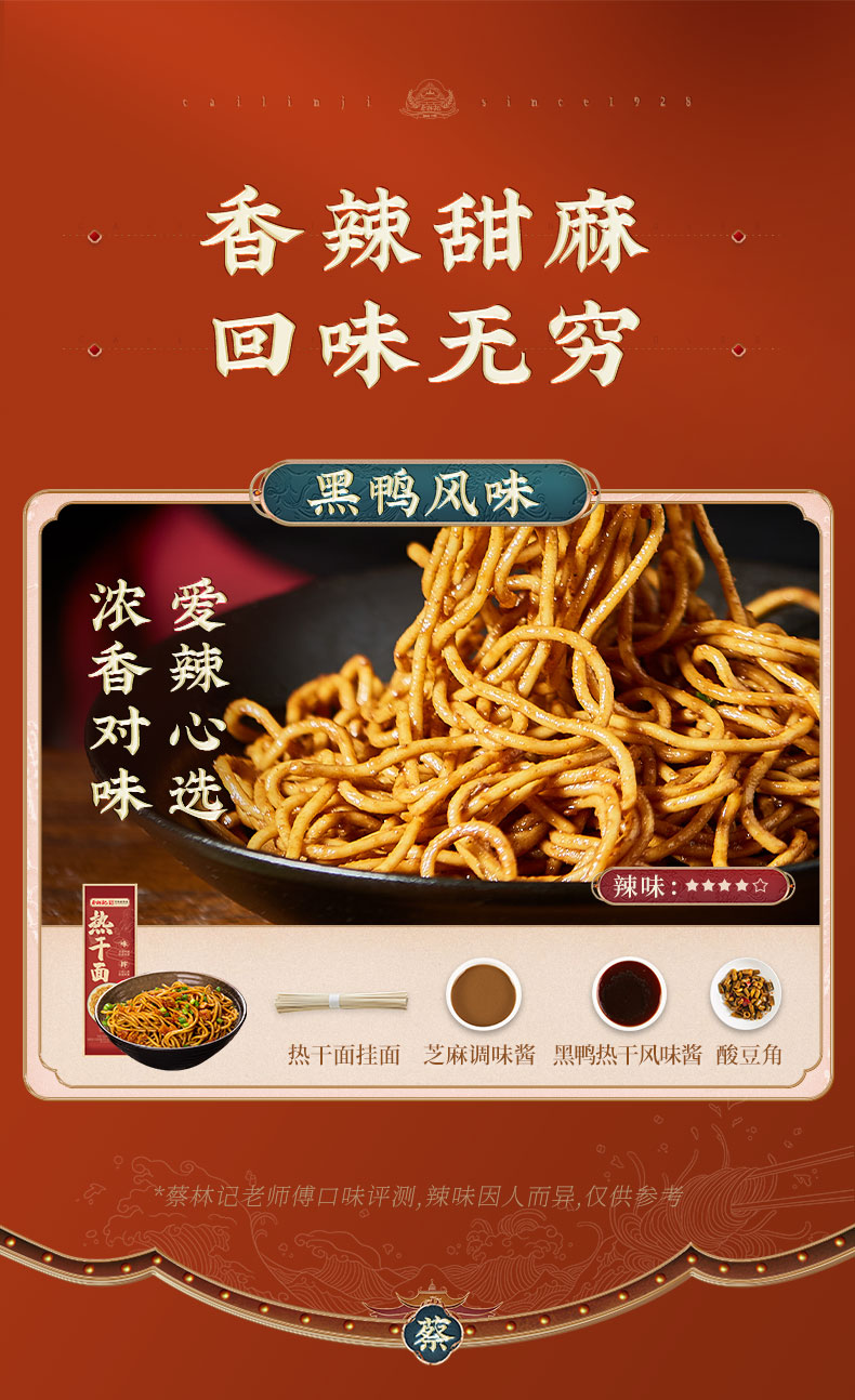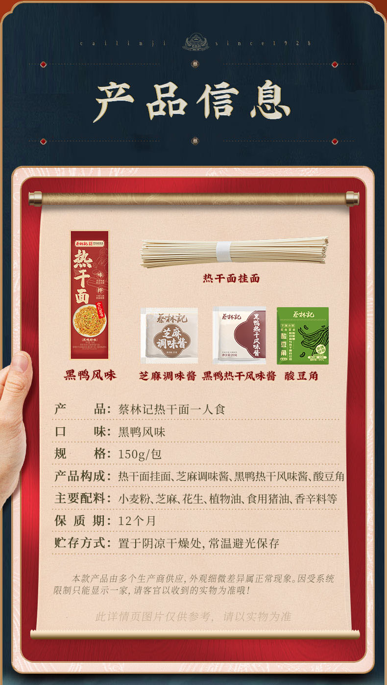 【69元任选15件】蔡林记热干面一人份黑鸭味150g*1包