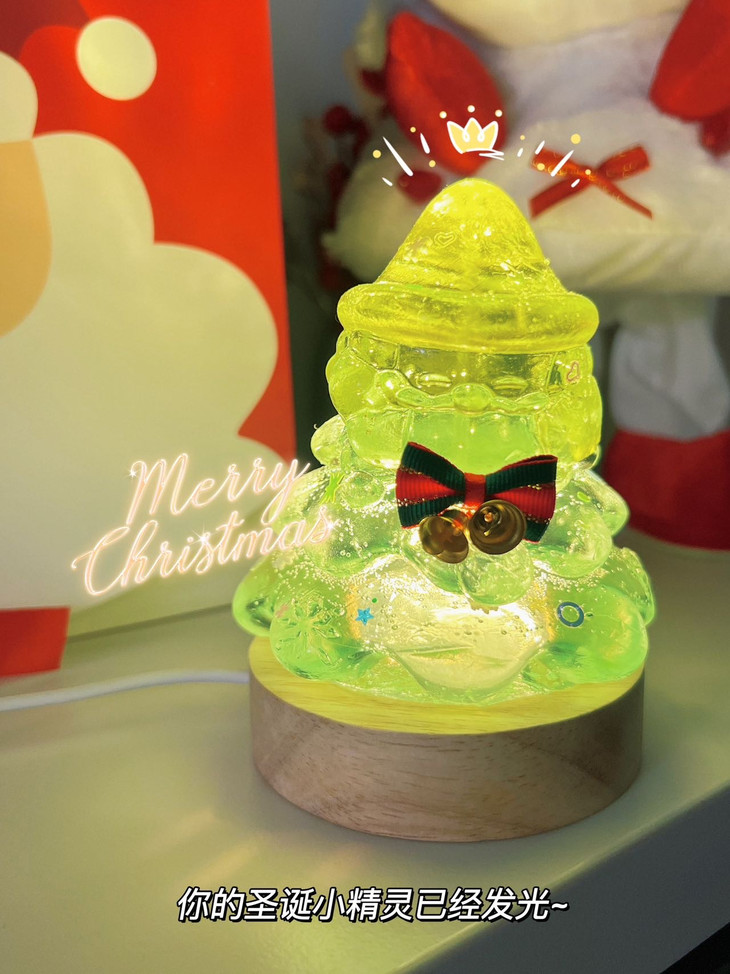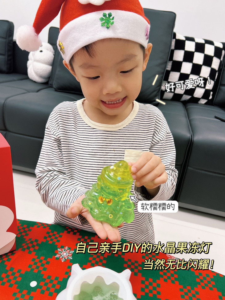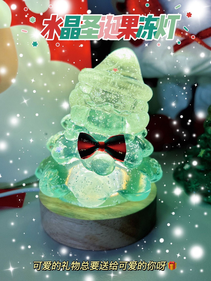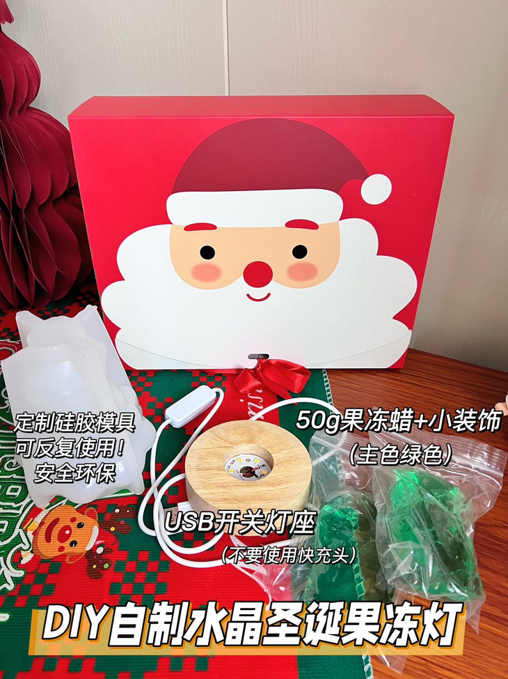 圣诞礼物就TA了!【水晶圣诞果冻灯】超治愈的软fufu的果冻蜡!自己制作一个水晶灯简直美爆了!轻松解锁自己的小夜灯!赠送usb底座!硅胶模具可重复使用方便清洁!