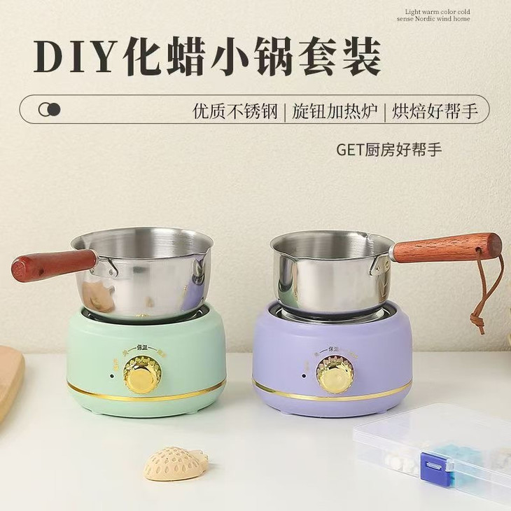 有条件的可以另外自行购买化蜡小锅! ⚠️也可使用家里的电磁炉在大人陪同下安全融化果冻蜡(注意请勿加水!) ⚠️14岁以上儿童请在大人陪同下玩耍!