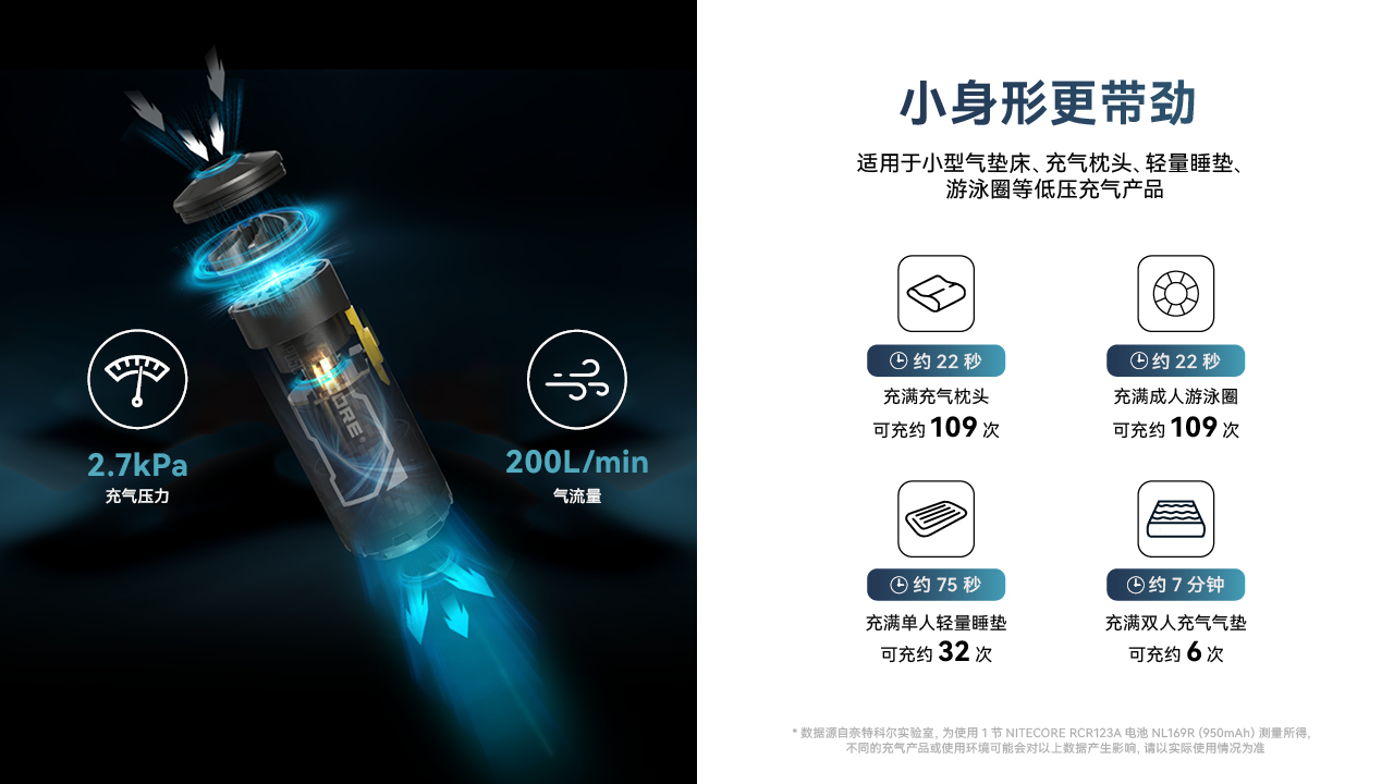 NITECORE奈特科尔AP05C便携式移动口袋气泵吹气宝露营户外