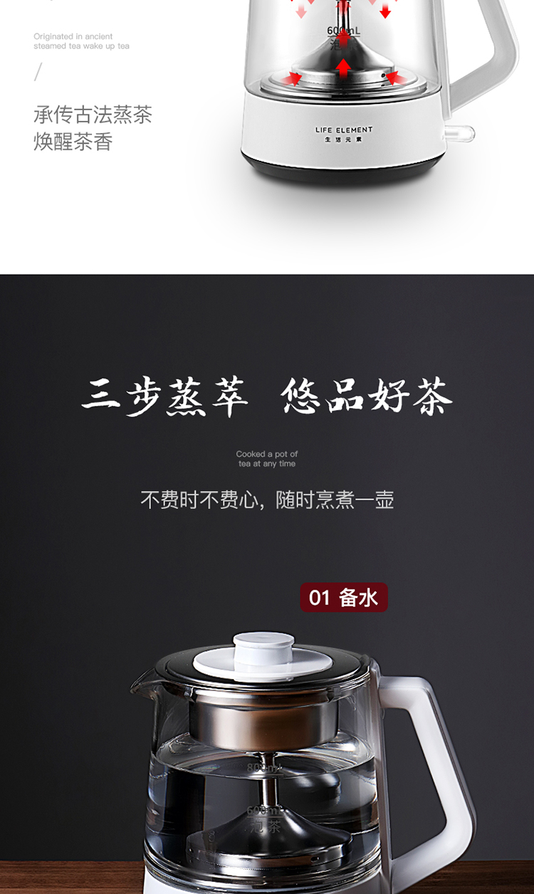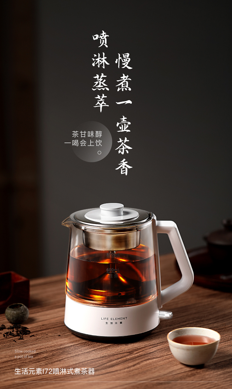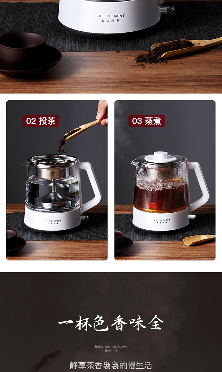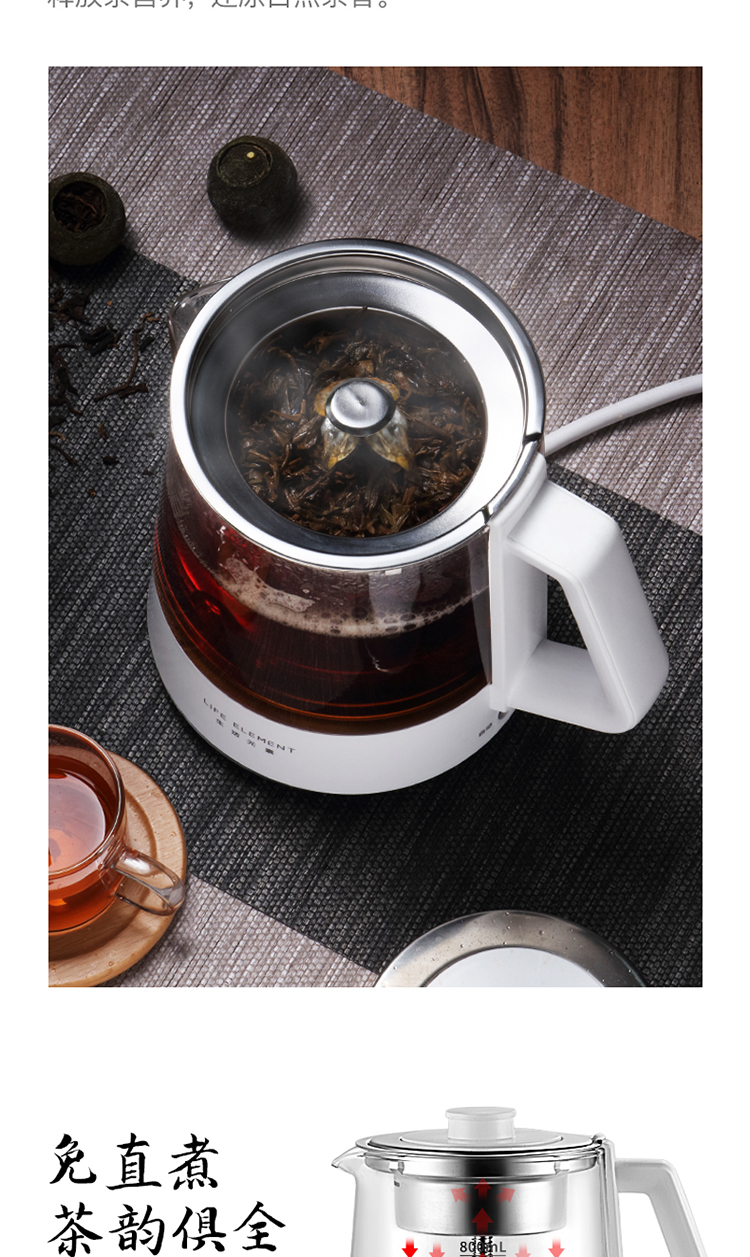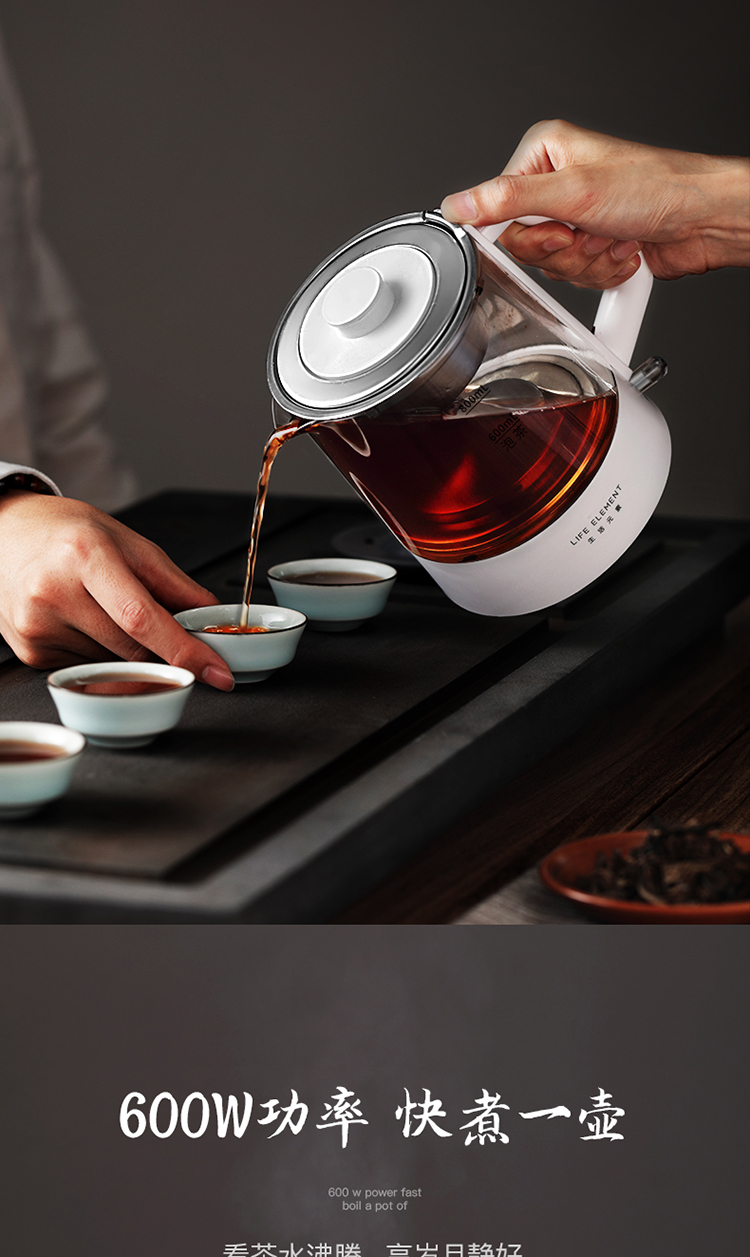 生活元素(LIFE ELEMENT)养生壶 迷你煮茶器 蒸汽喷淋式煮茶壶 电茶壶玻璃烧水壶 电热水壶 养生杯0.8L I72