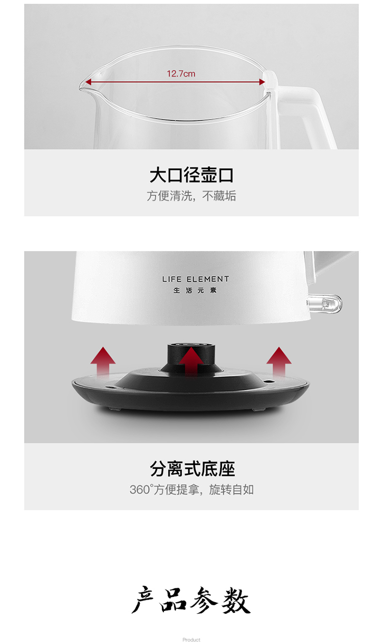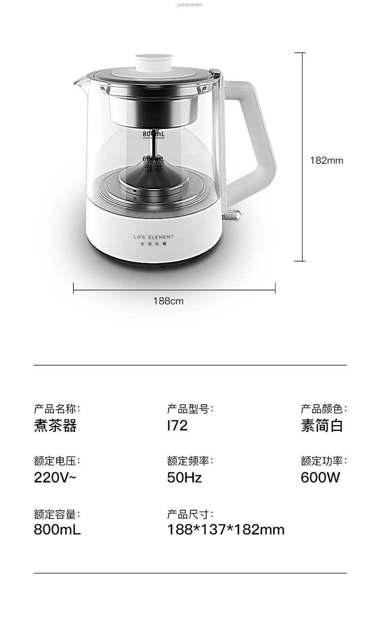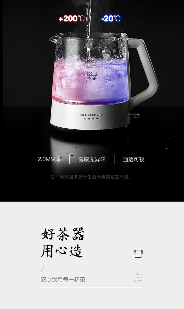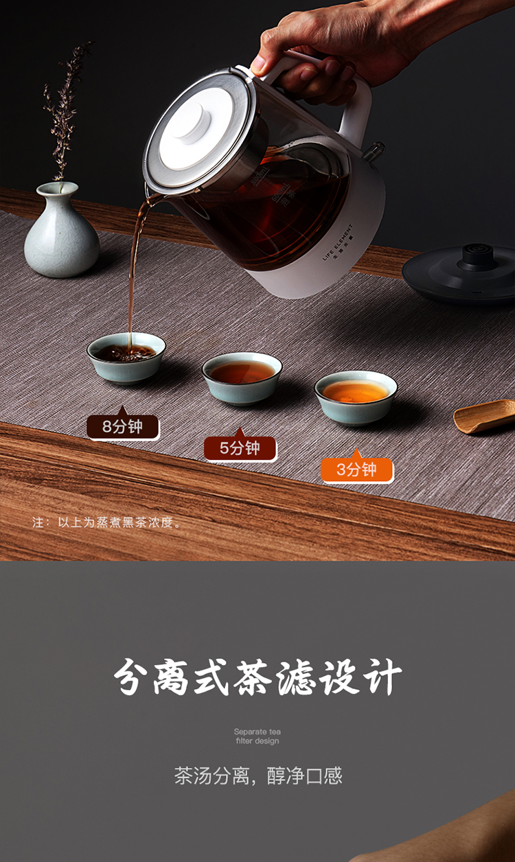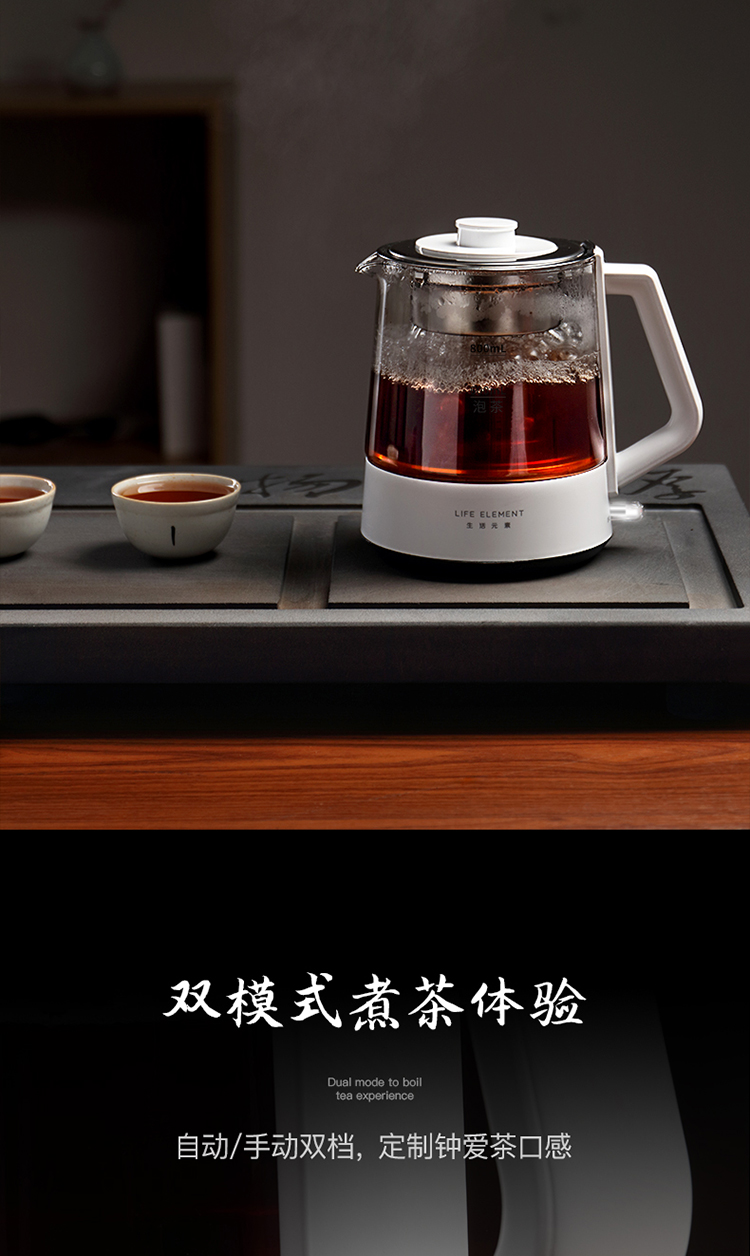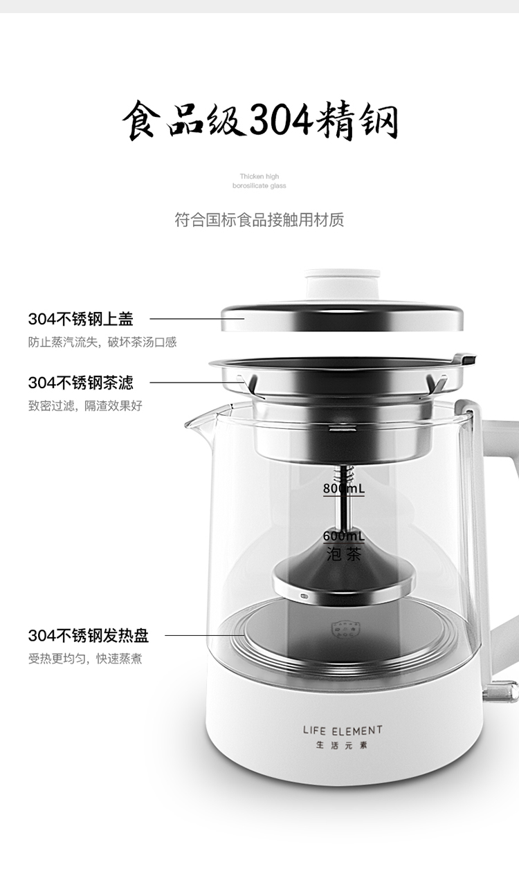 生活元素(LIFE ELEMENT)养生壶 迷你煮茶器 蒸汽喷淋式煮茶壶 电茶壶玻璃烧水壶 电热水壶 养生杯0.8L I72