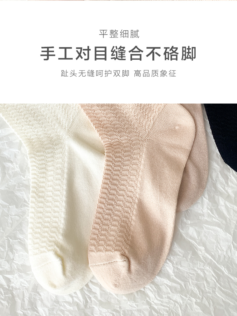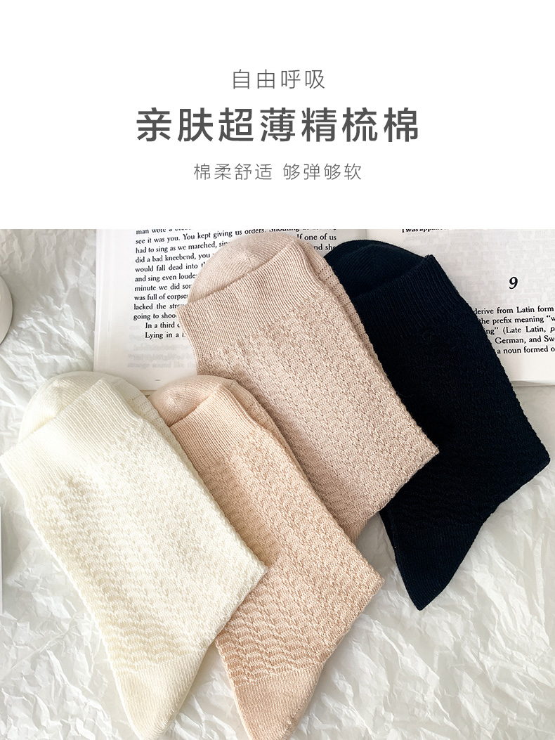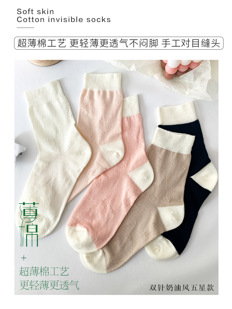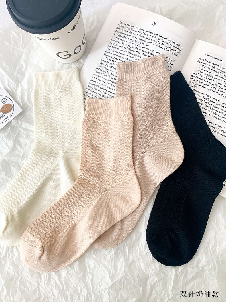 足装秀24新品夏季薄棉女袜奶油风双针工艺舒适透气轻薄女中邦袜子