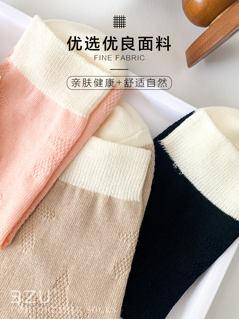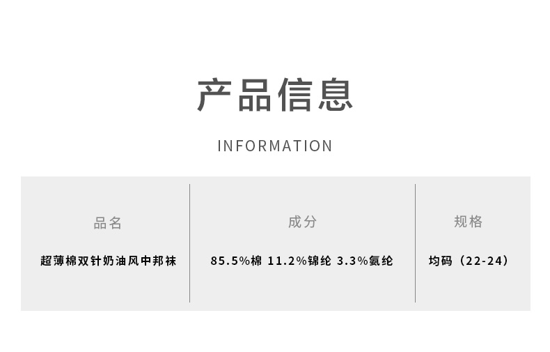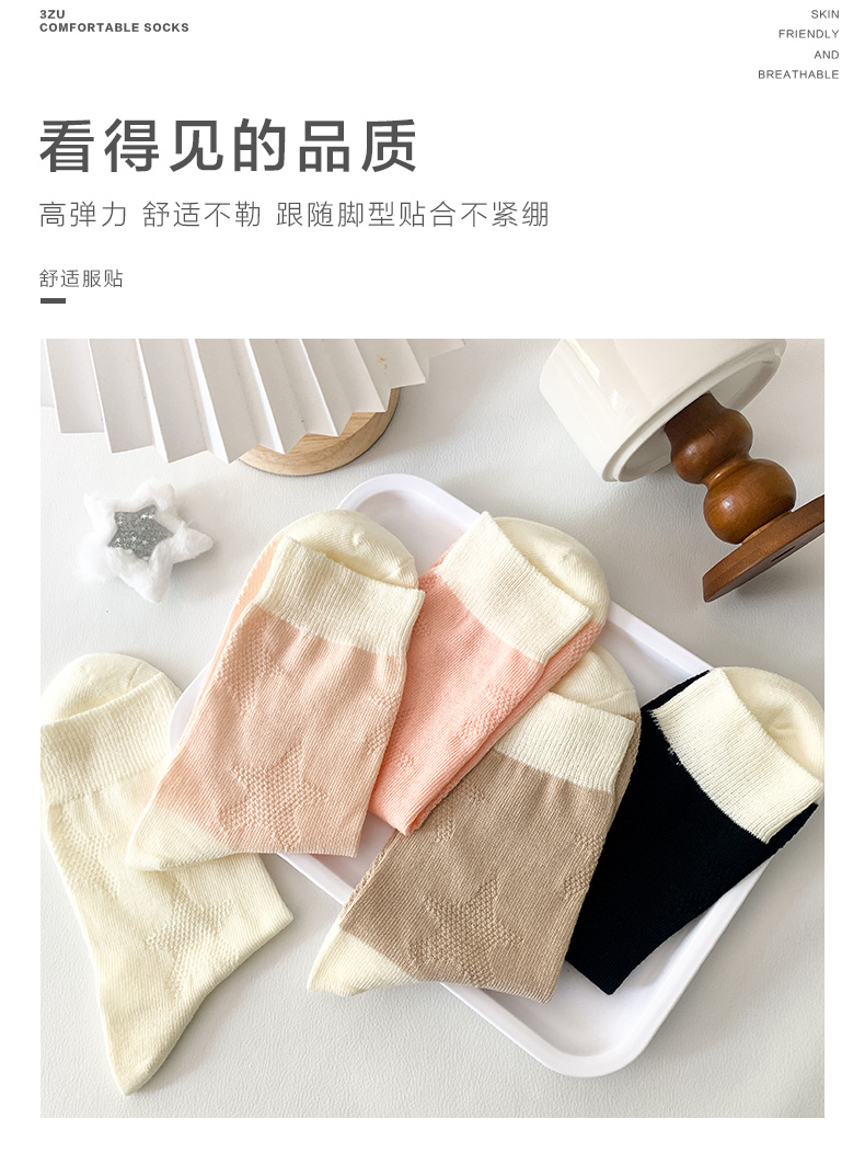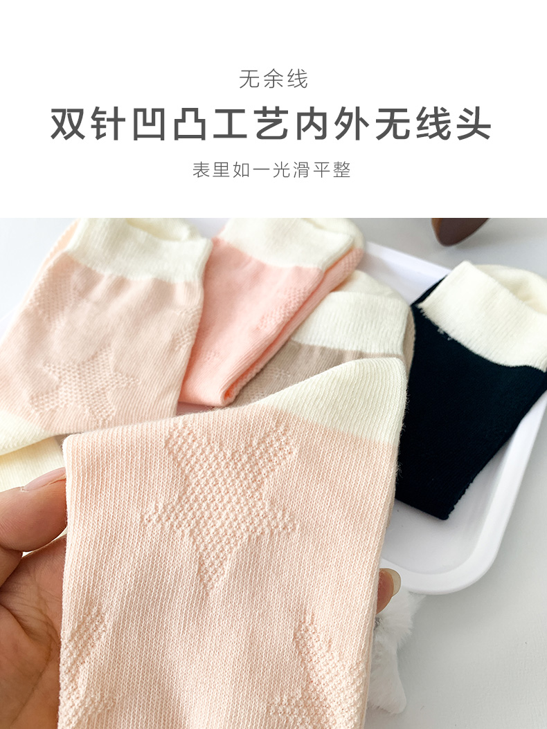 足装秀24新品夏季薄棉女袜奶油风双针工艺舒适透气轻薄女中邦袜子