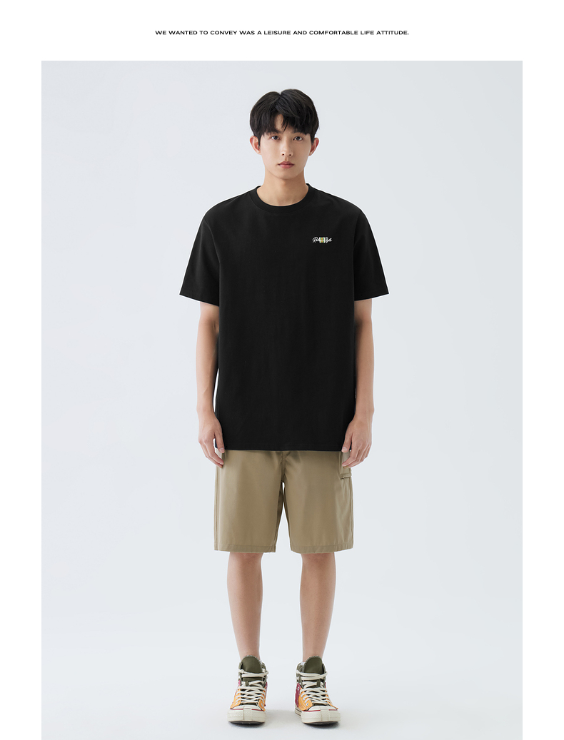 GXG男装 265g重磅字母绣花简约时尚圆领短袖T恤男士 夏季新品