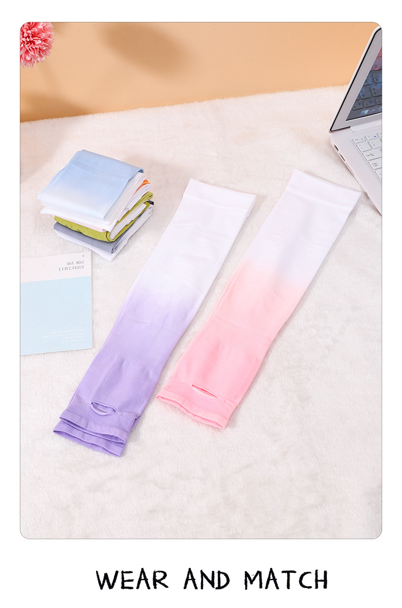 左左女渐变色冰袖305夏季新款渐变色防晒冰袖女防紫外线袖套户外运动透气冰丝手套护臂