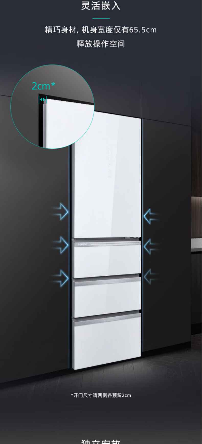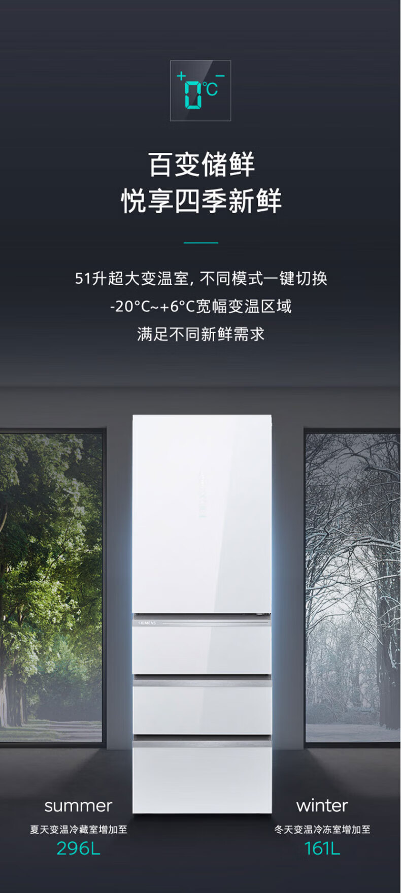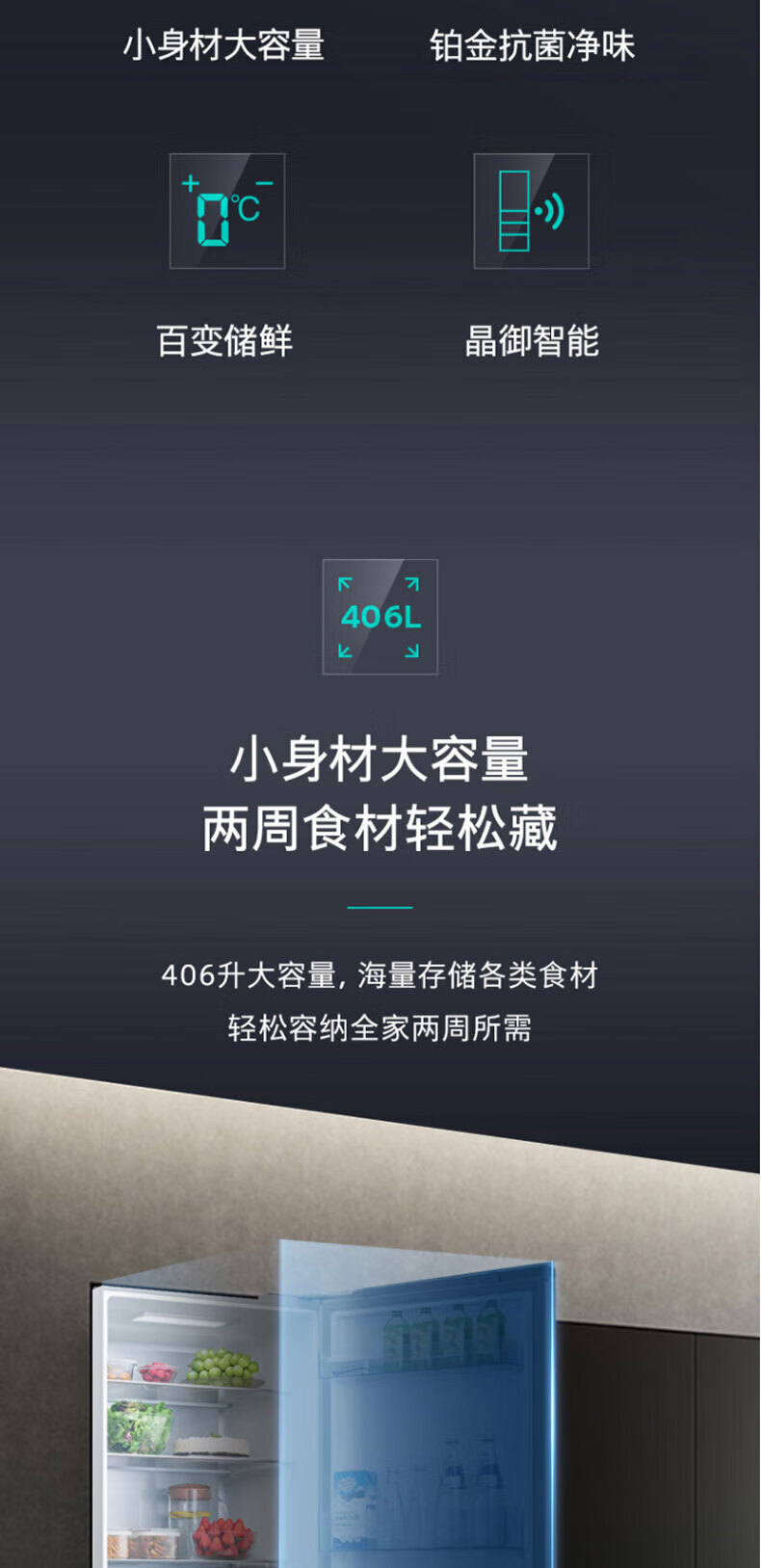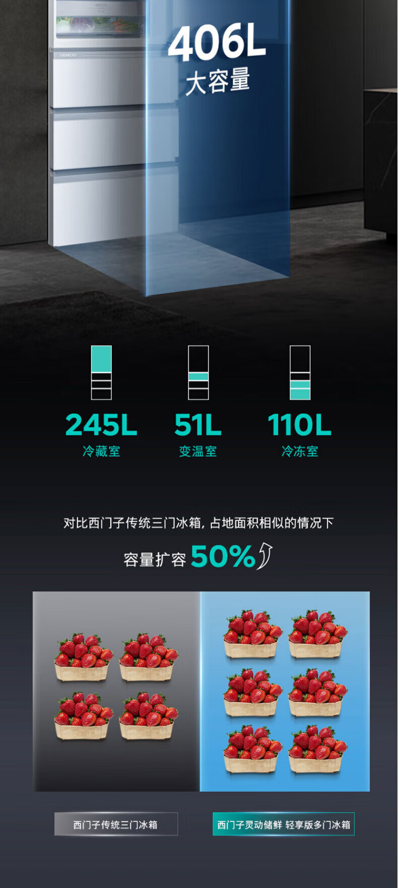 西门子(SIEMENS)406L大容量多门四门冰箱 铂金净味百变储鲜一级能效风冷无霜纤薄可嵌入电冰箱玻璃面板KG402053VC