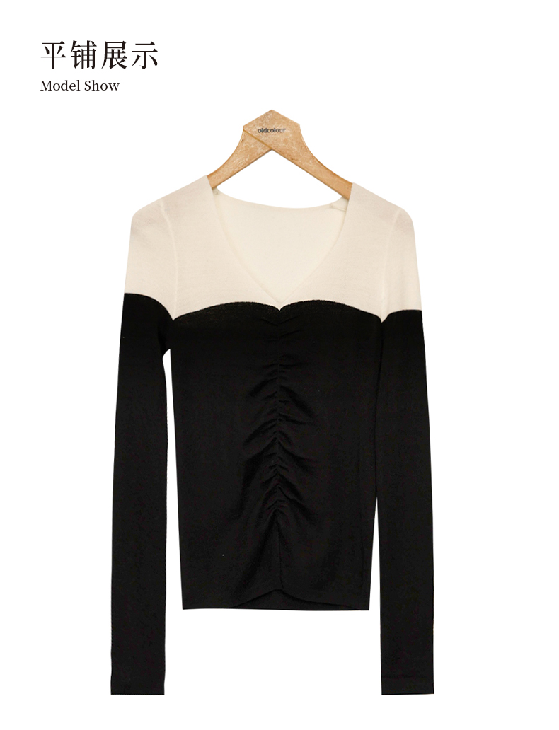 oldcolour修身针织衫春季新款V领复古高级内搭打底衫女P11052183