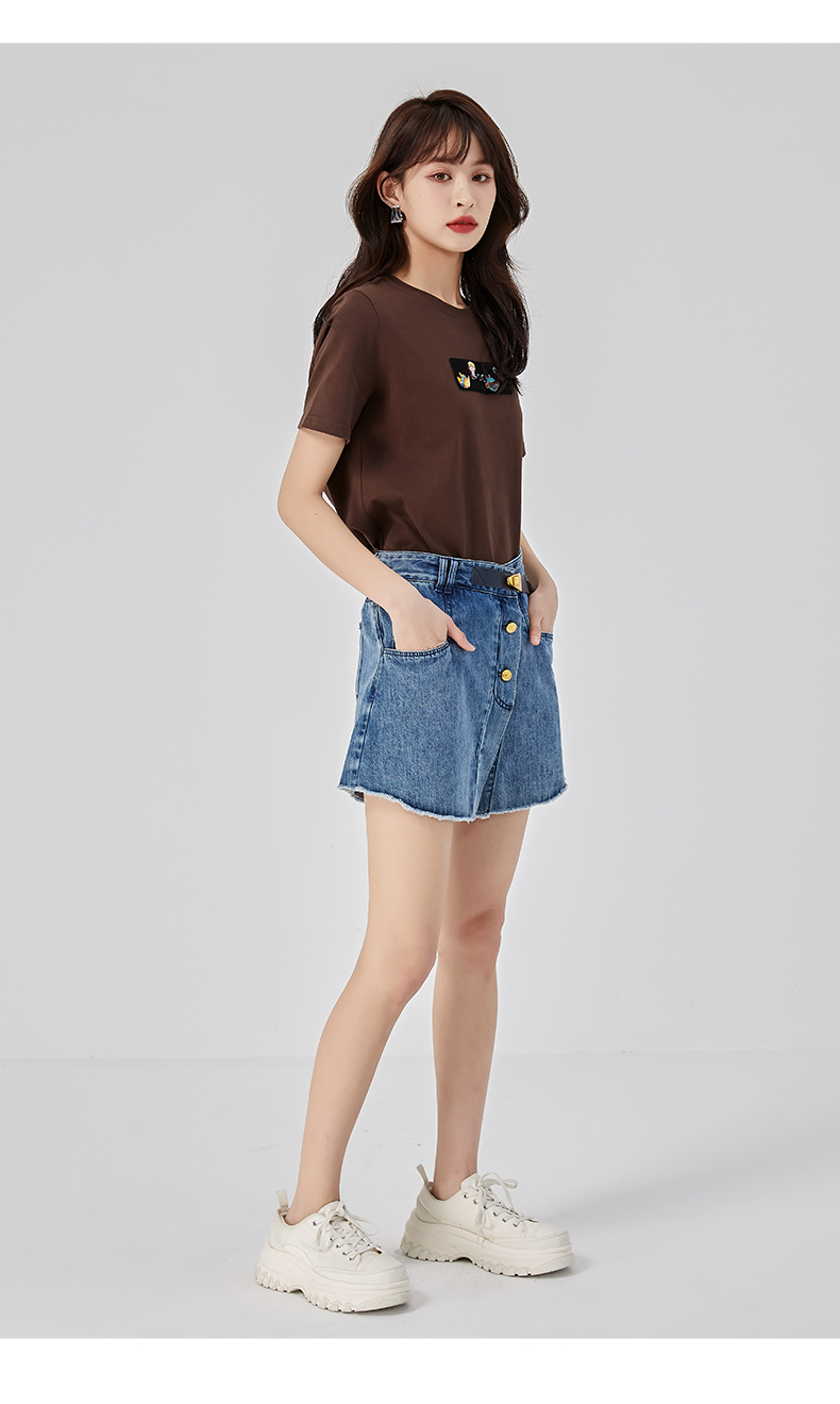 oldcolour2023夏新款小个子高腰A字显瘦短款半身牛仔裙O21111135