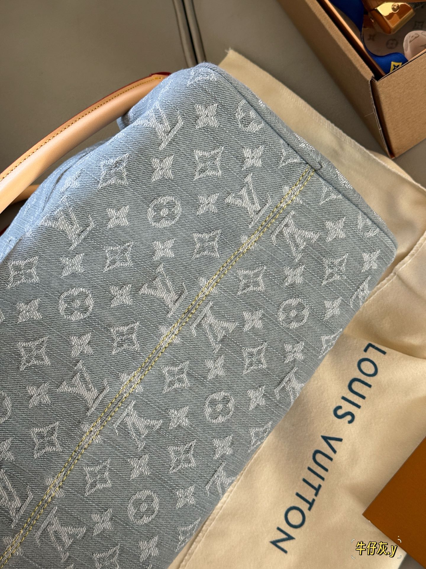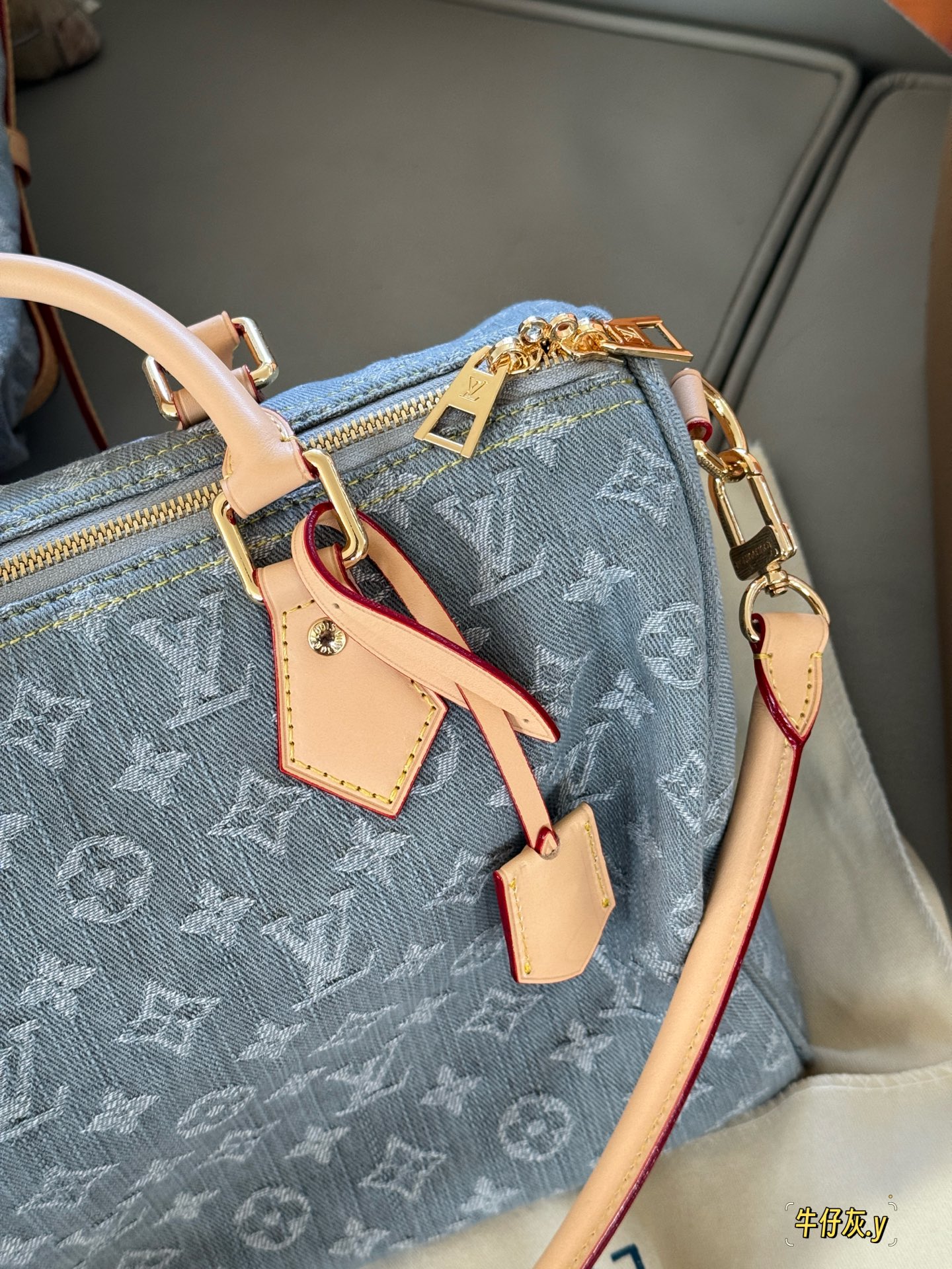 顶级免税版 VIP专柜体验 收到即官网同样 Lv Speedy Soft30 灰牛仔丹宁枕头包 不挑人 高级又慵懒还很轻盈 日常、旅行都适合!