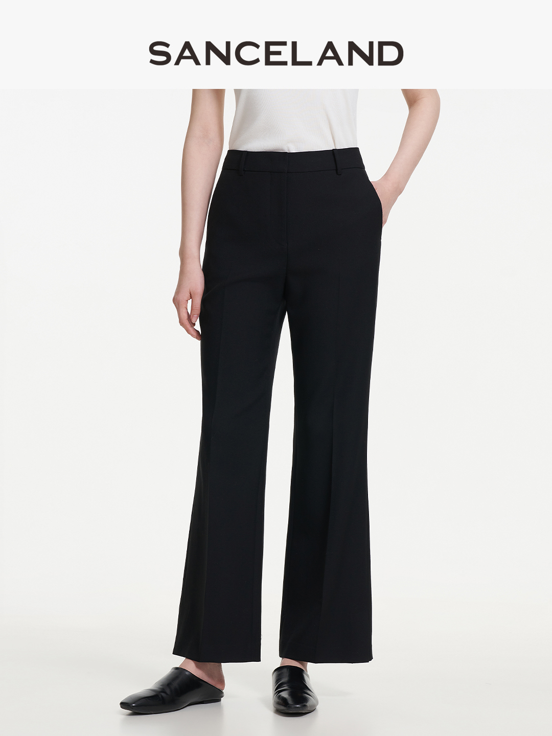 三石一澜SANCELAND女装春季精纺绵羊毛微喇裤SK12103032