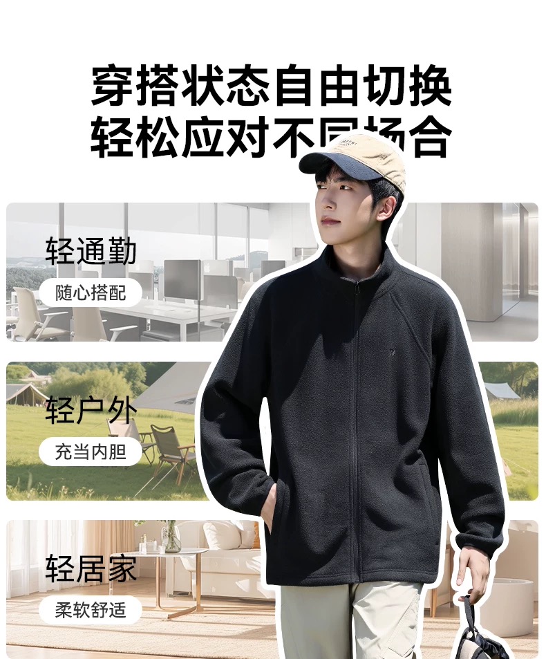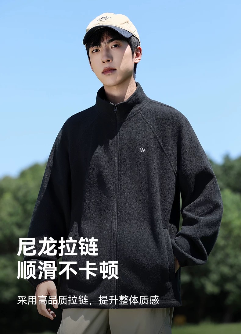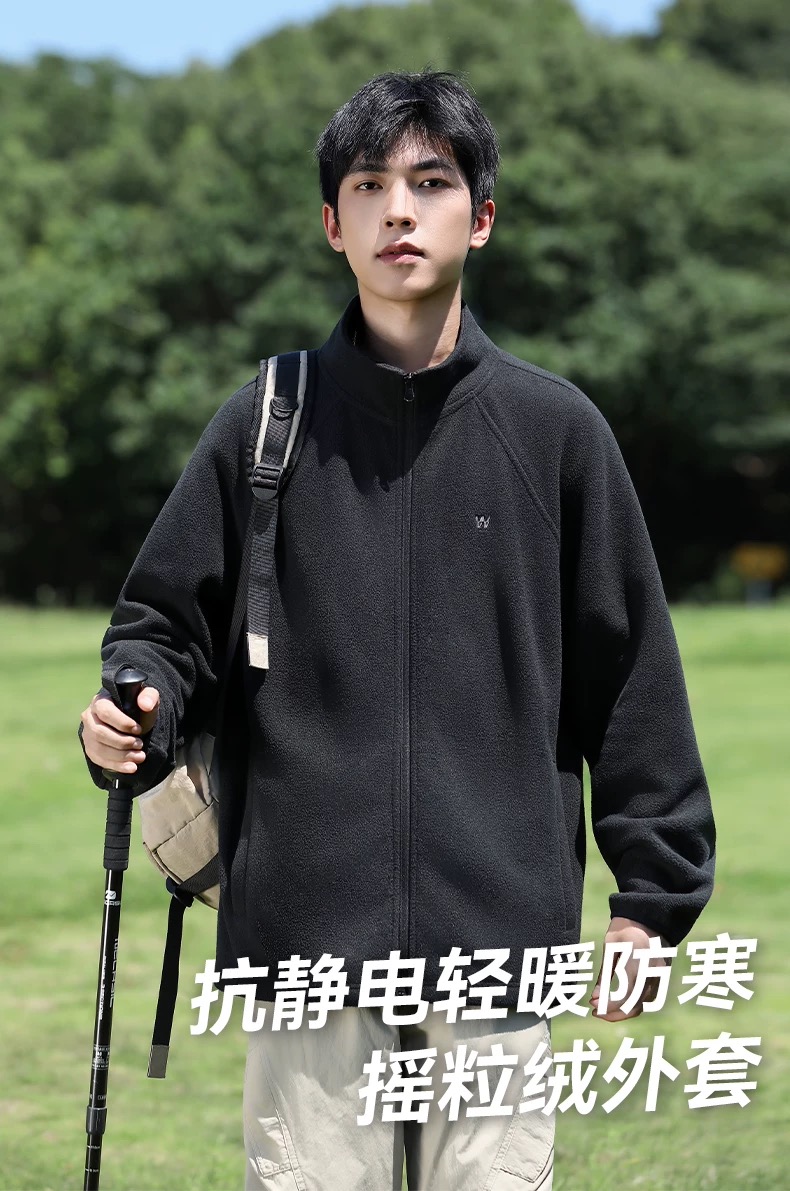 回力摇粒绒外套男款秋冬季2025新款立领抓绒冲锋衣内胆加绒夹克男