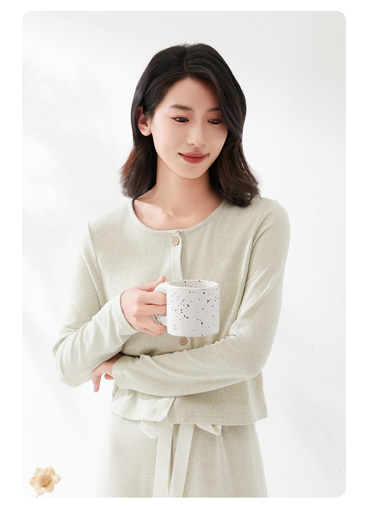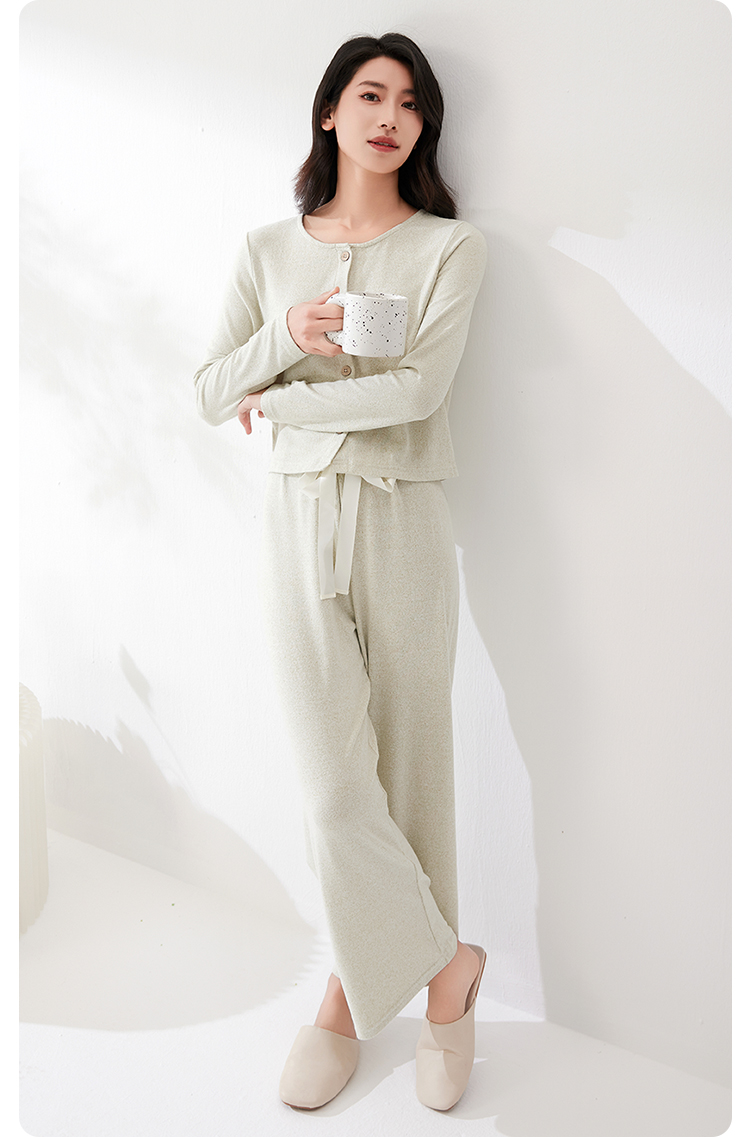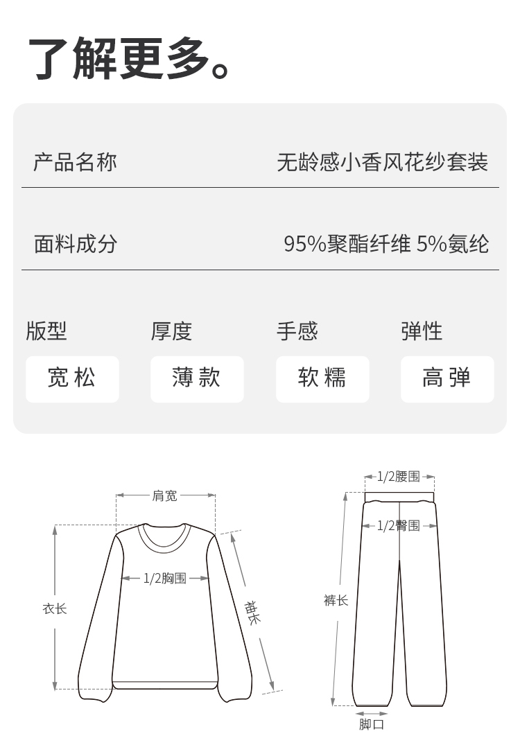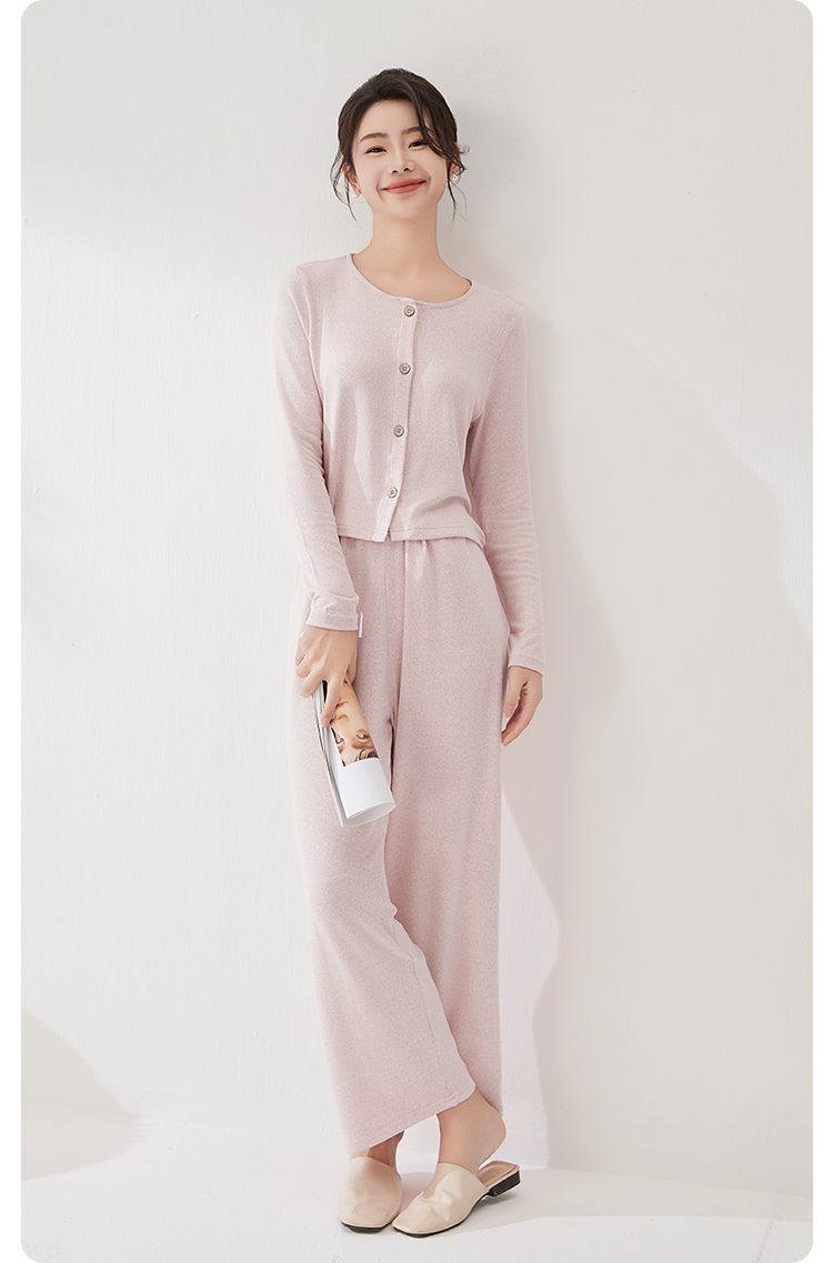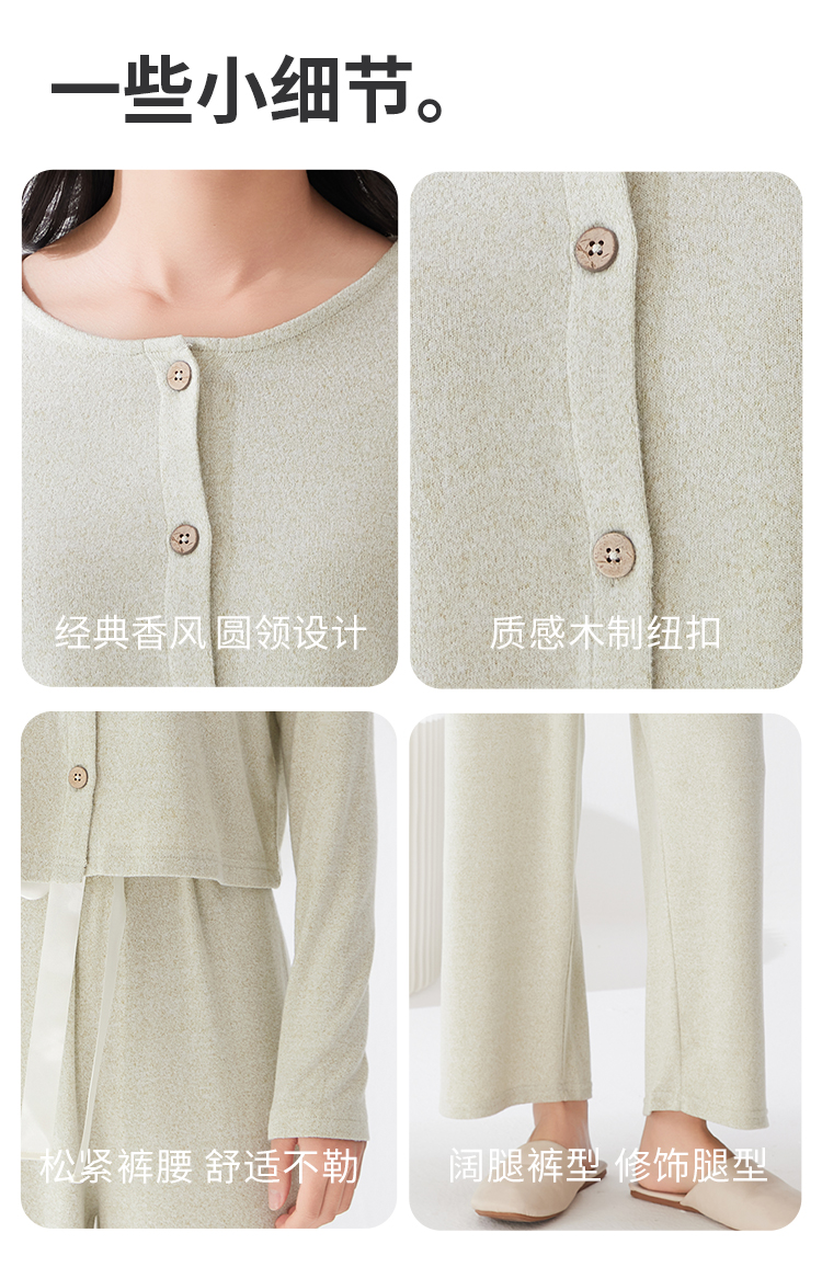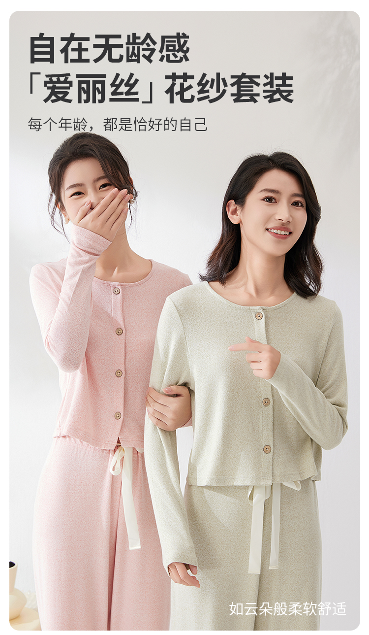 爱帝法式小香风云感柔软花纱针织长袖家居服套装