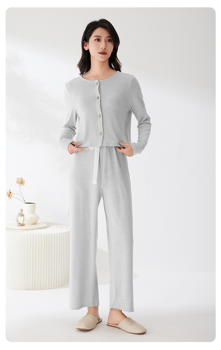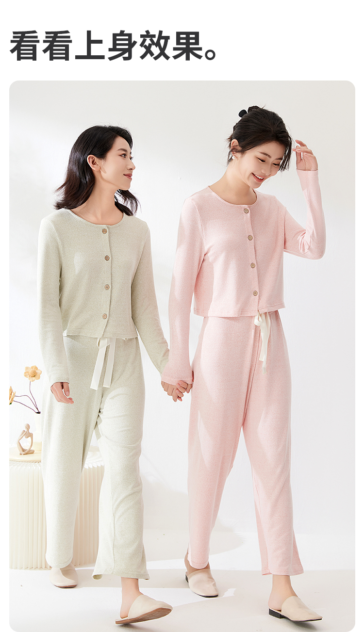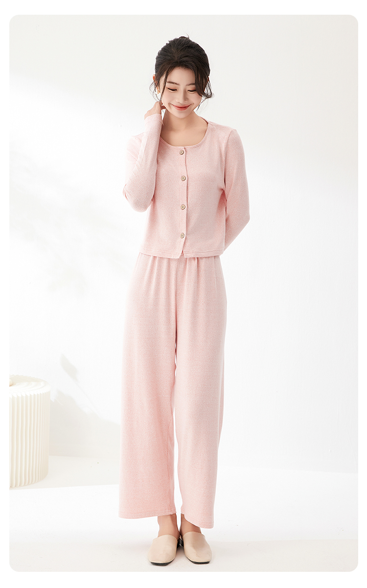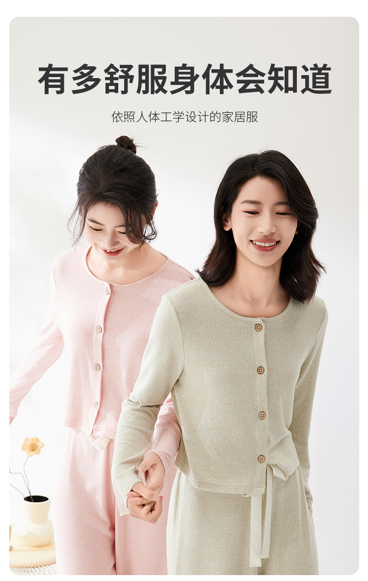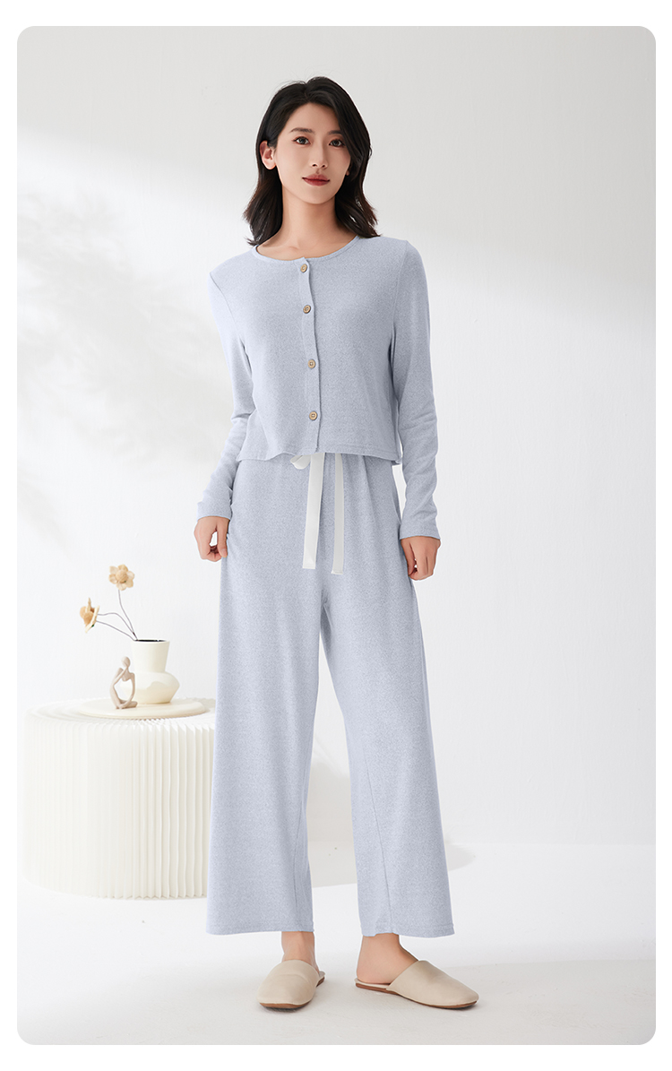 爱帝法式小香风云感柔软花纱针织长袖家居服套装